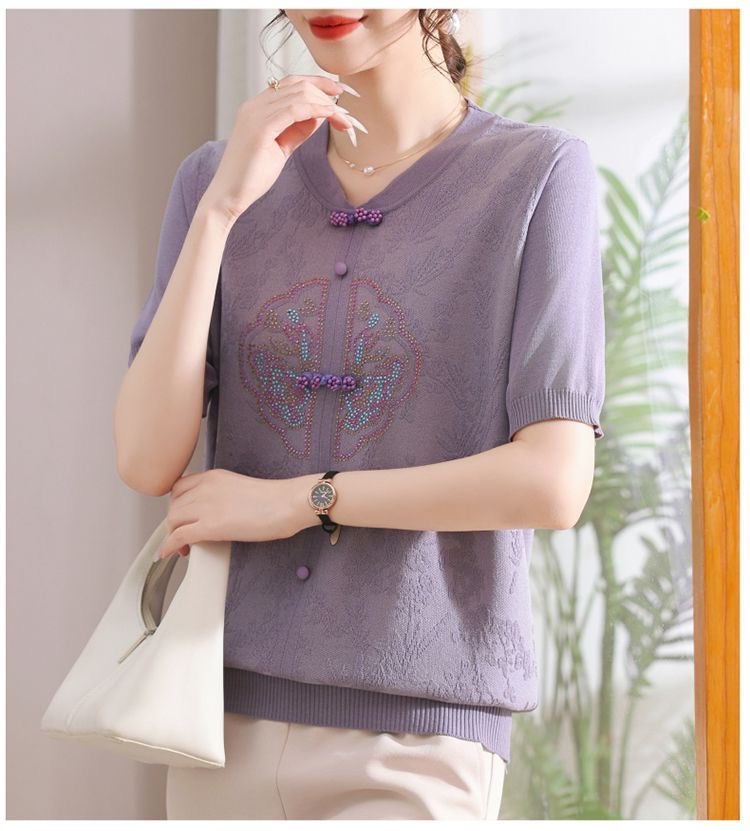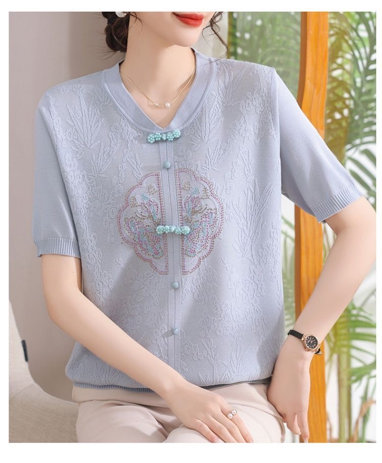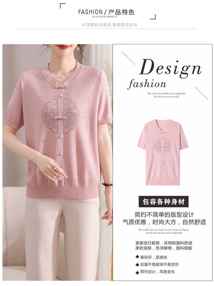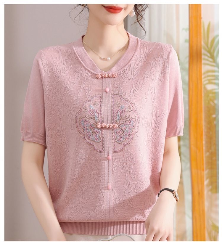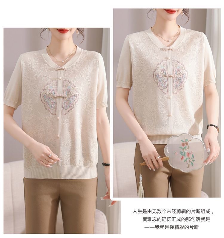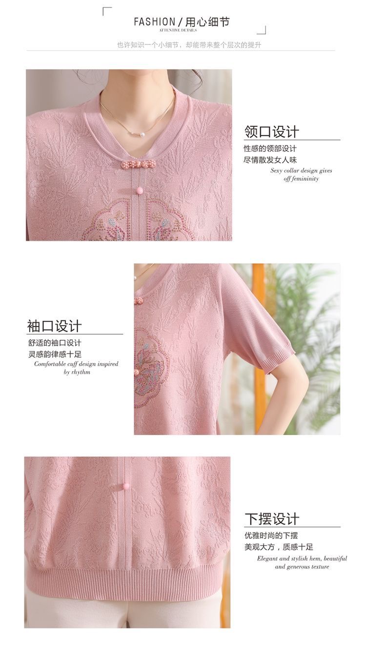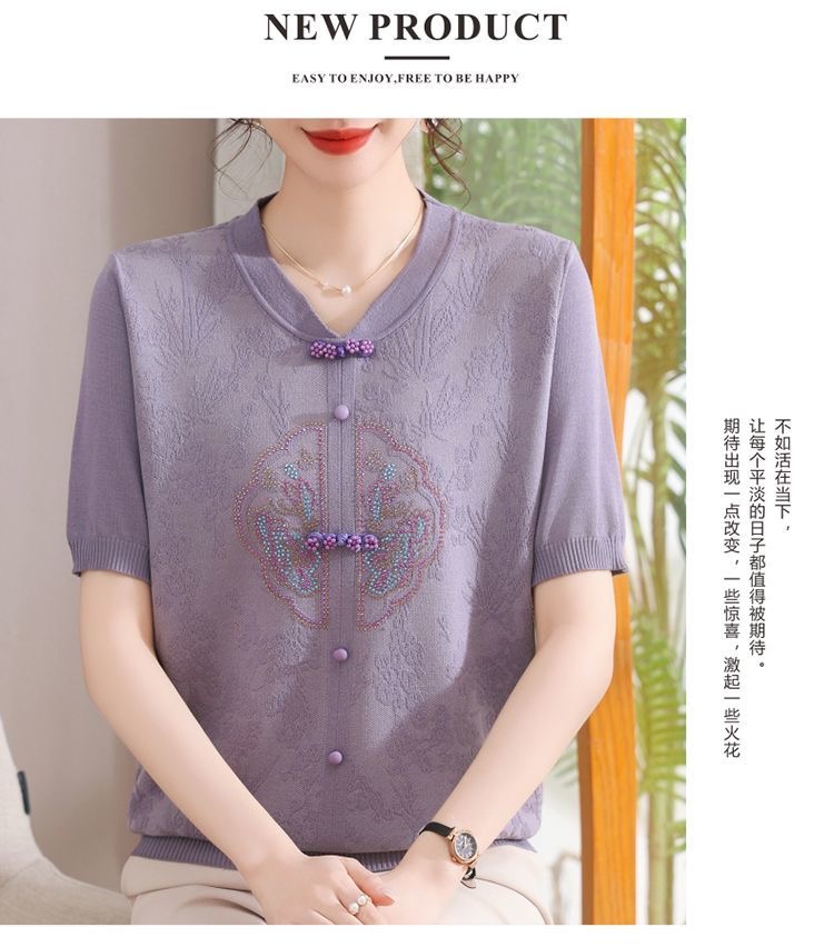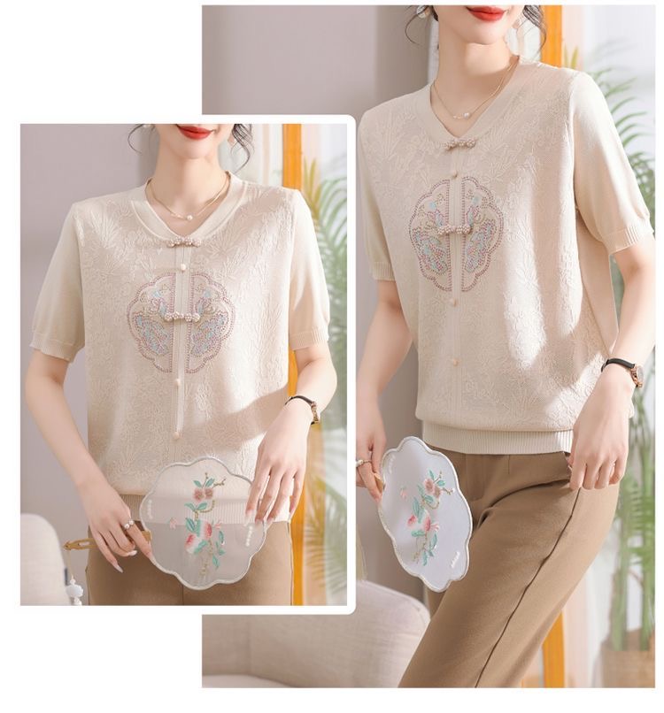 【YW】无忧购中老年妈妈新中式国风薄款针织冰丝透气短袖上衣2501(截单后7天发货)
