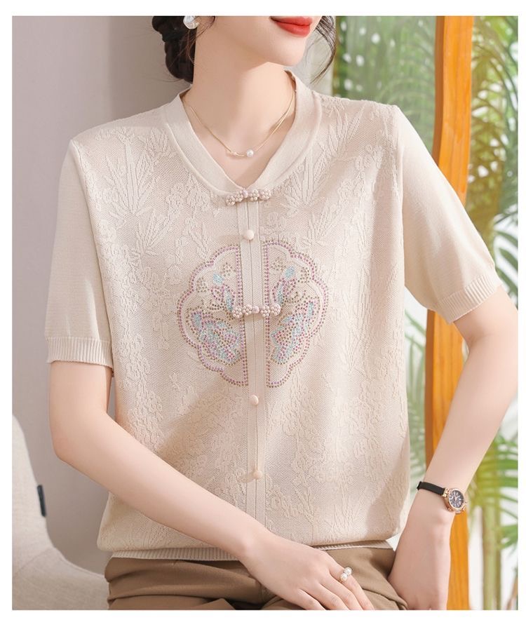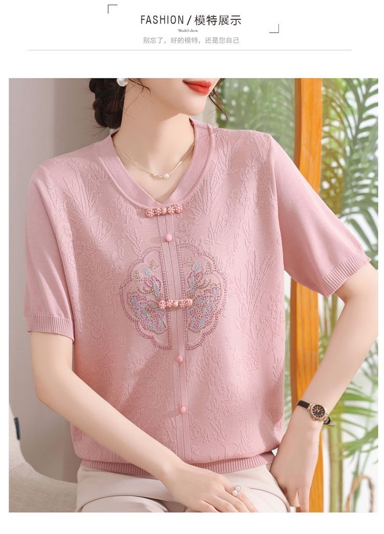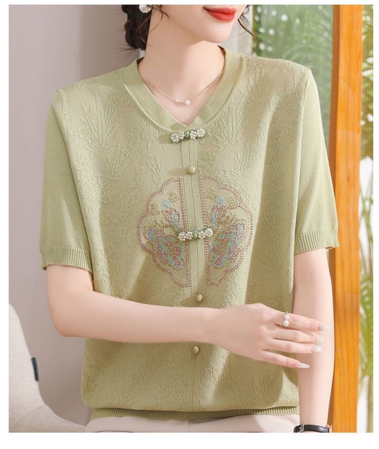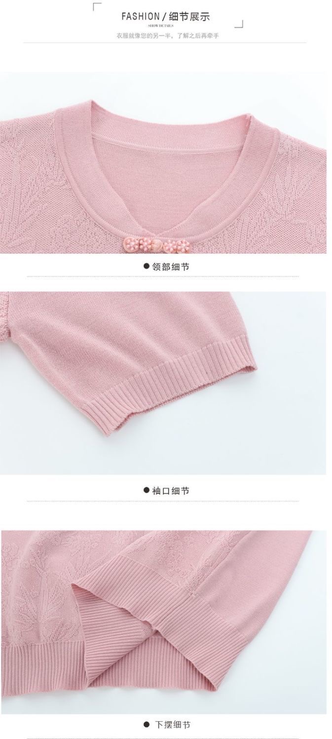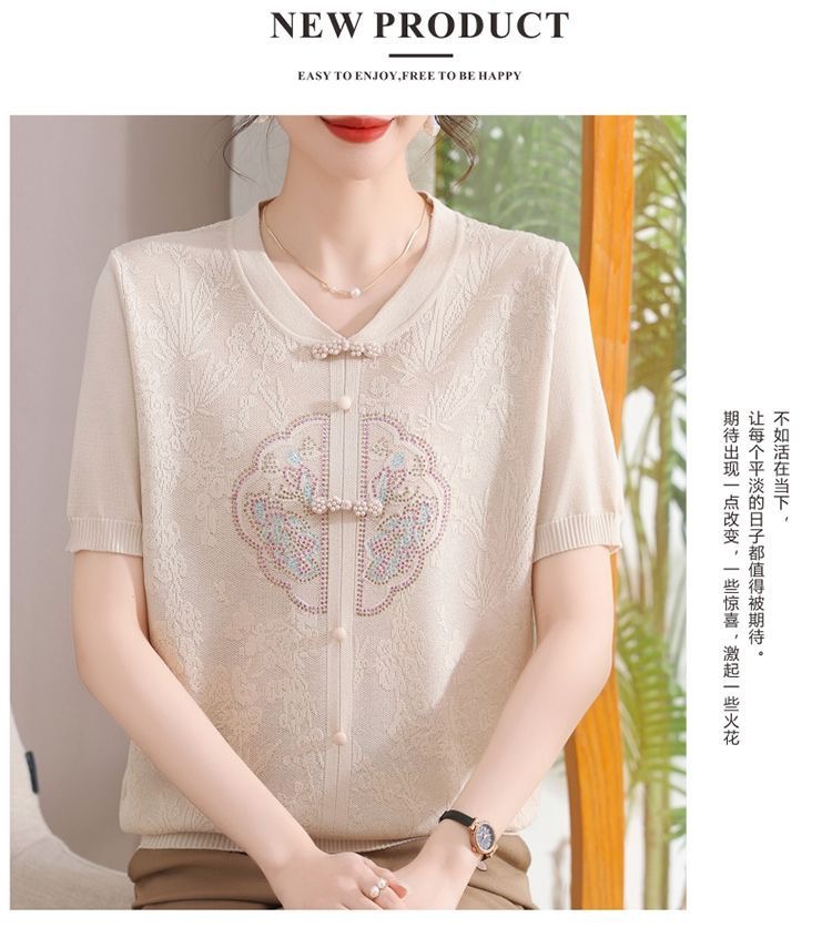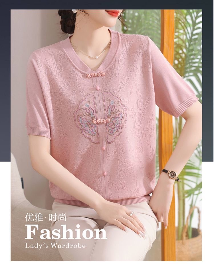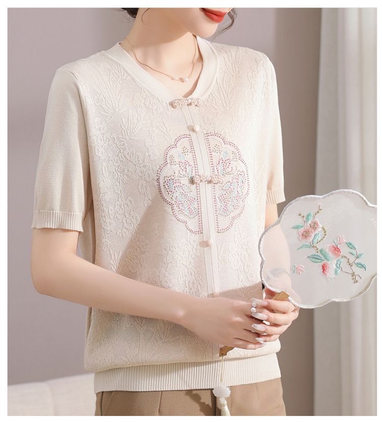 【YW】无忧购中老年妈妈新中式国风薄款针织冰丝透气短袖上衣2501(截单后7天发货)