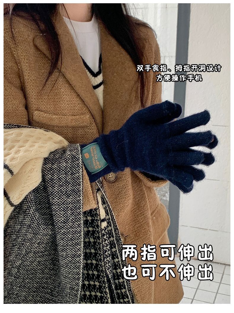 【YW】无忧购韩系ins学院风80%羊毛触屏露指针织毛线手套(截单后7天发货)