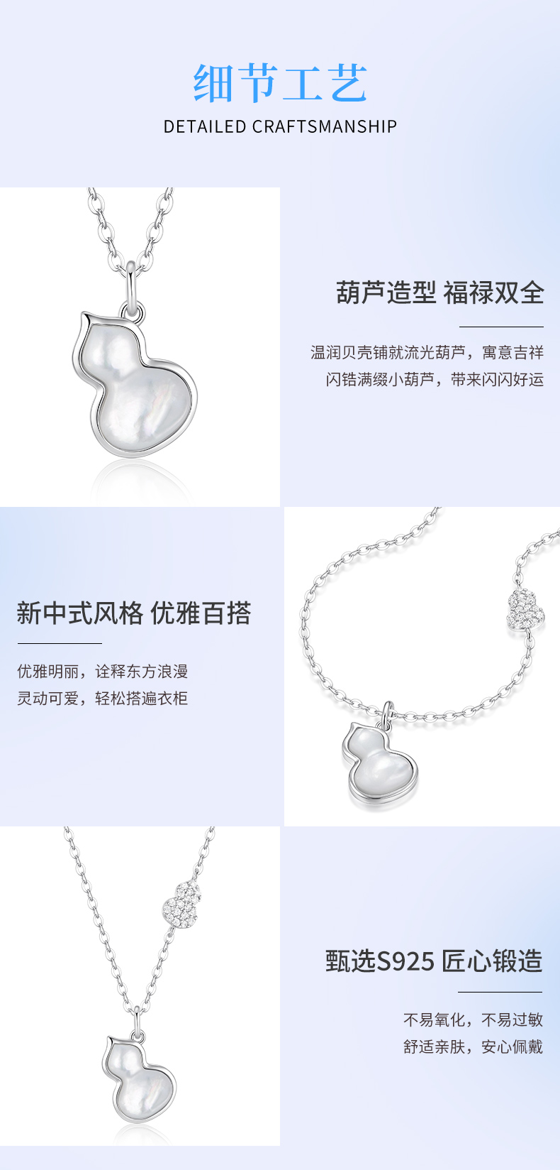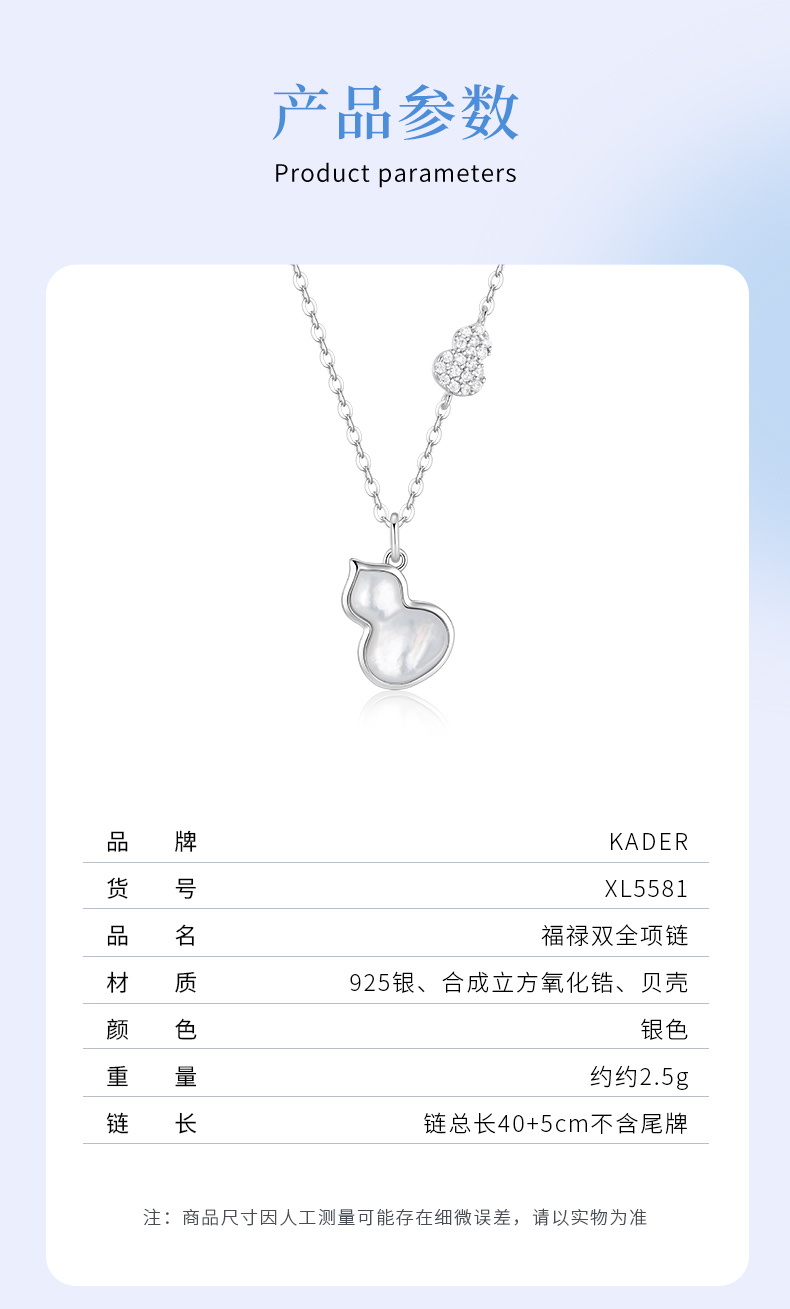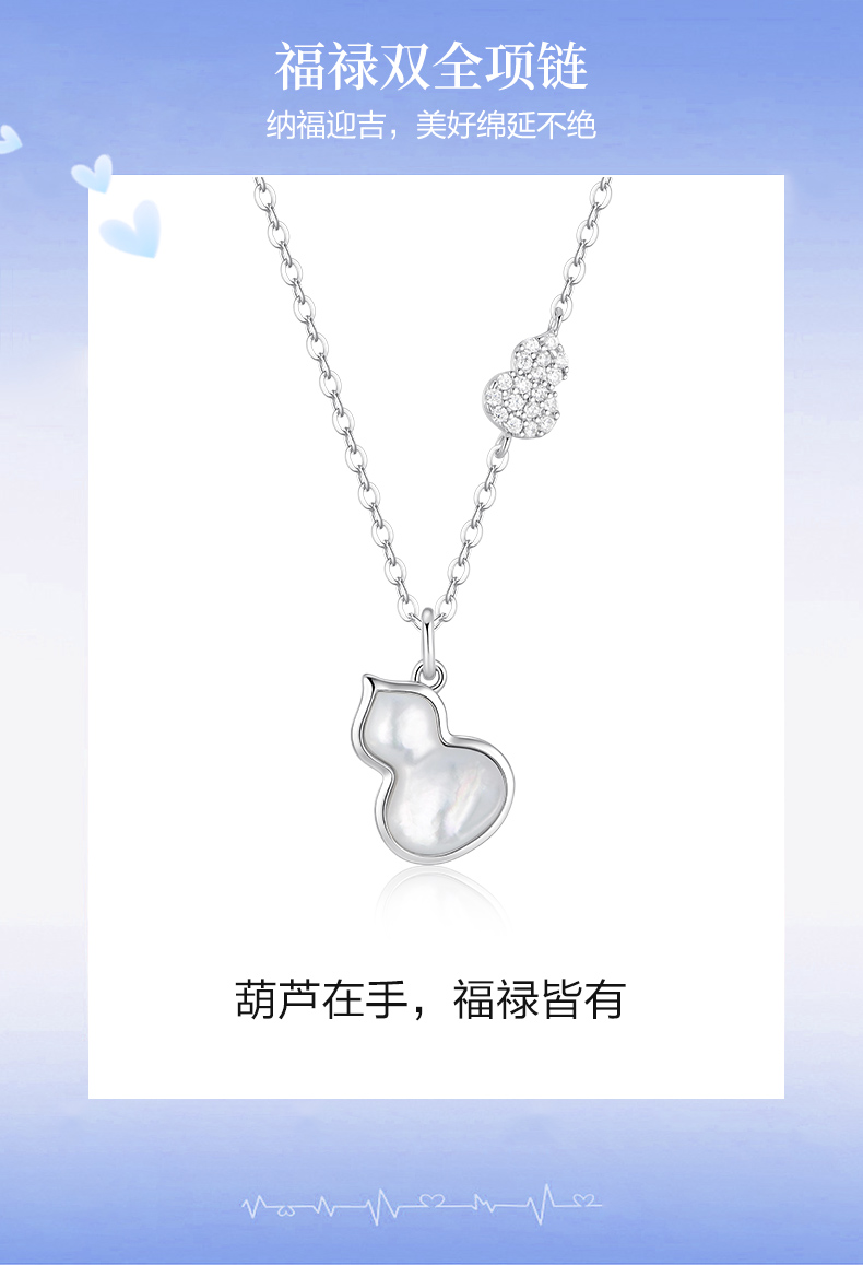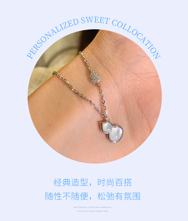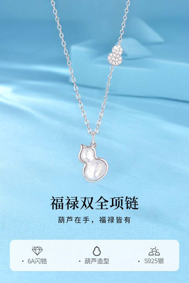 卡蒂罗KADER 福禄双全项链 新中式925银闪锆满缀葫芦白月光轻奢大气高级感锁骨链 日常小众百搭
