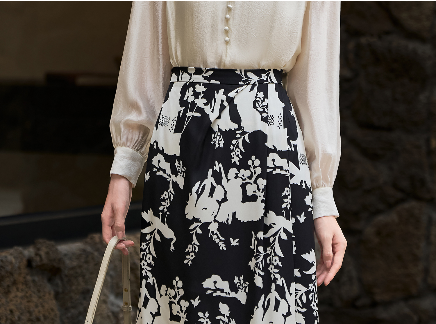 剩S/M/L/XL 米思阳2026春季新款设计感黑白撞色印花半身裙减龄百搭裙子女3800