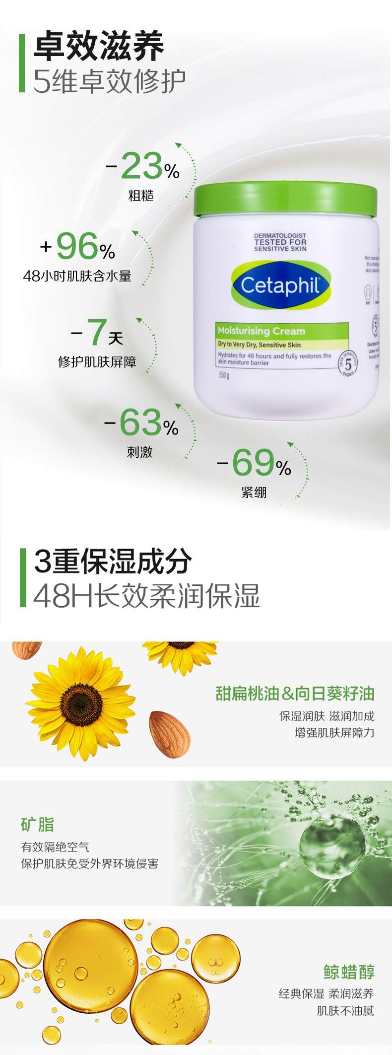 Cetaphil/丝塔芙大白罐保湿霜550g补水保湿滋润乳液