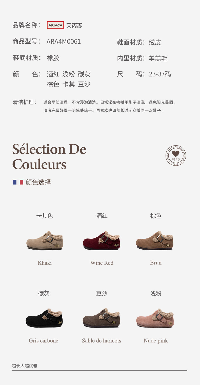 ARIACA艾芮苏女童加绒勃肯鞋冬季保暖二棉毛毛鞋软底儿童女孩棉鞋