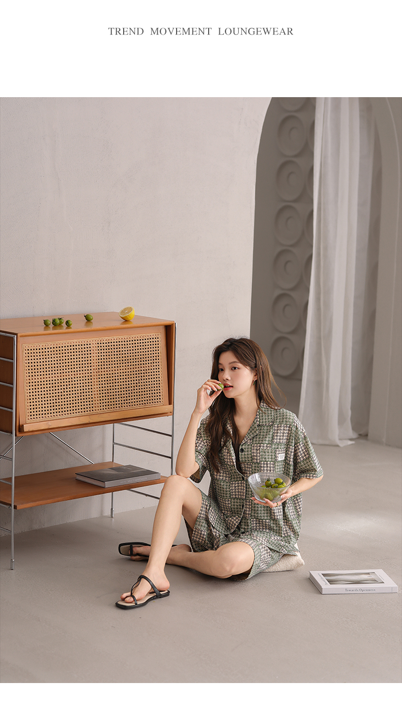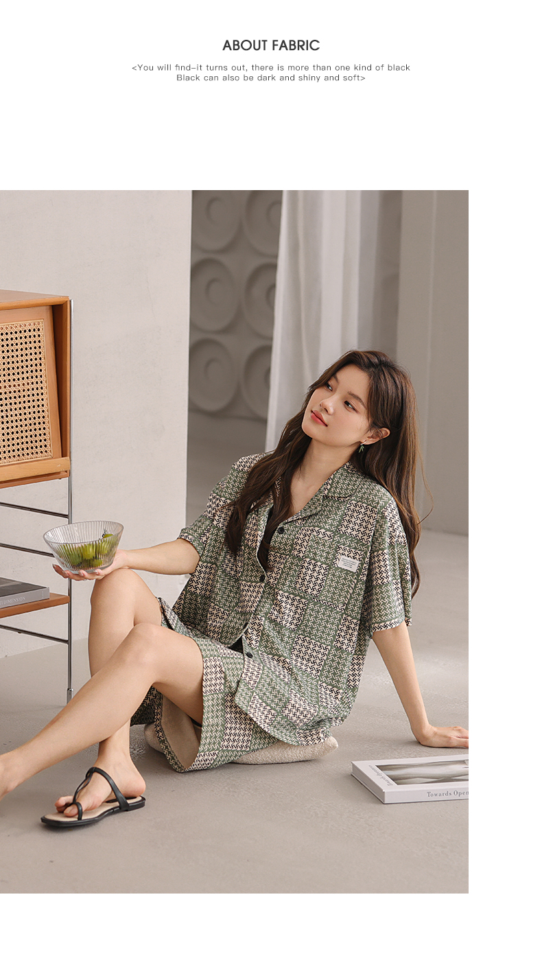 可人儿小众设计师新款奥力绵女士睡衣夏季短袖可外出家居服套装