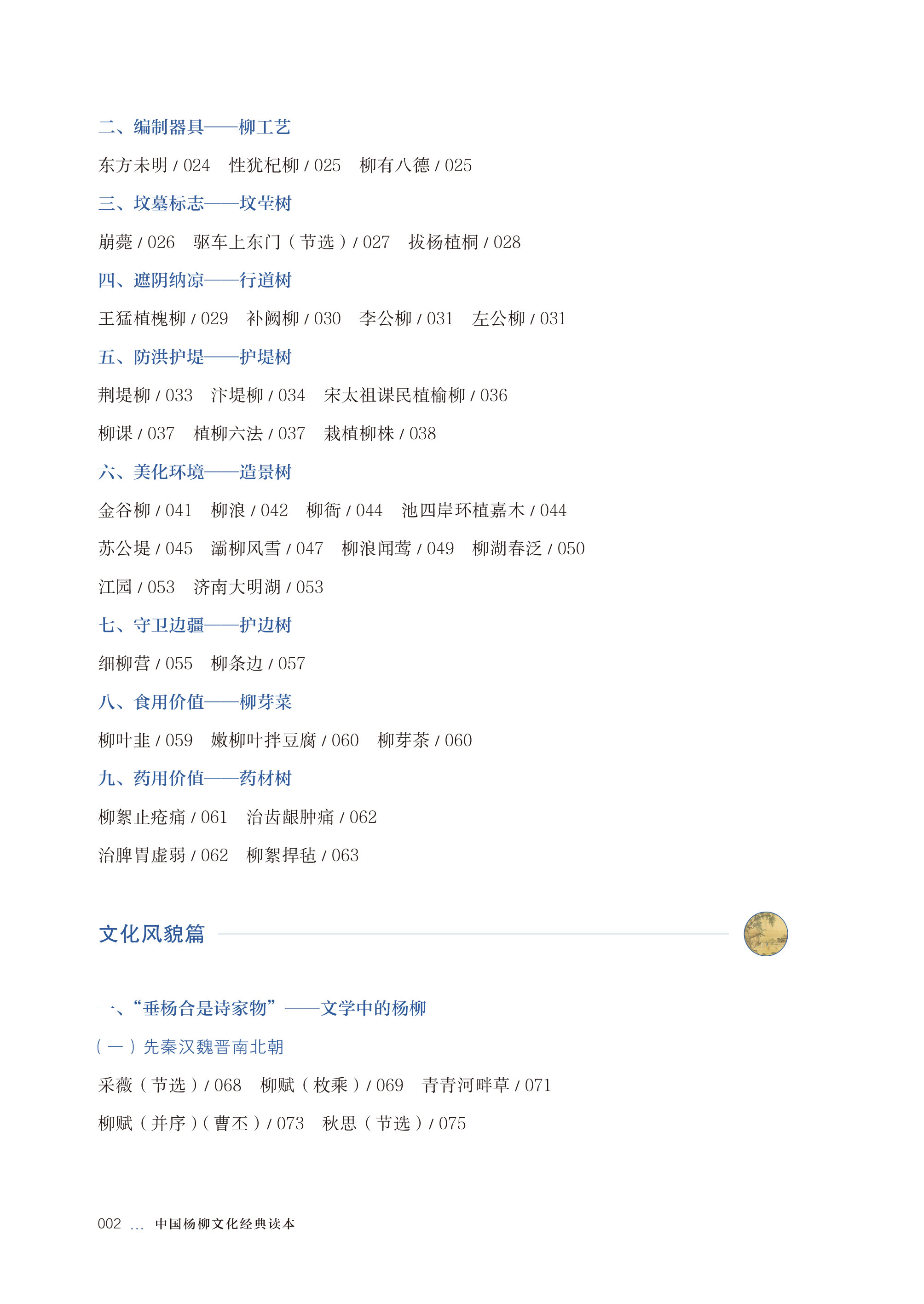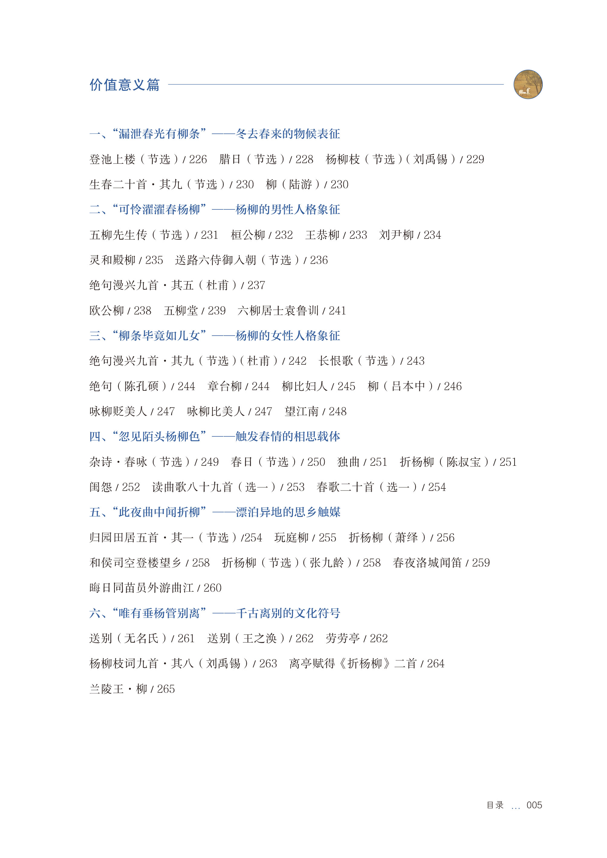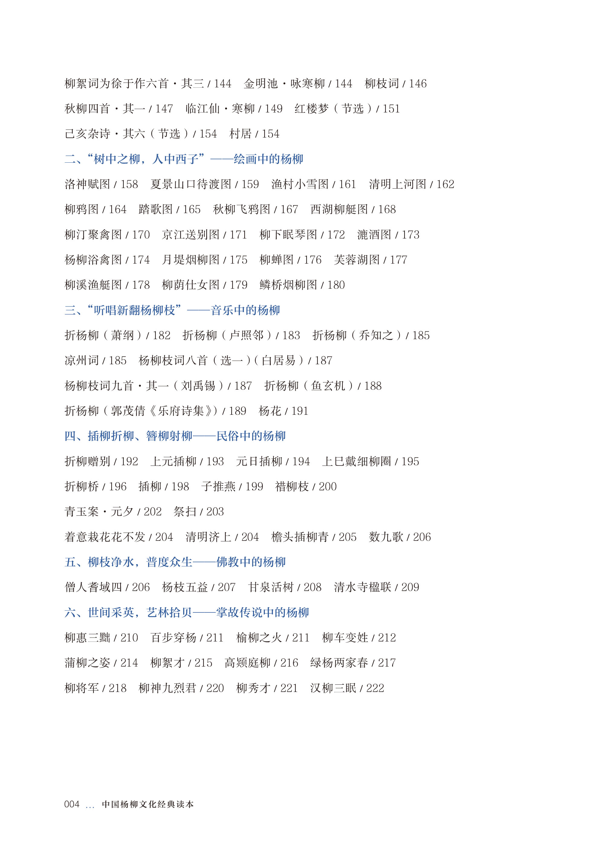 本书精选历代杨柳诗词文赋及相关史料笔记等经典篇目,主要围绕植物特性、社会应用、文化风貌、价值意义四篇展开图文并茂的生动阐说,内容广及杨柳与中国社会文化诸方面,如文学、绘画、园林、园艺、节庆、民俗、工艺装饰、价值地位等,系统、全面地展示出杨柳在中华民族物质文化和精神生活中发挥的重要作用,引领读者真切地感受杨柳文化的深厚内涵与独特魅力。