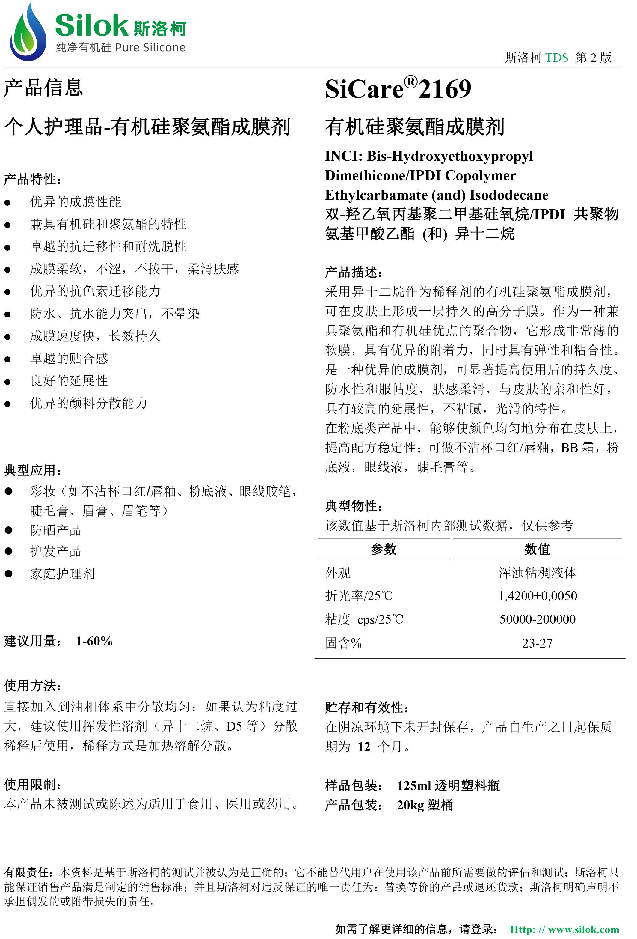 SiCare®2169F5 有机硅聚氨酯成膜剂