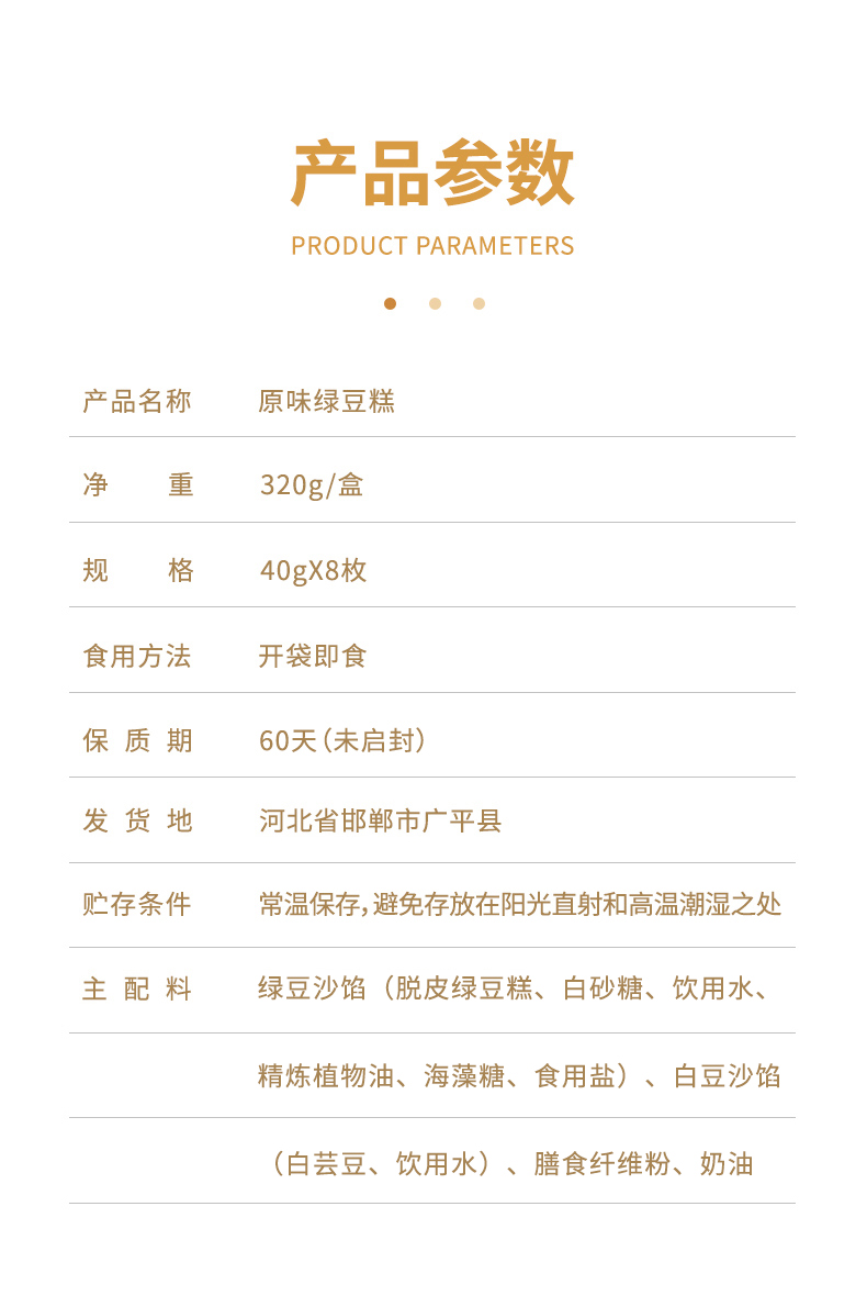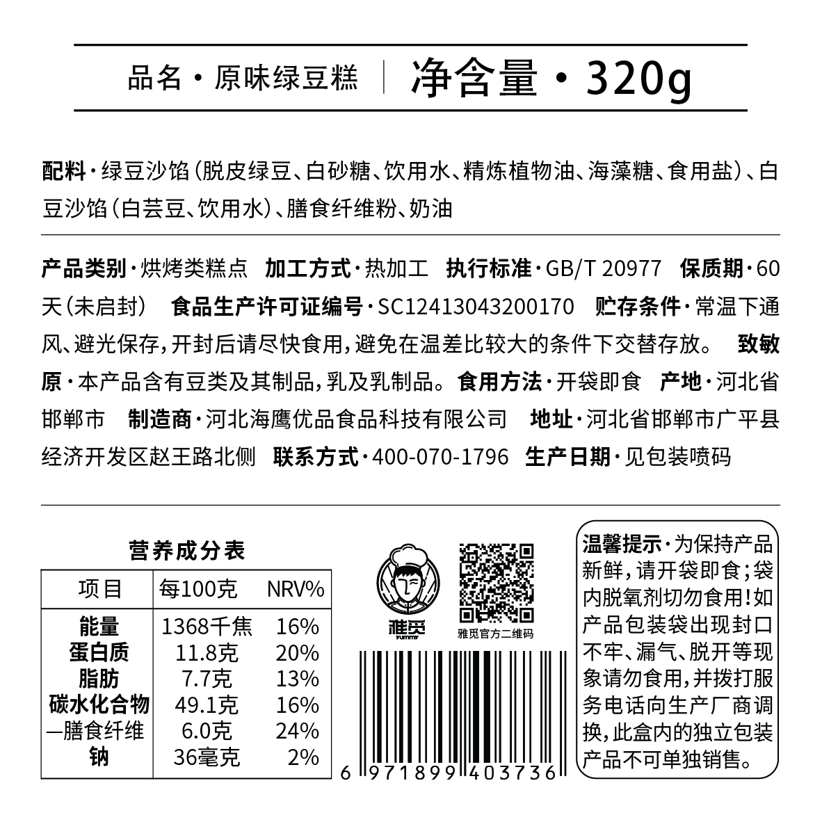 雅觅 原味绿豆糕320g 8枚 传统糕点小吃 办公下午茶休闲食品特产零食