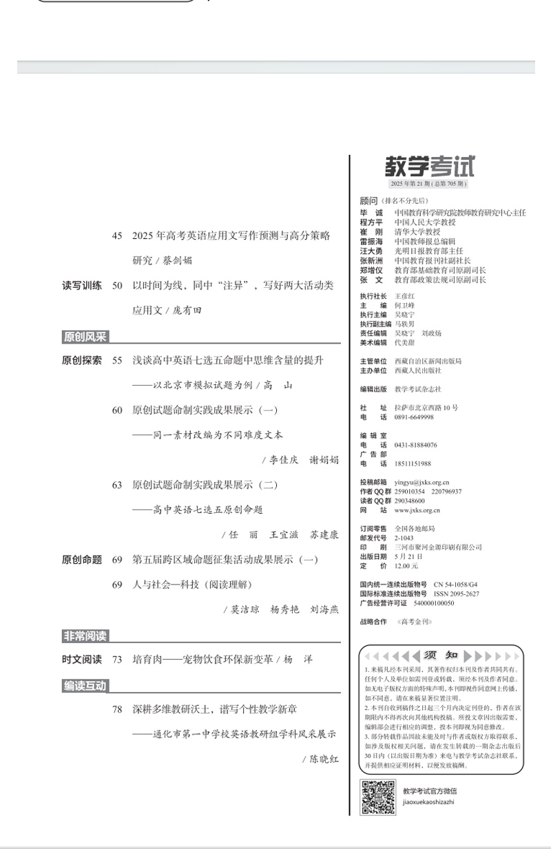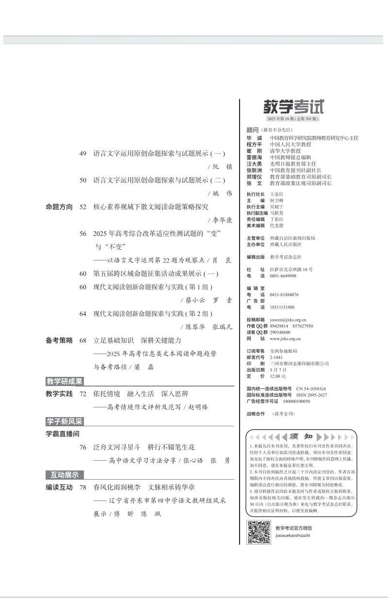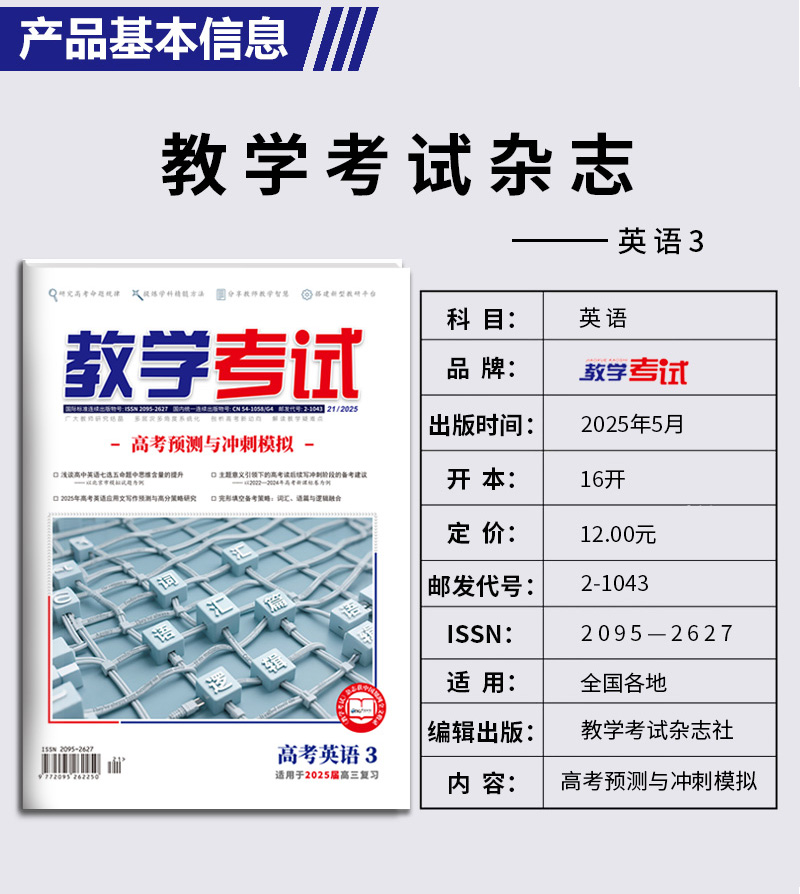 2025 教学考试杂志第3期 语文 数学 英语 物理 化学 生物 政治 地理 历史