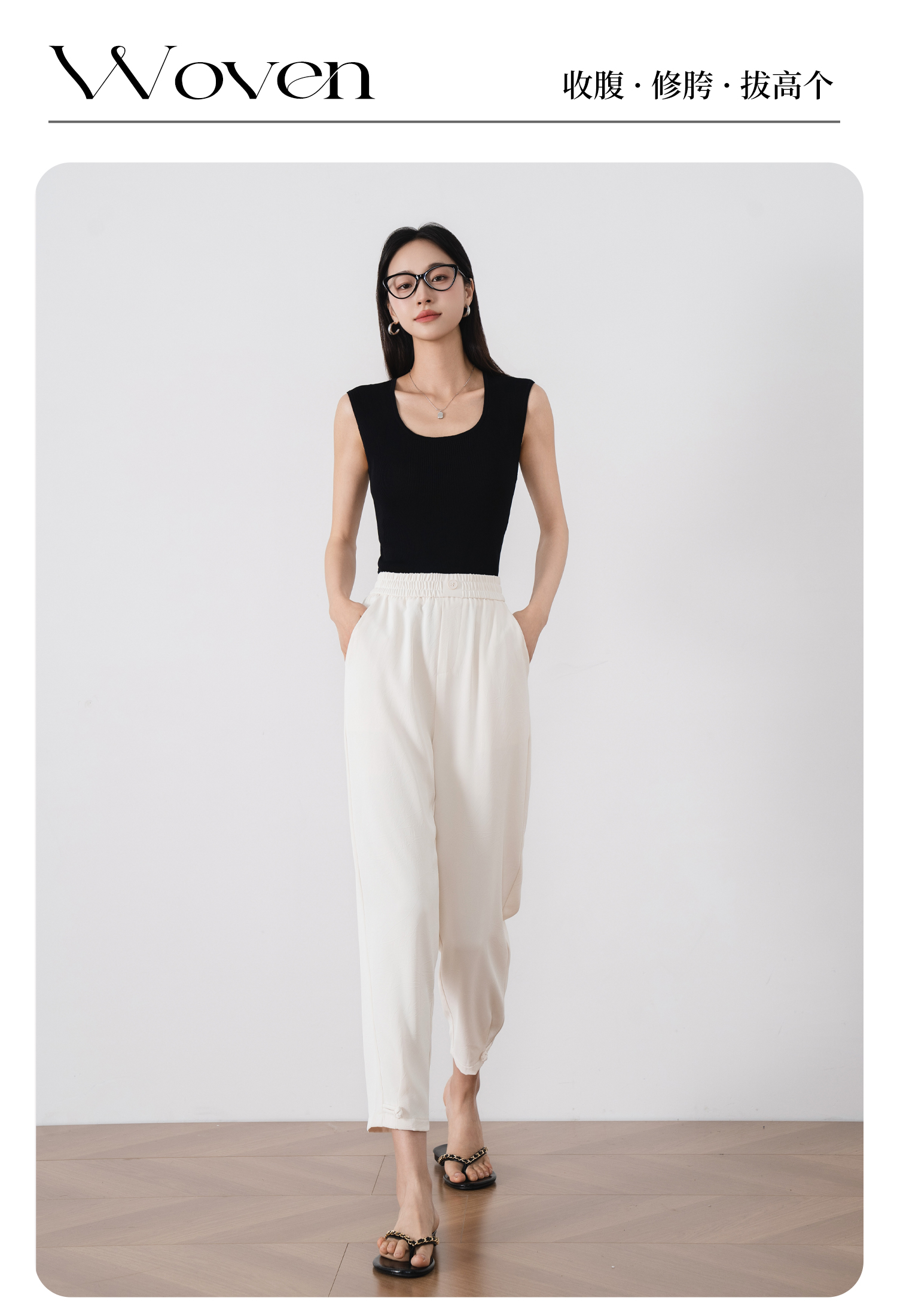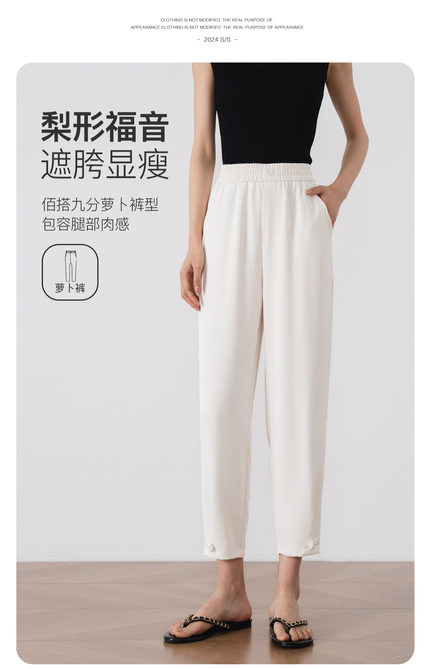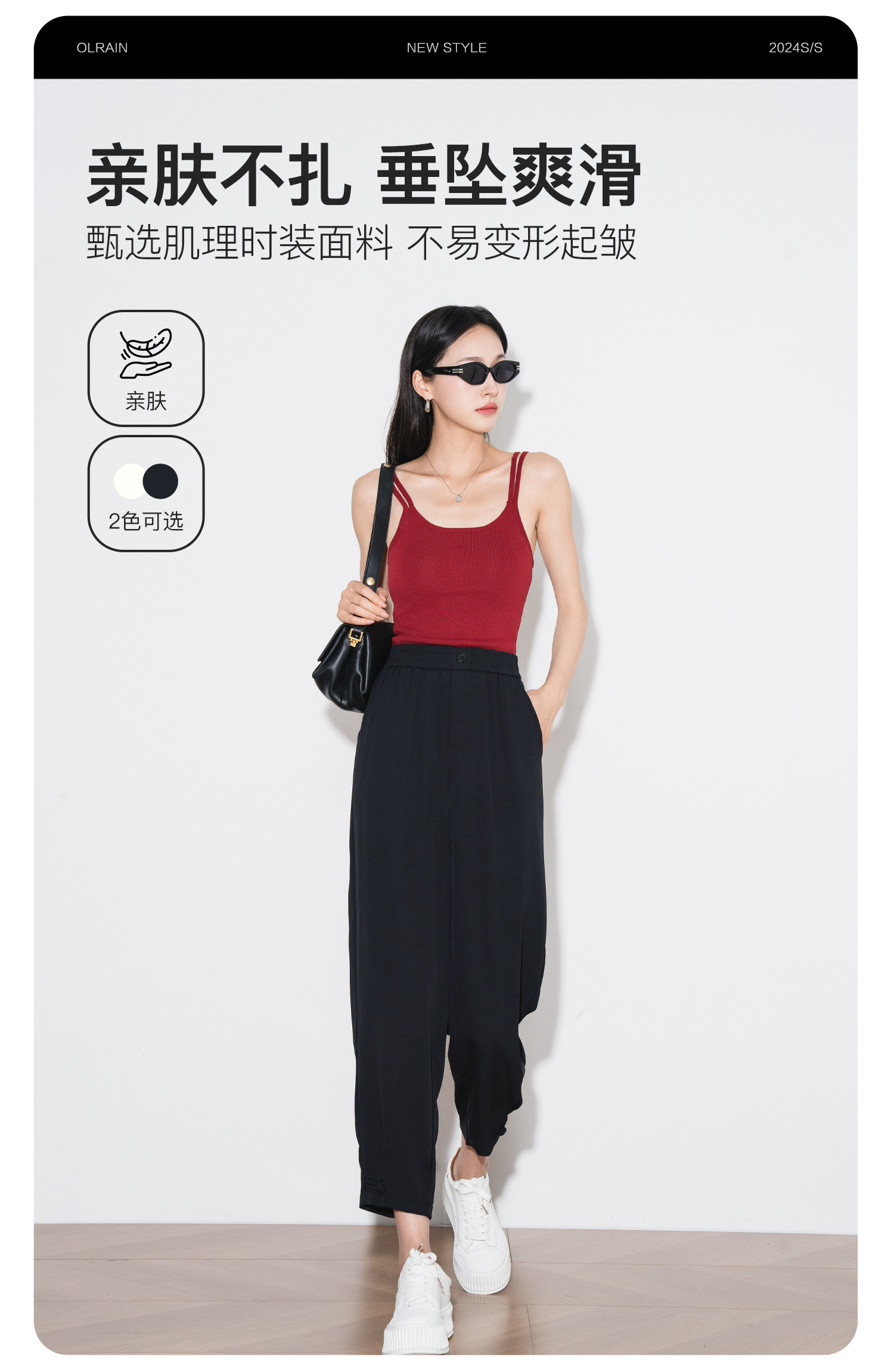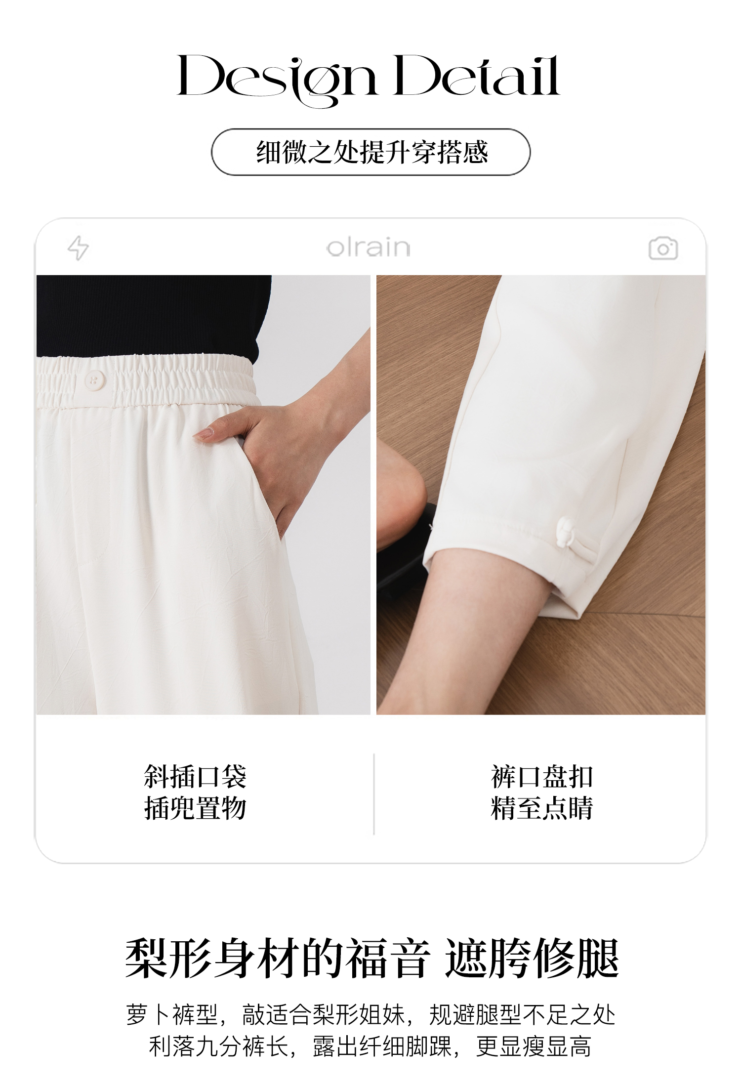 OLrain欧芮儿高腰休闲裤女2024夏季新款通勤百搭哈伦裤九分萝卜裤