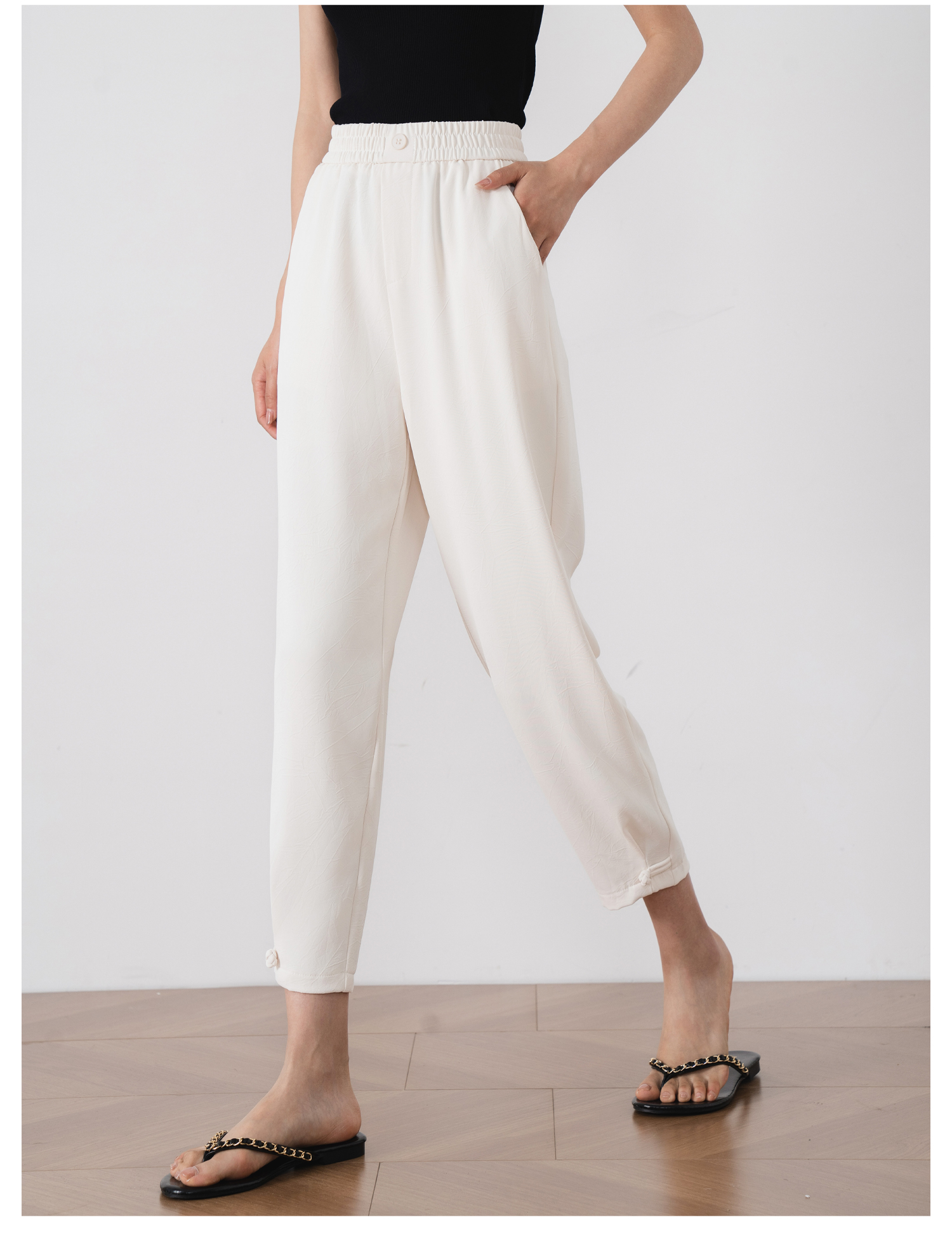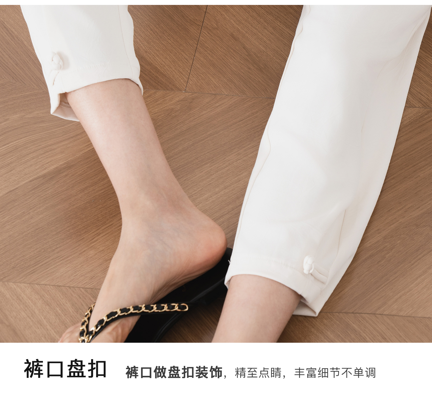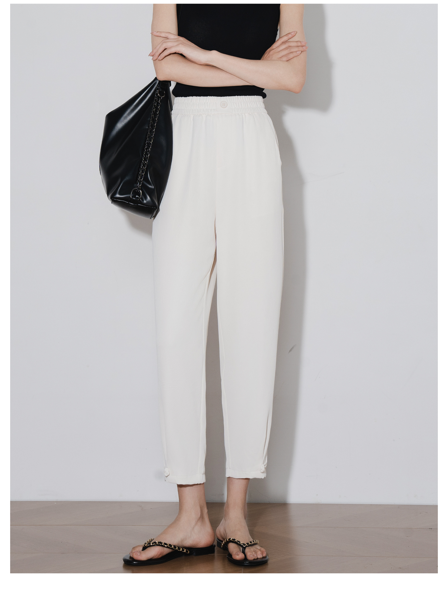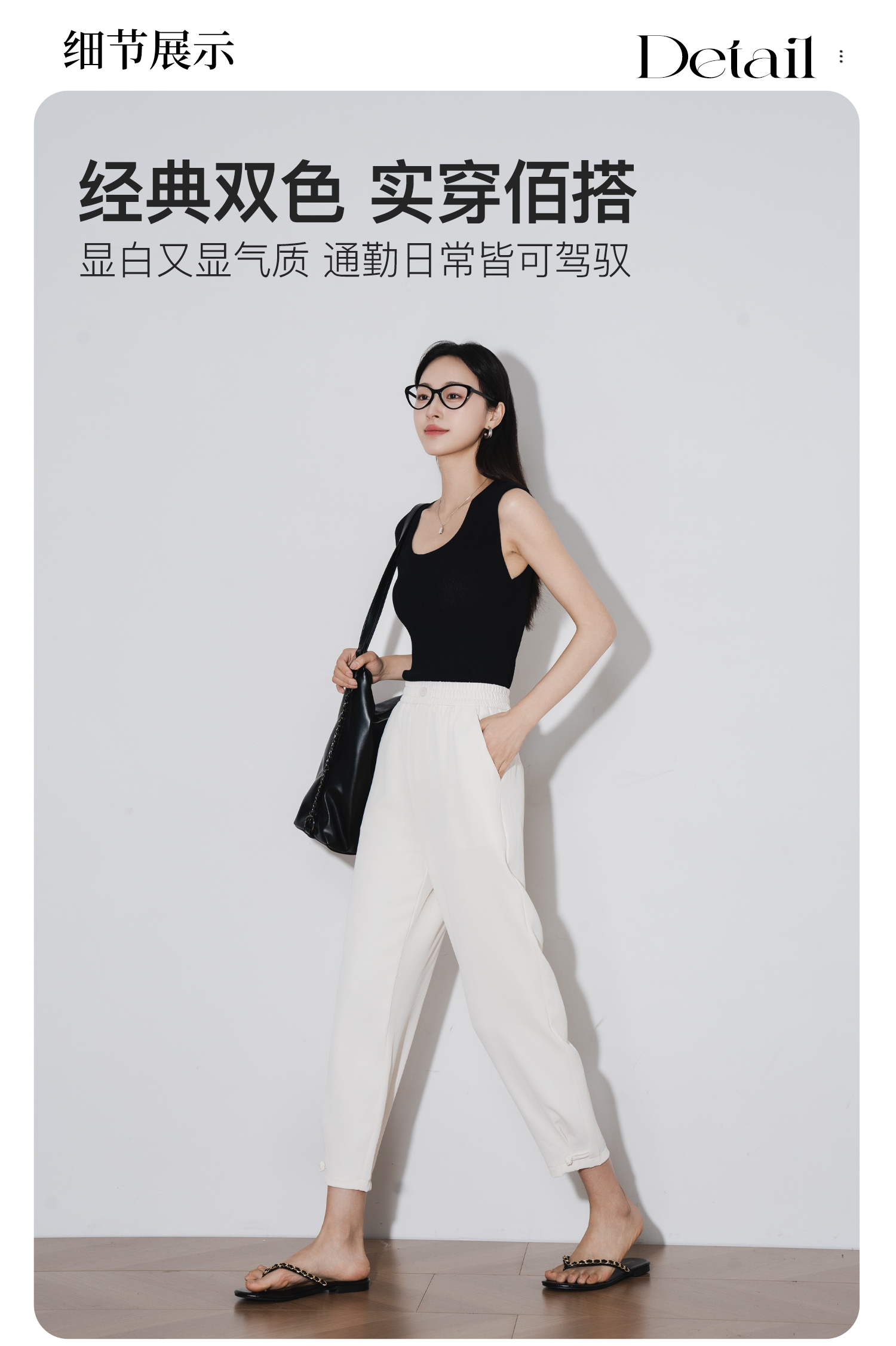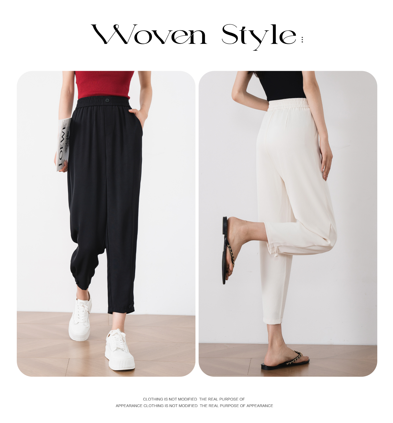 OLrain欧芮儿高腰休闲裤女2024夏季新款通勤百搭哈伦裤九分萝卜裤