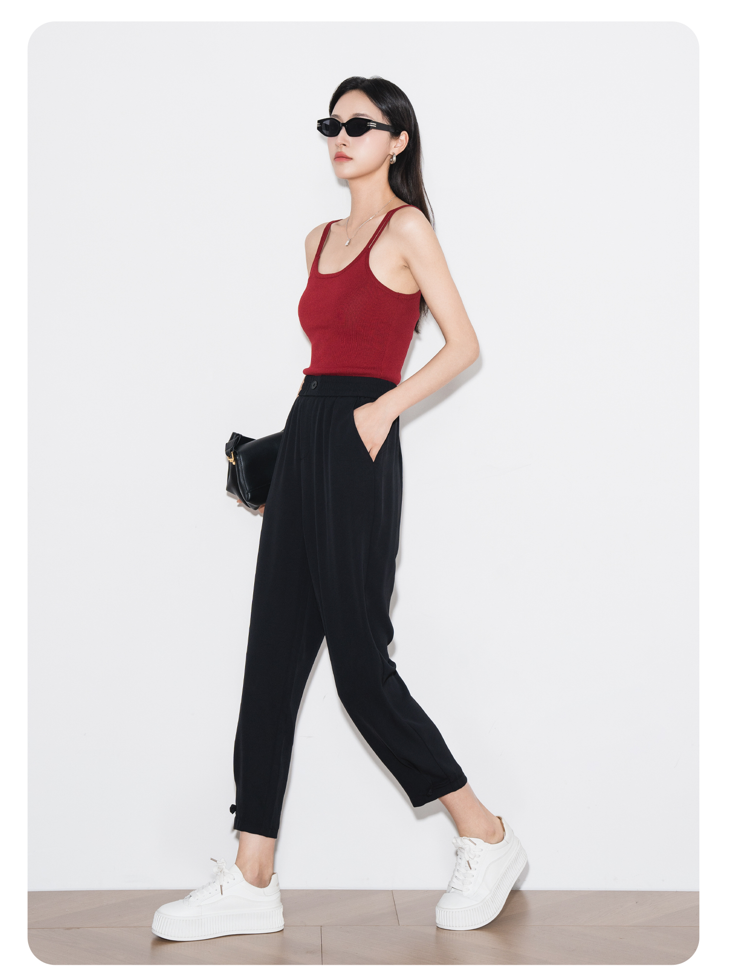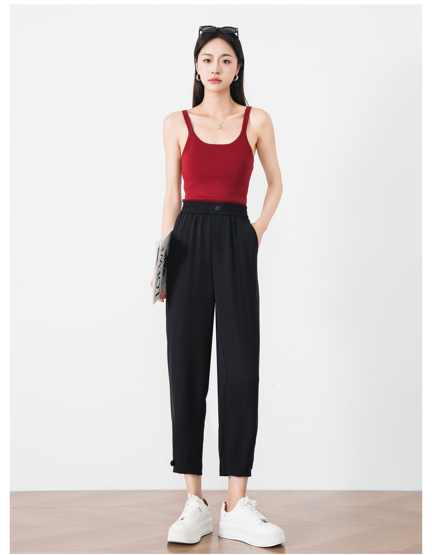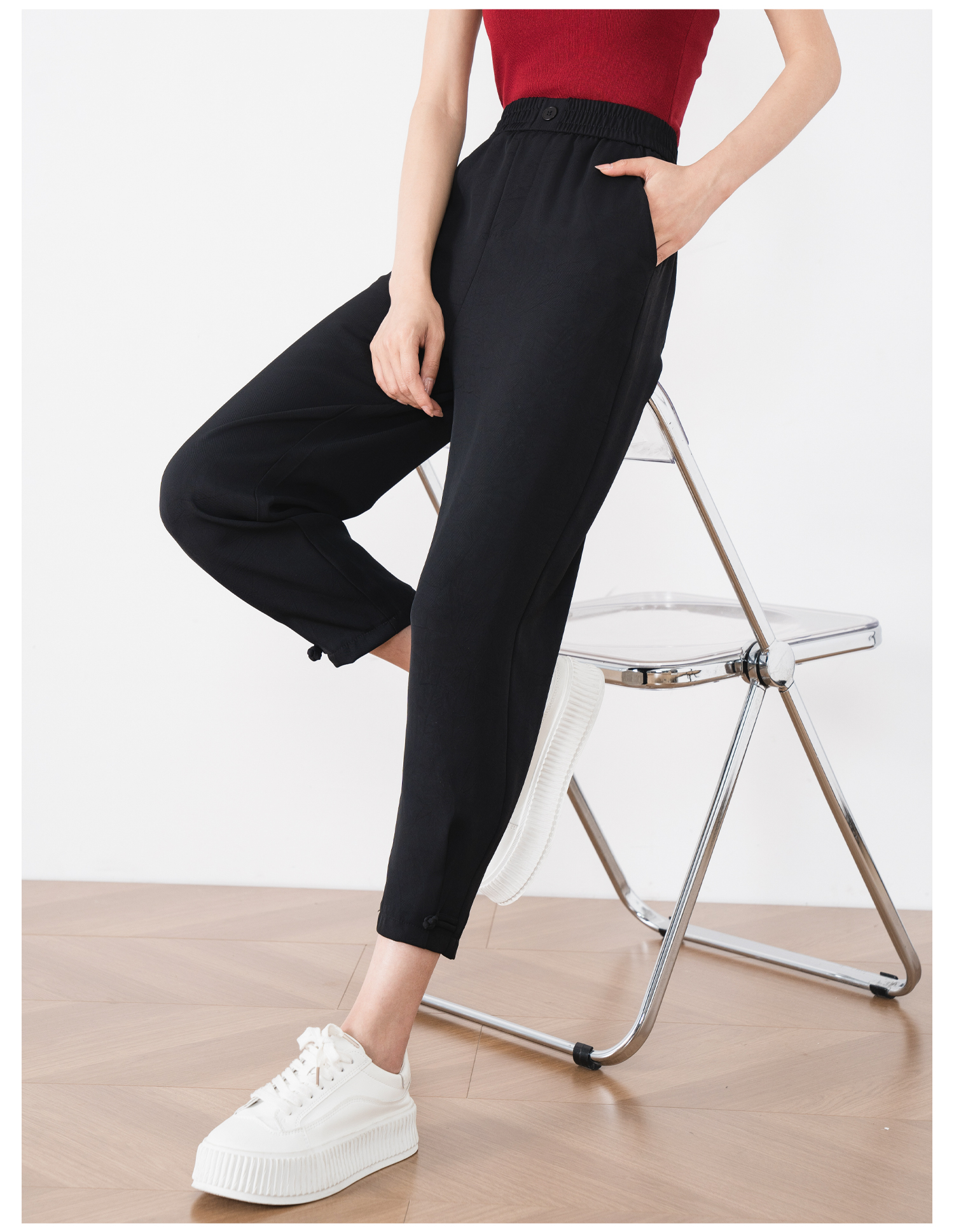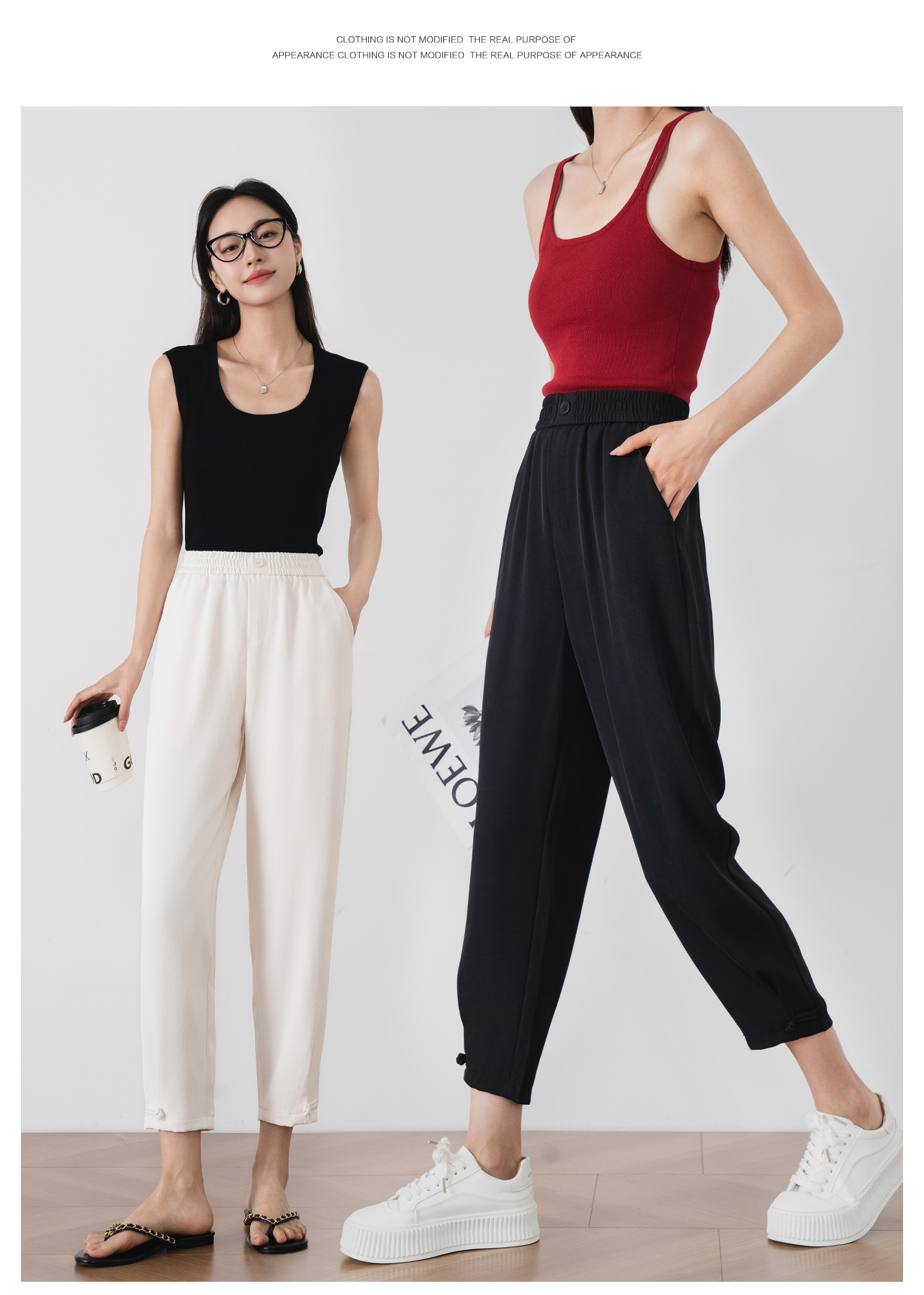 OLrain欧芮儿高腰休闲裤女2024夏季新款通勤百搭哈伦裤九分萝卜裤
