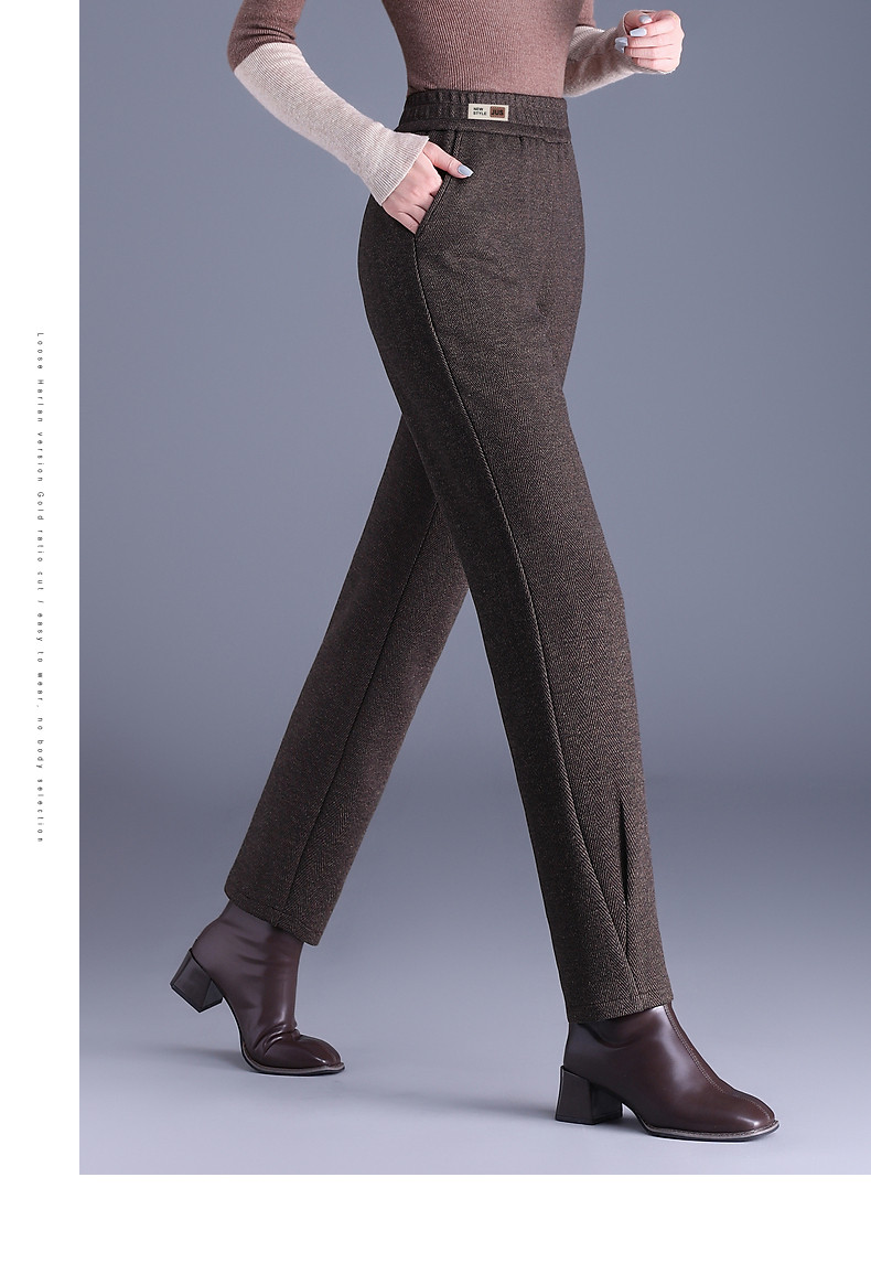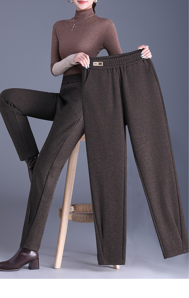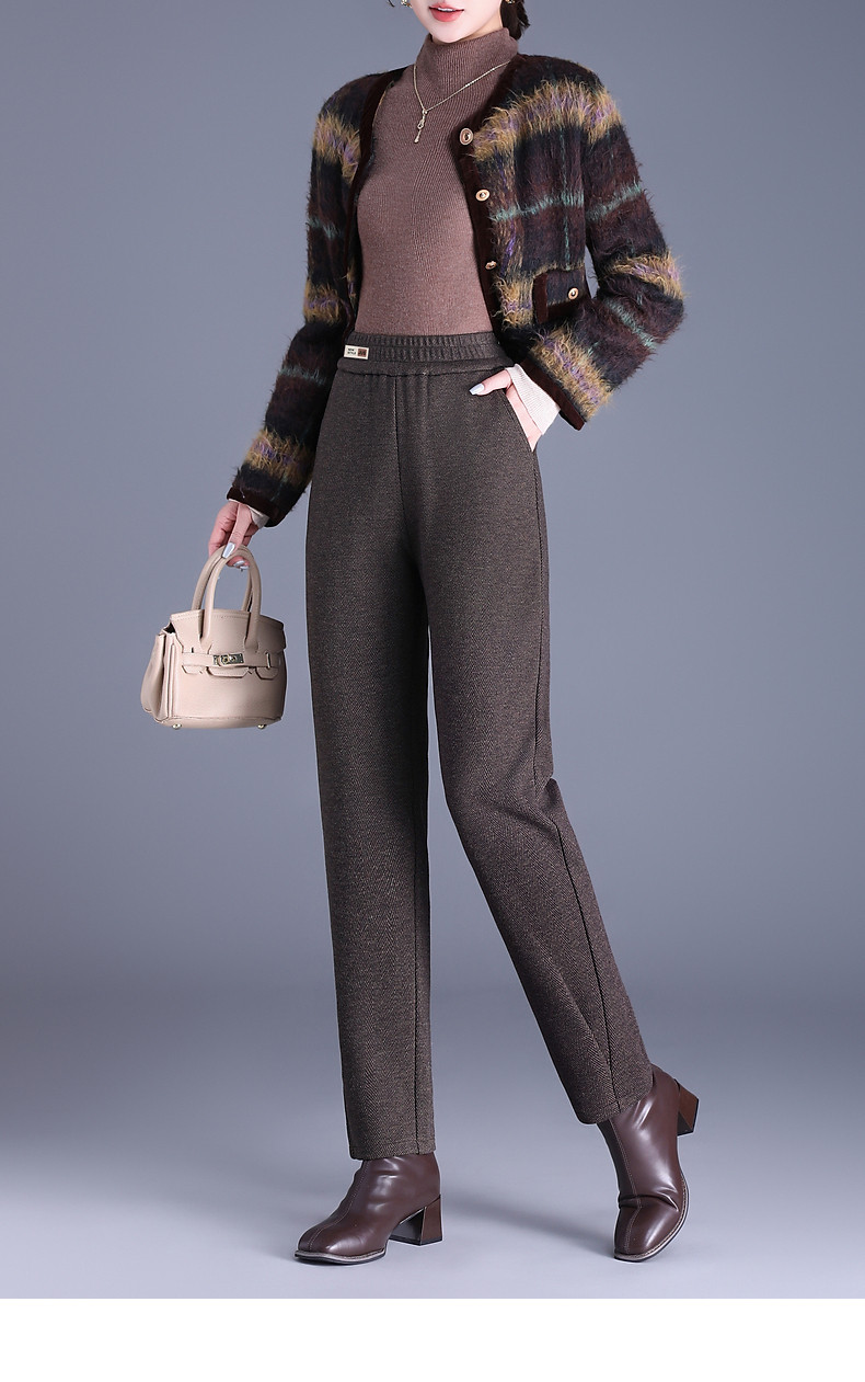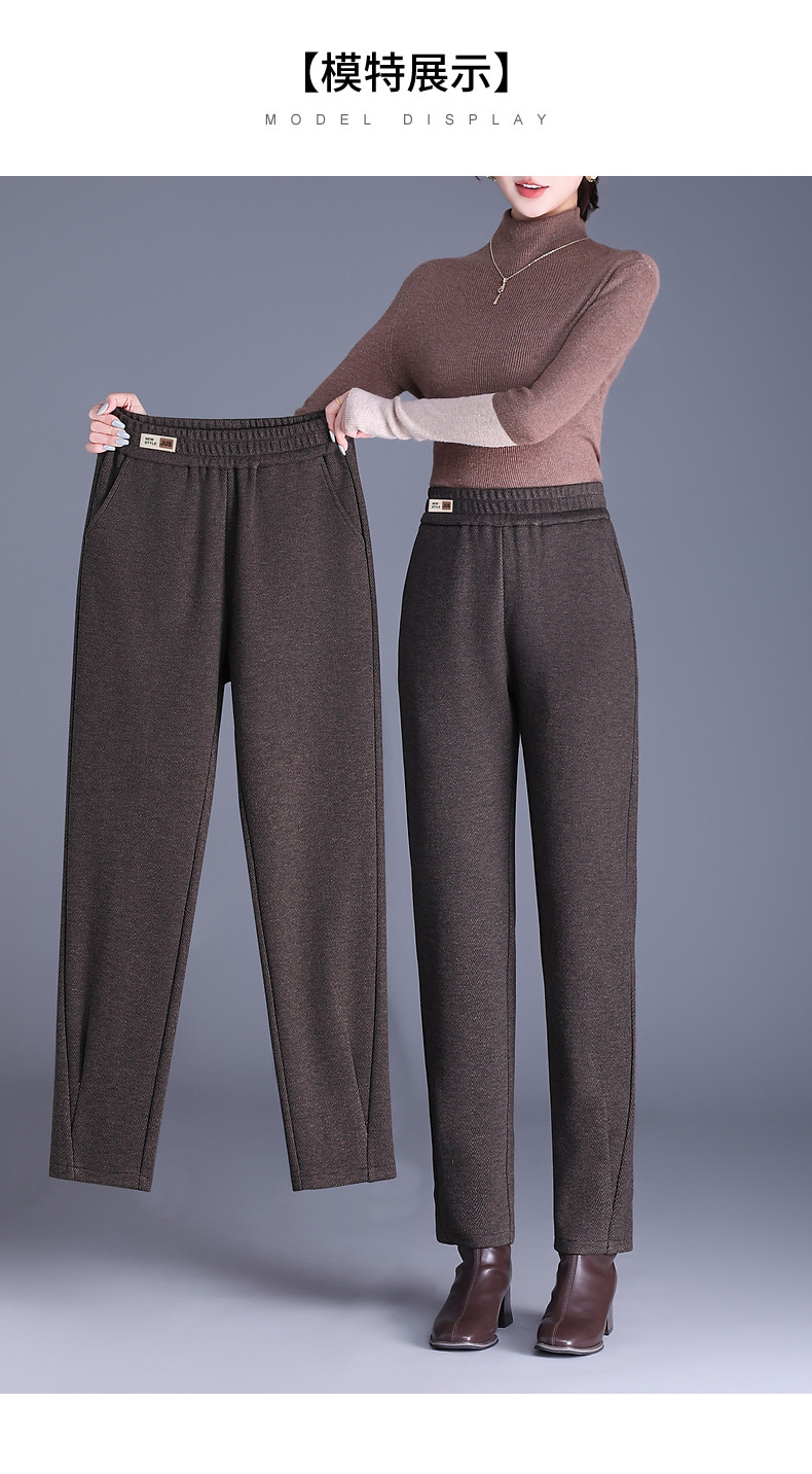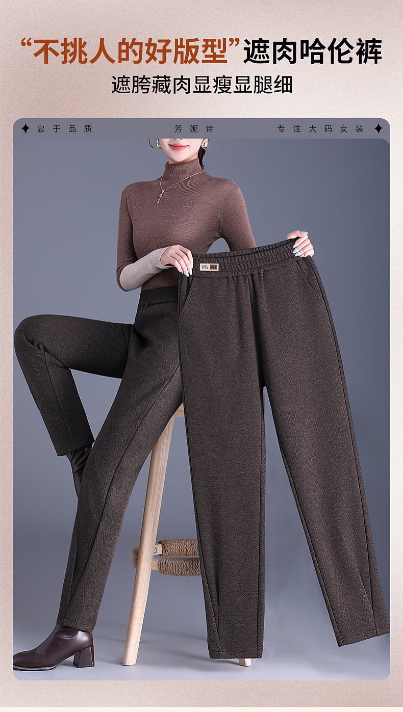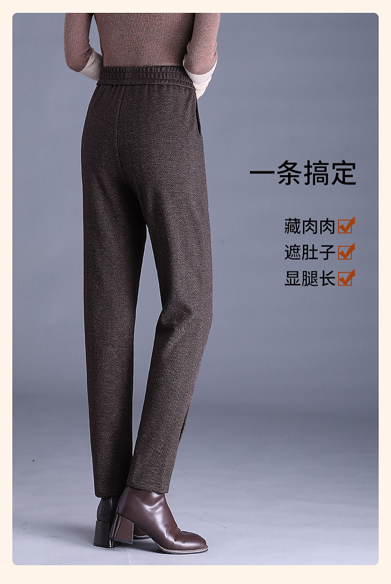 人字纹毛呢萝卜哈伦裤女冬季新款老爹裤大码显瘦宽松休闲裤子胖mm