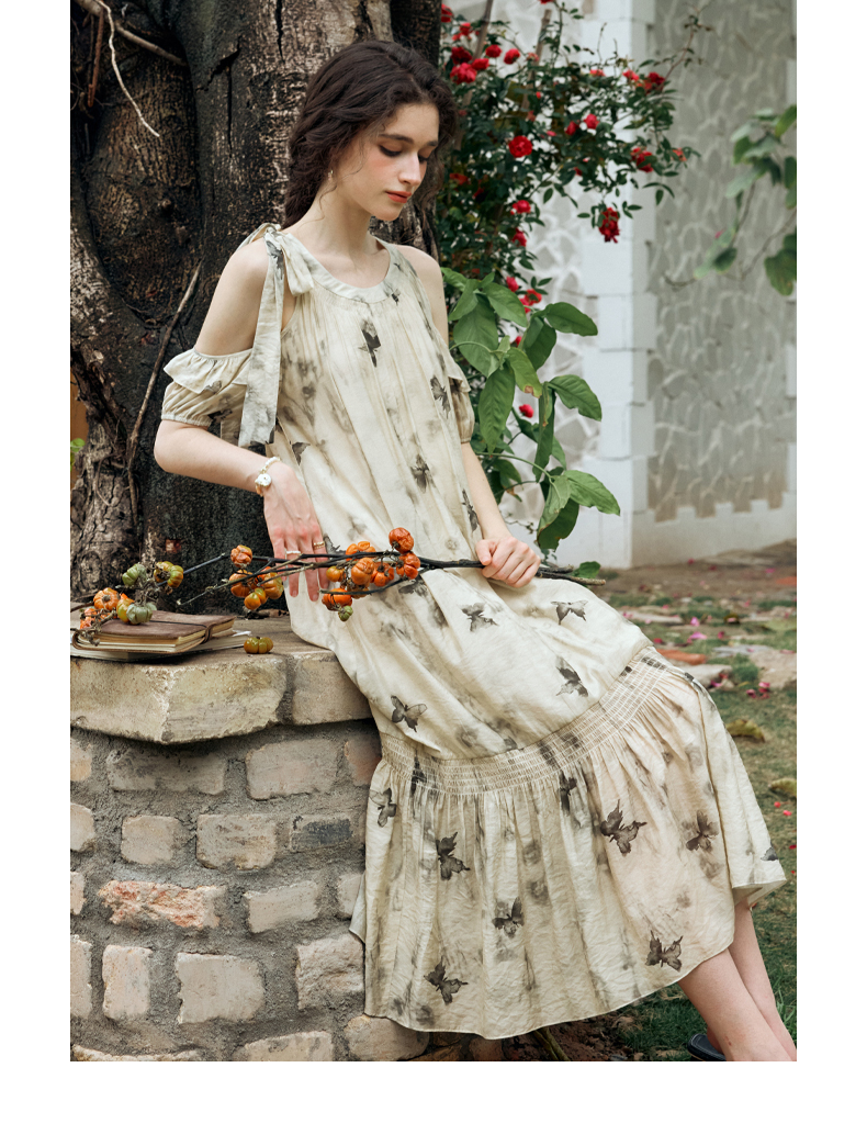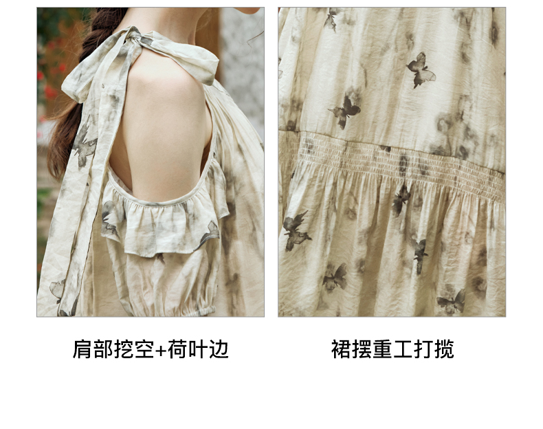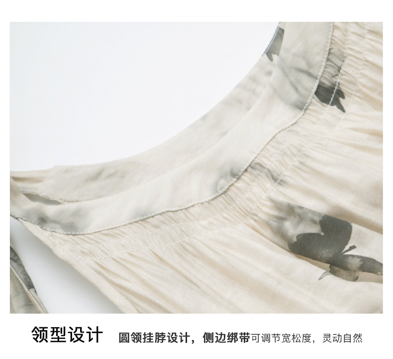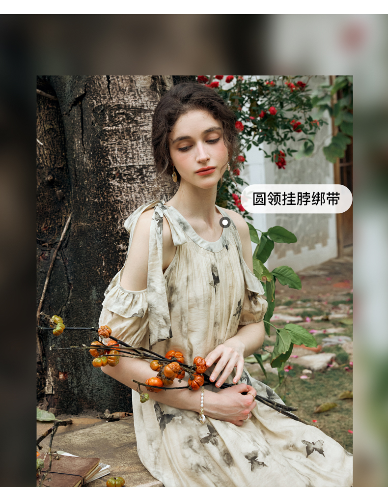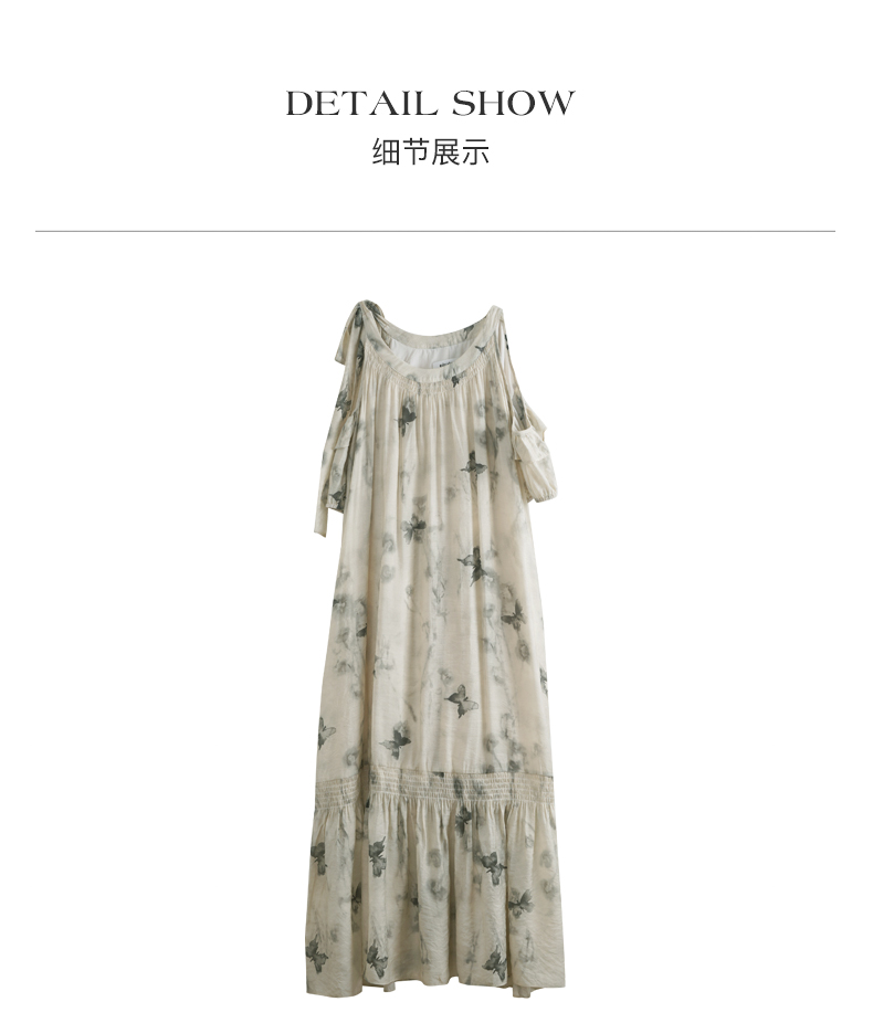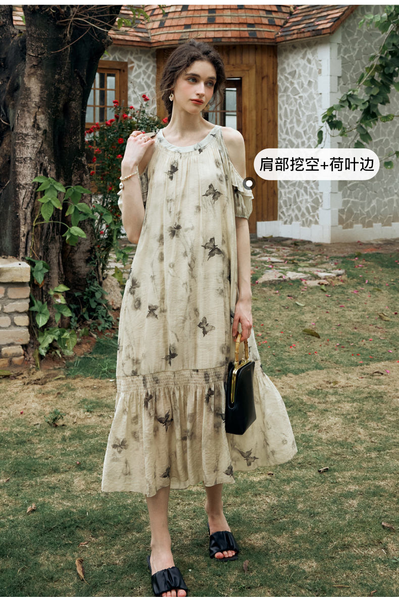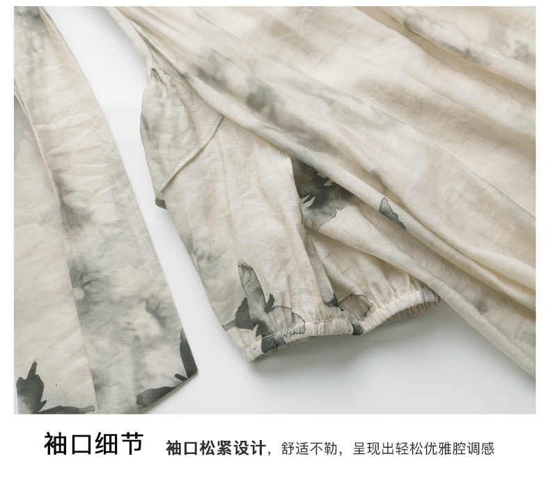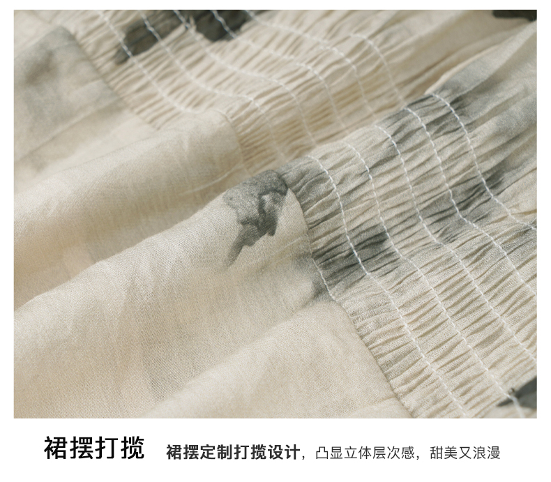OLrain欧芮儿碎花连衣裙女夏季2024年新款水墨画气质慵懒风长裙