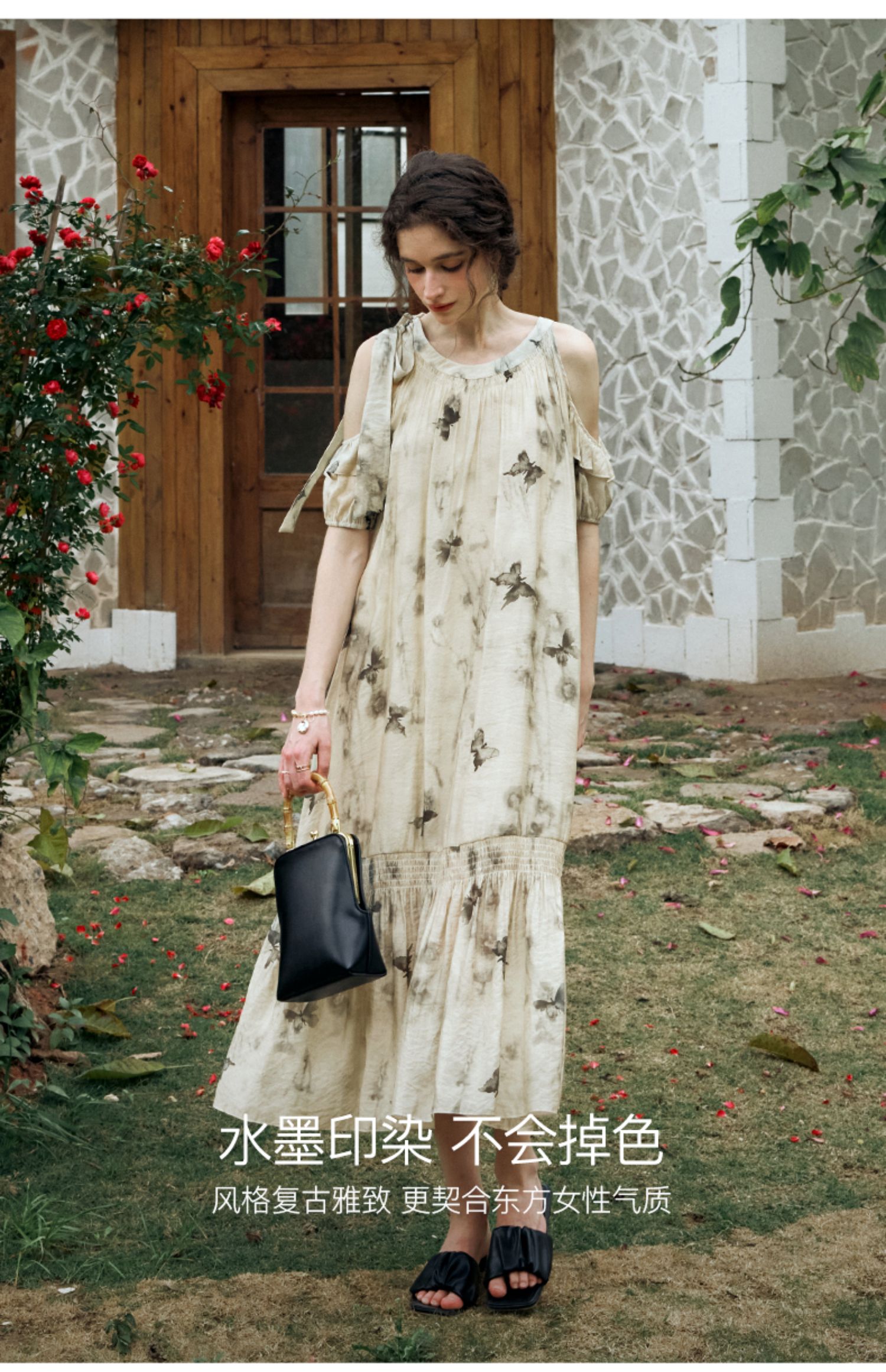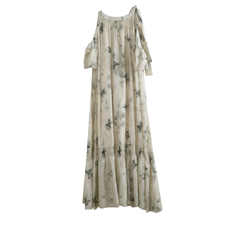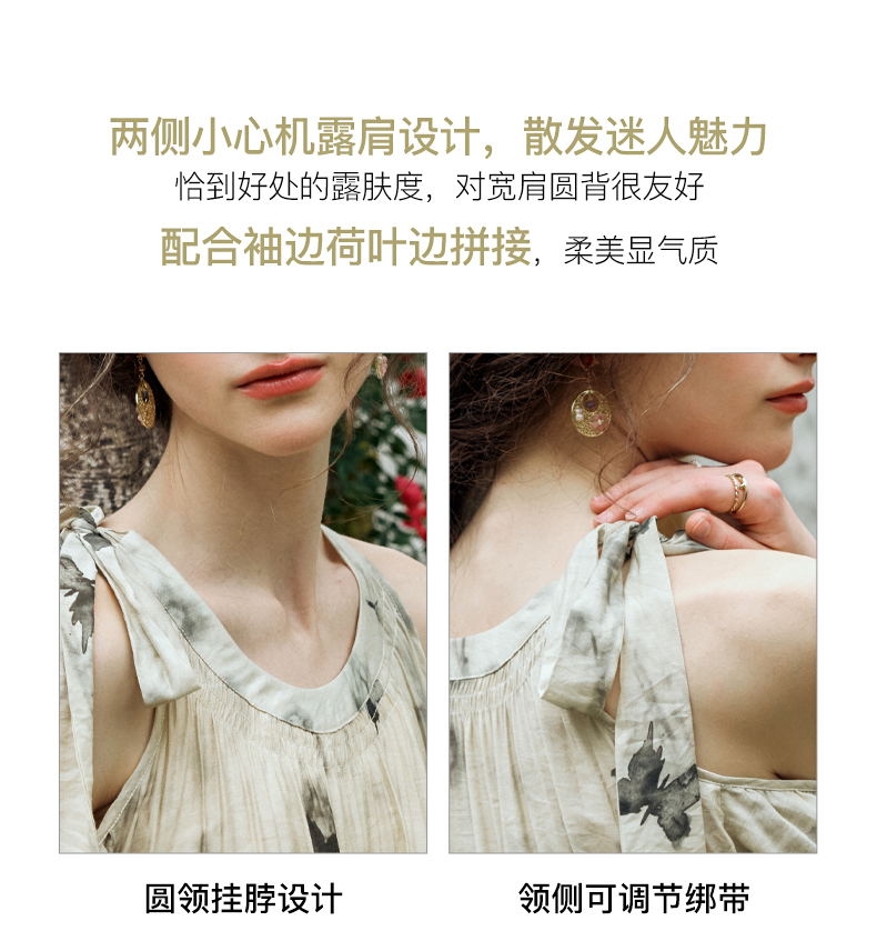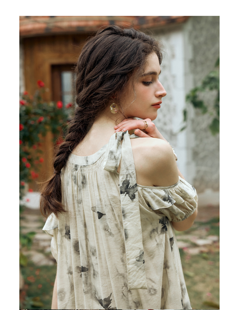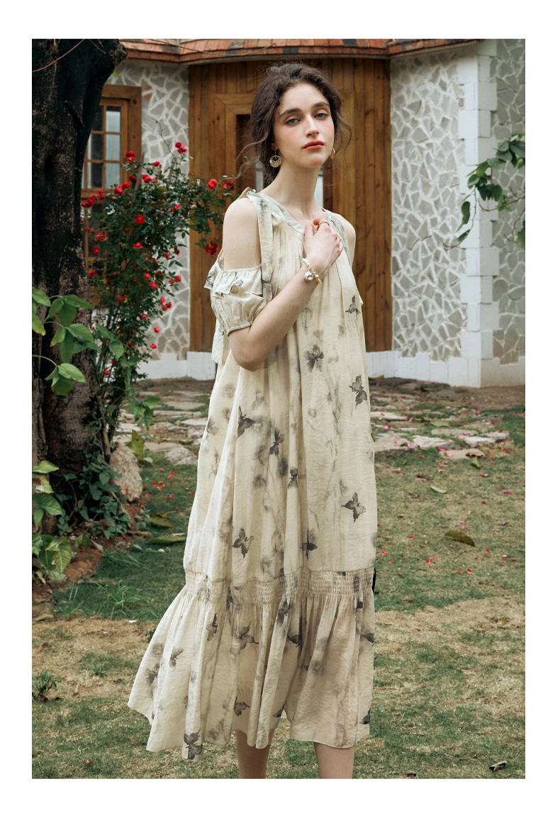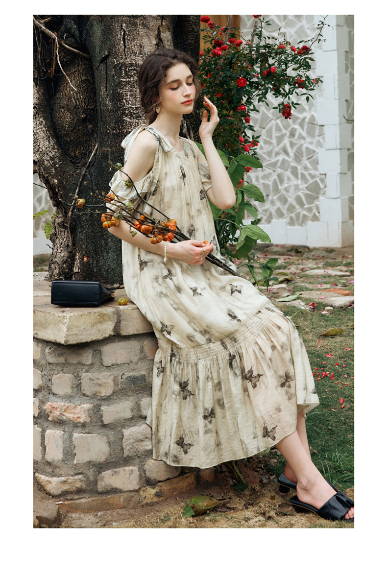 OLrain欧芮儿碎花连衣裙女夏季2024年新款水墨画气质慵懒风长裙