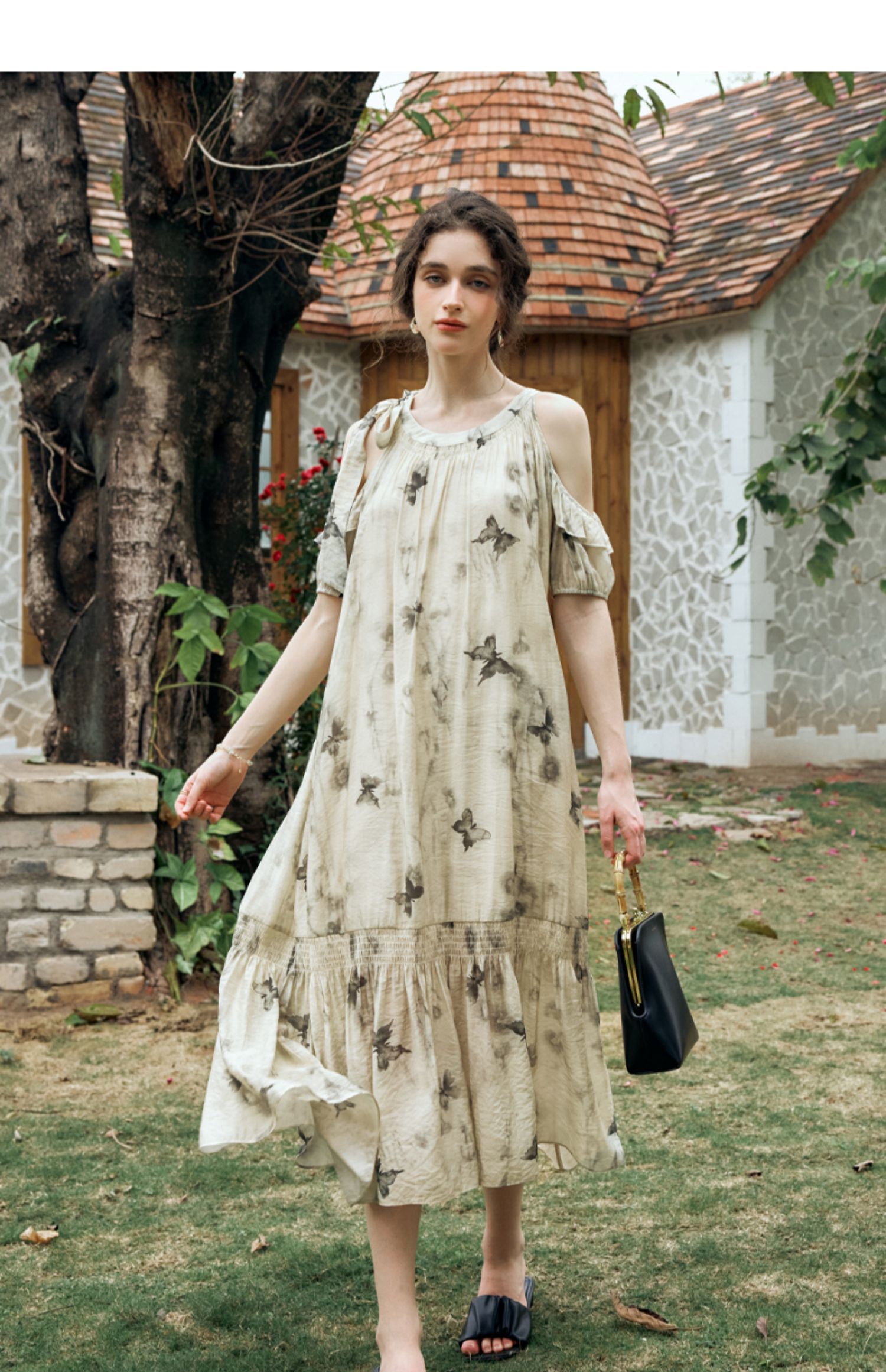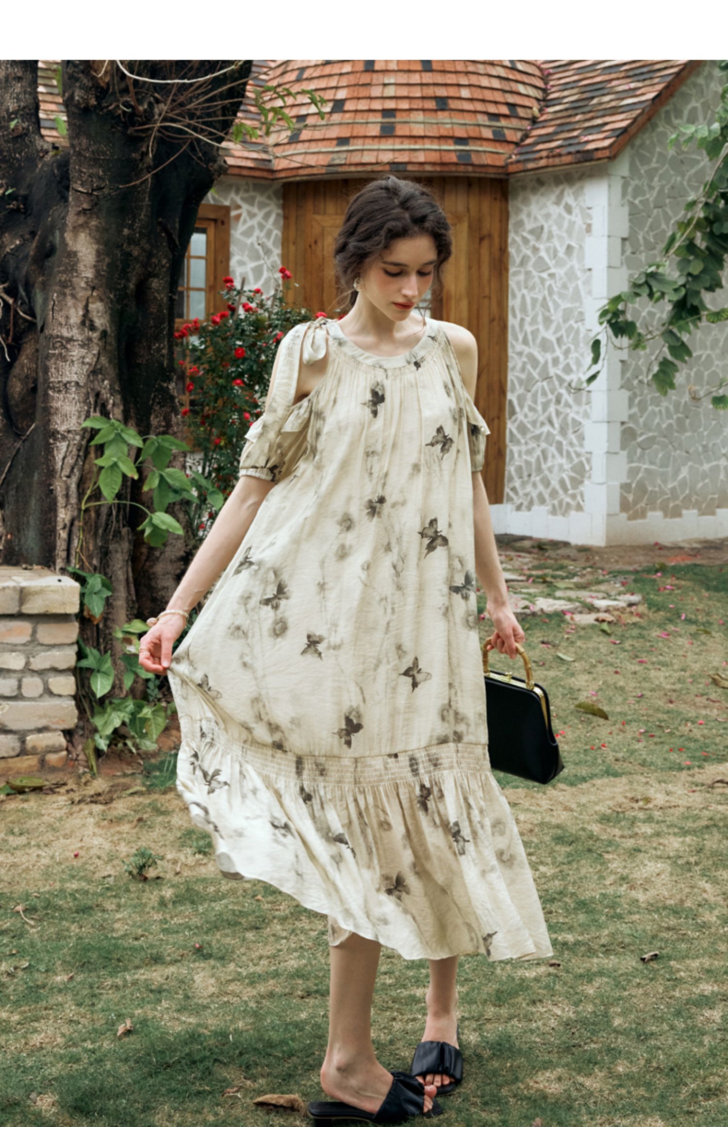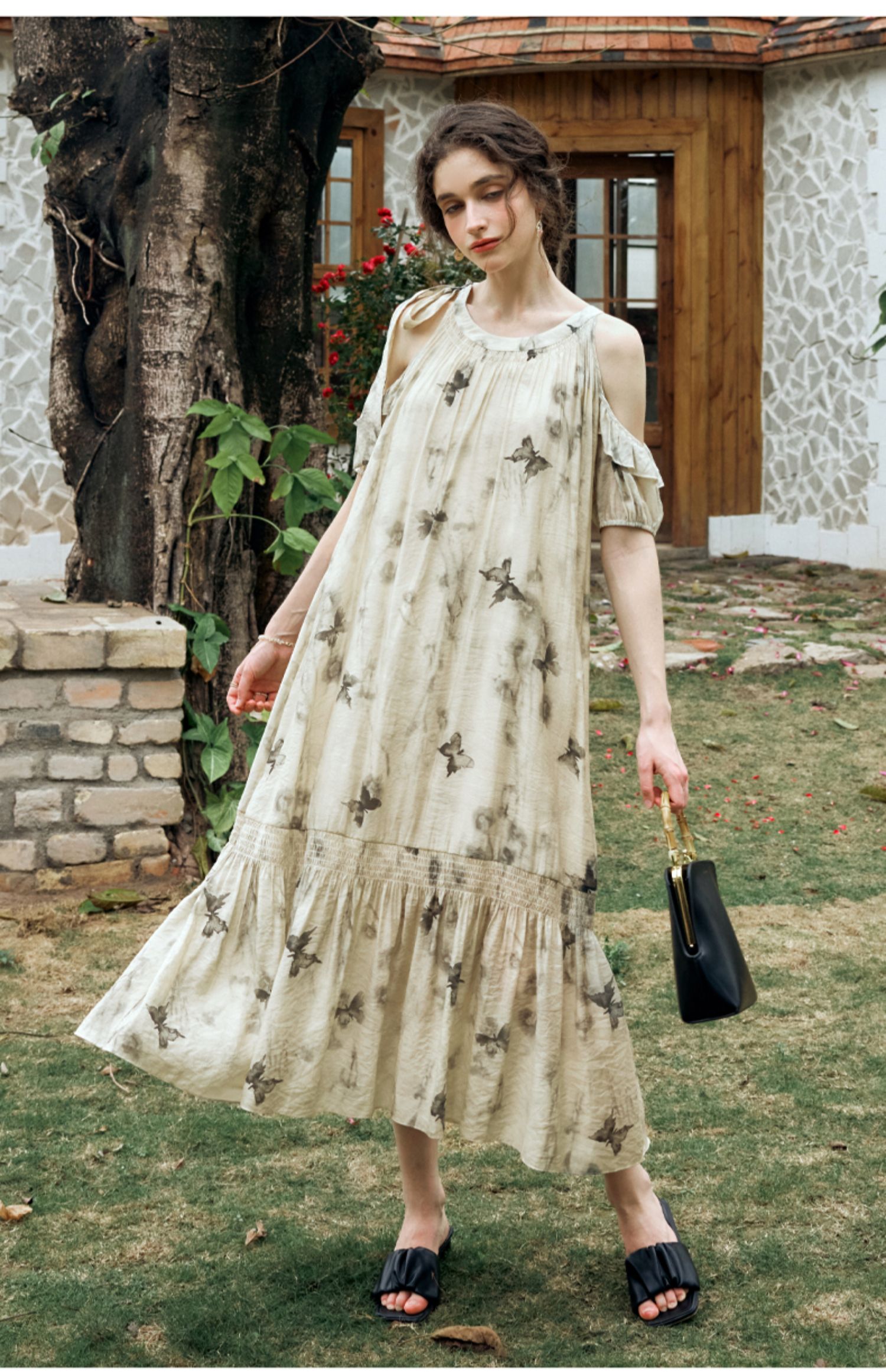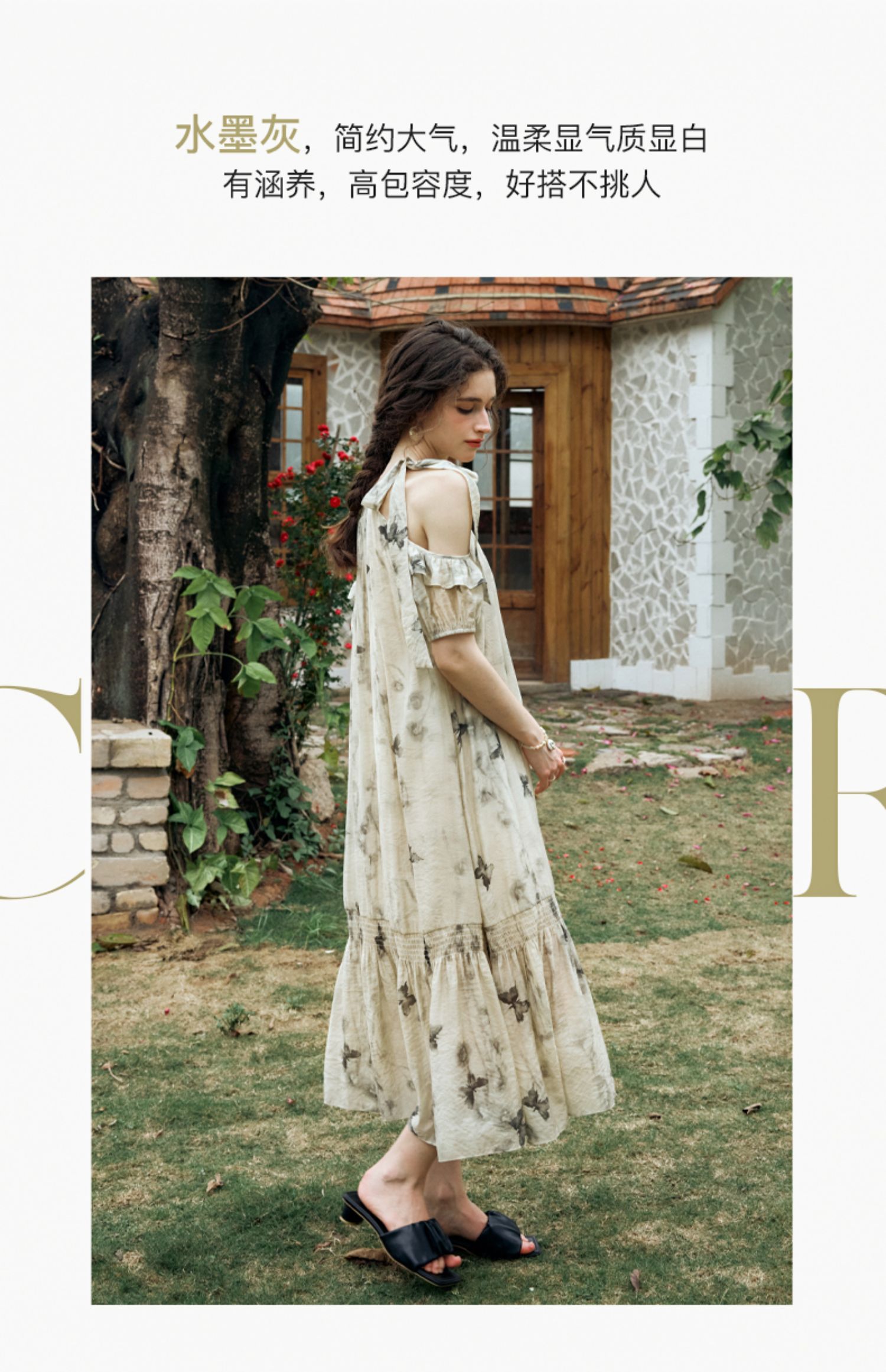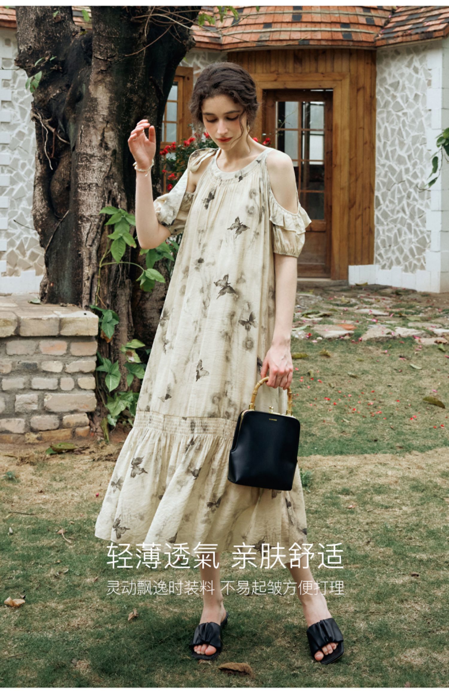 OLrain欧芮儿碎花连衣裙女夏季2024年新款水墨画气质慵懒风长裙