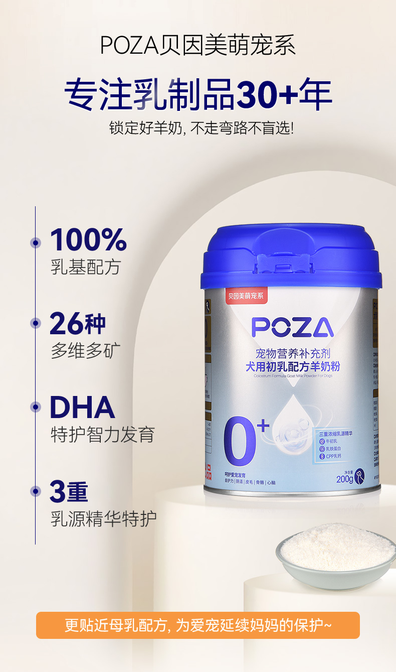 POZA贝因美萌宠系犬用初乳配方羊奶粉狗狗专用幼小狗营养补钙正品(犬用初乳配方羊奶粉*1罐200g)