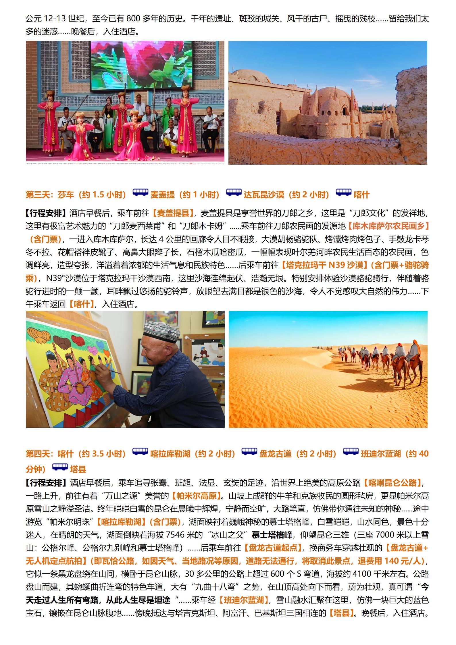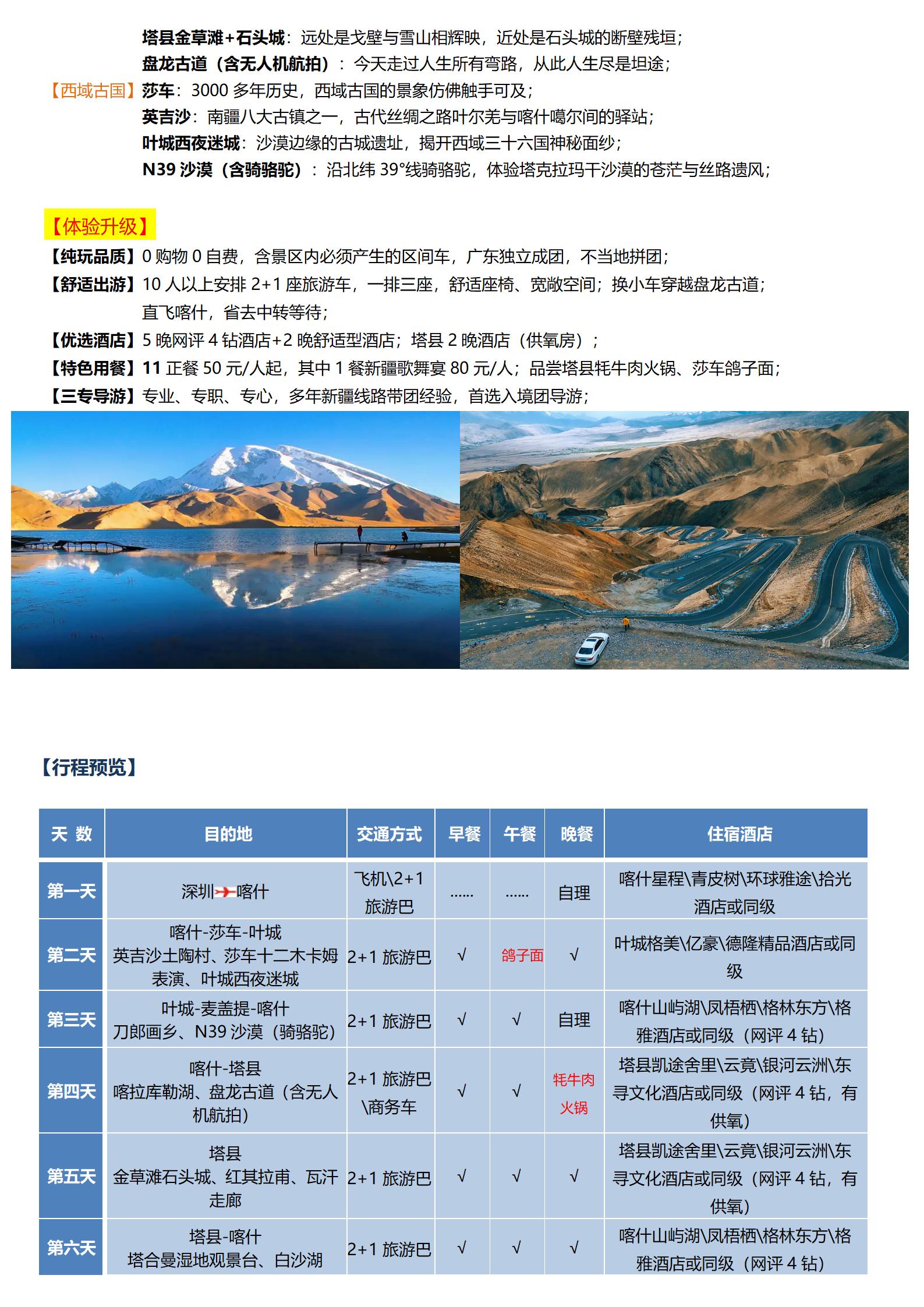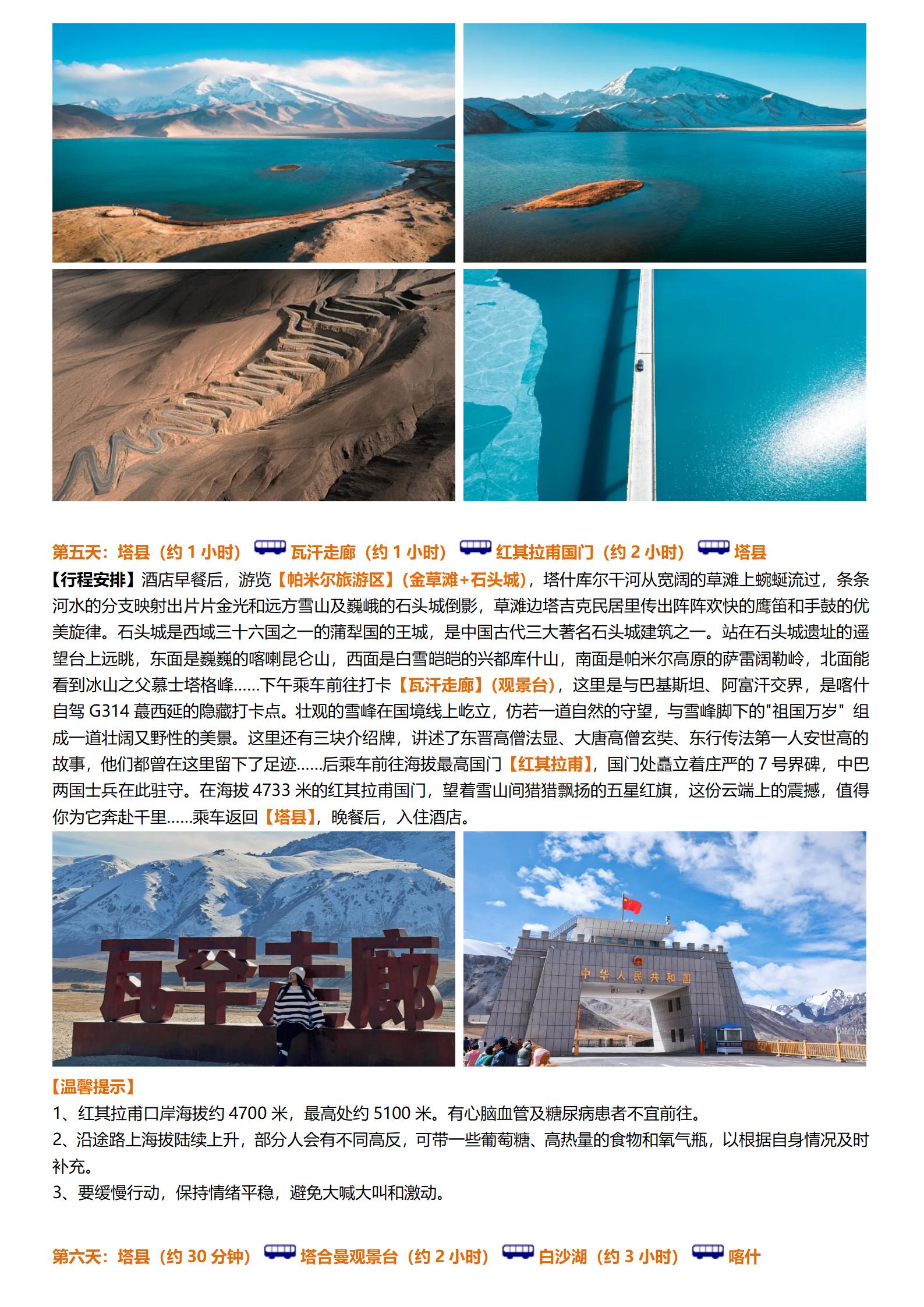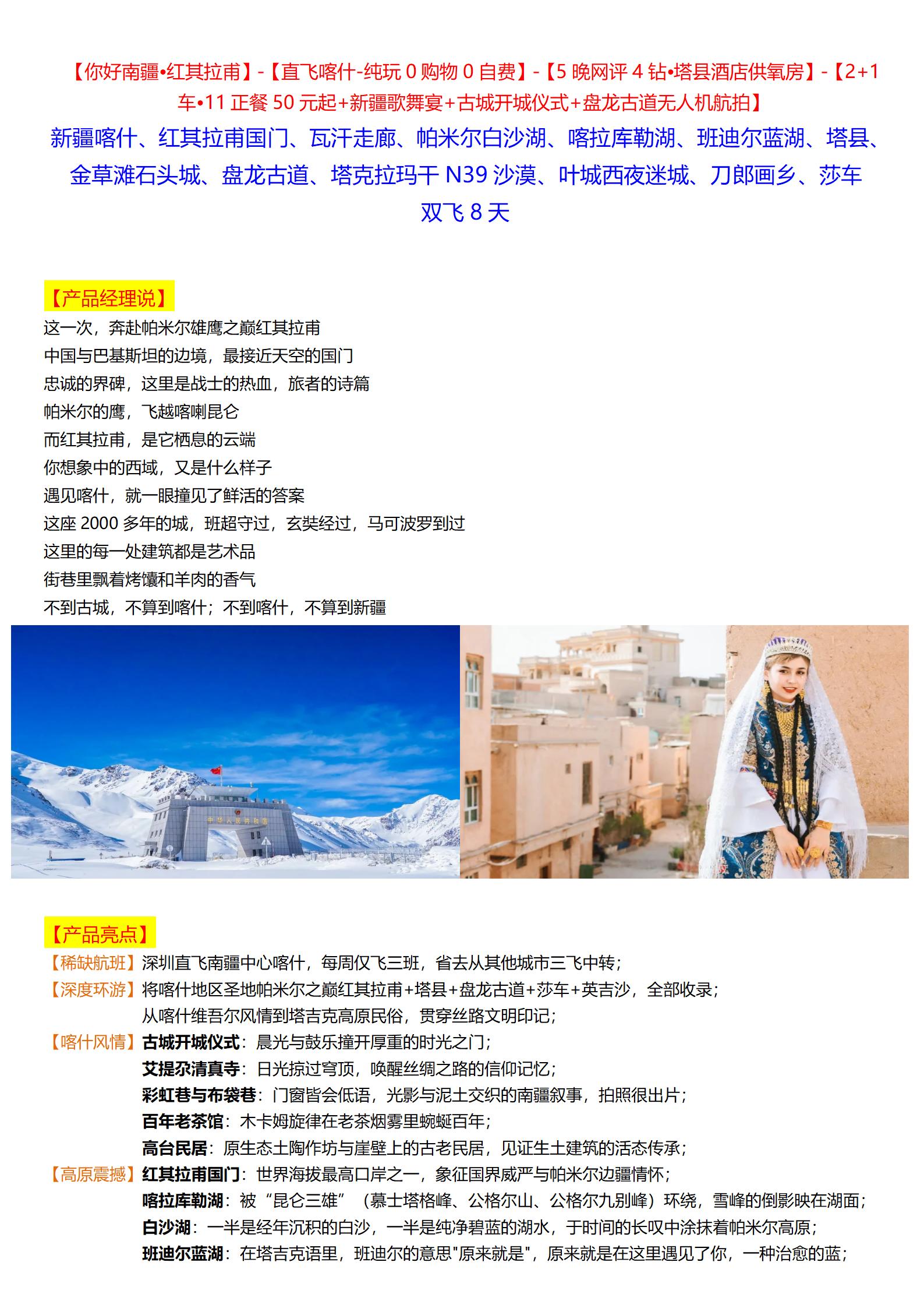 【五一】<新疆南疆双飞纯玩8天>喀什、红其拉甫国门、瓦汗走廊、帕米尔白沙湖、喀拉库勒湖、班迪尔蓝湖、塔县、金草滩石头城、盘龙古道、塔克拉玛干N39沙漠、叶城西夜迷城、刀郎画乡、莎车