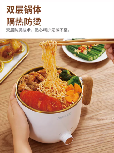 龙力1.5L小型电煮锅家用多功能电热火锅一体不粘锅