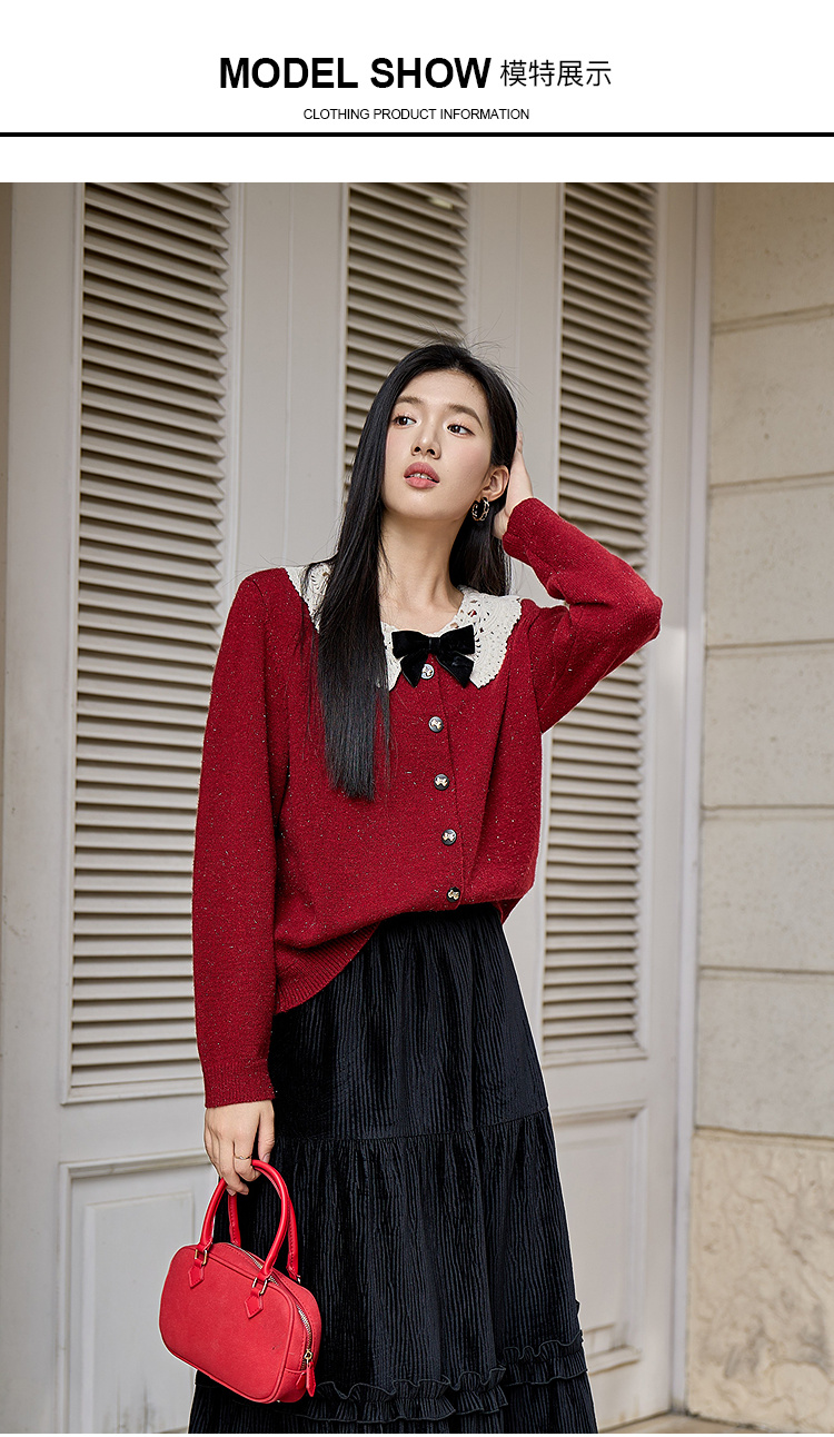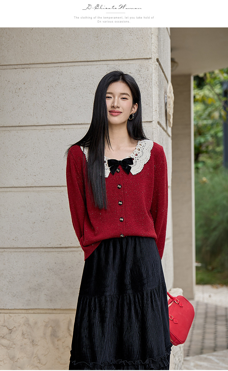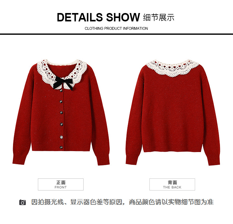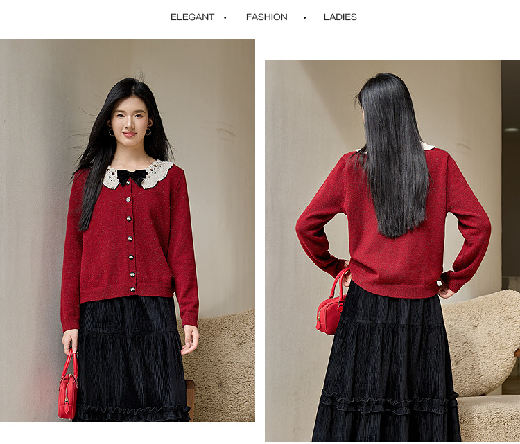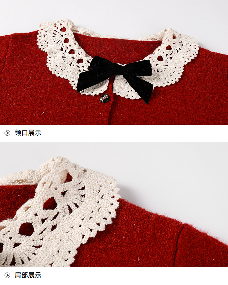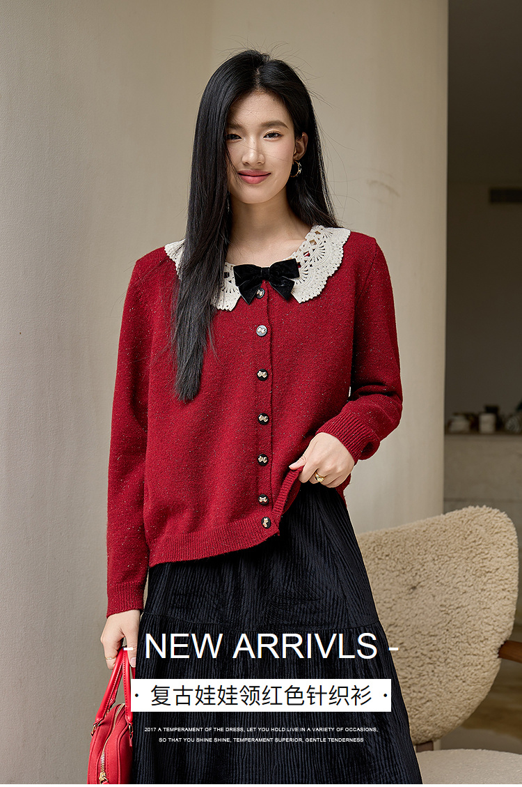 奢姿大码女装2025冬季时尚蕾丝娃娃领针织开衫胖妹妹气质减龄上衣9854691089