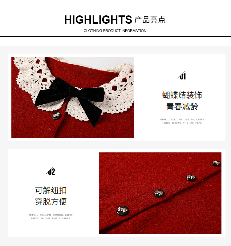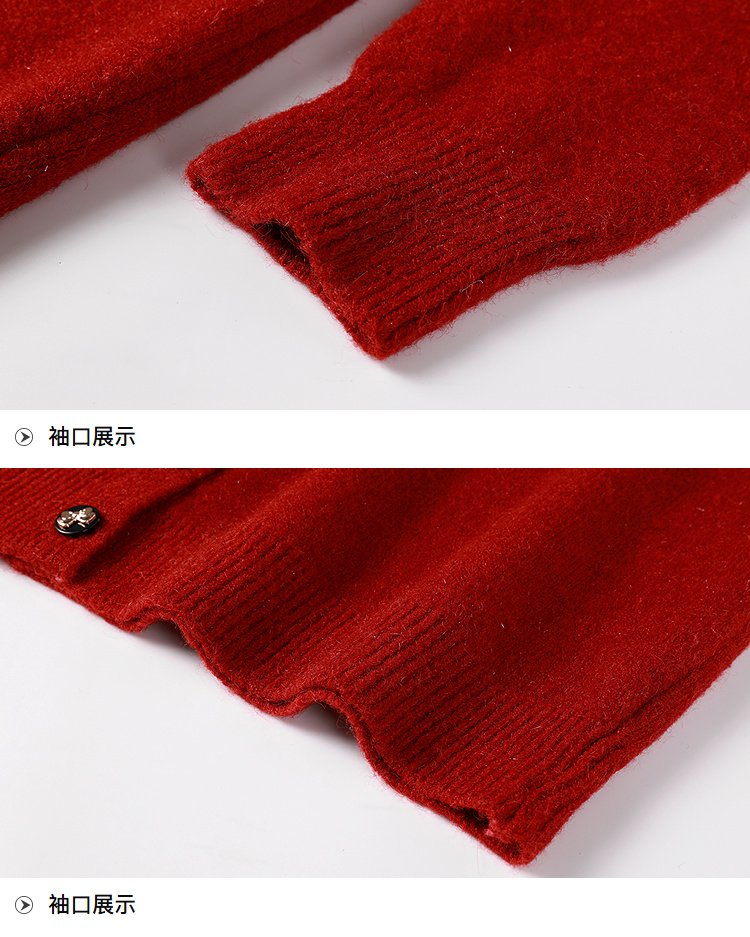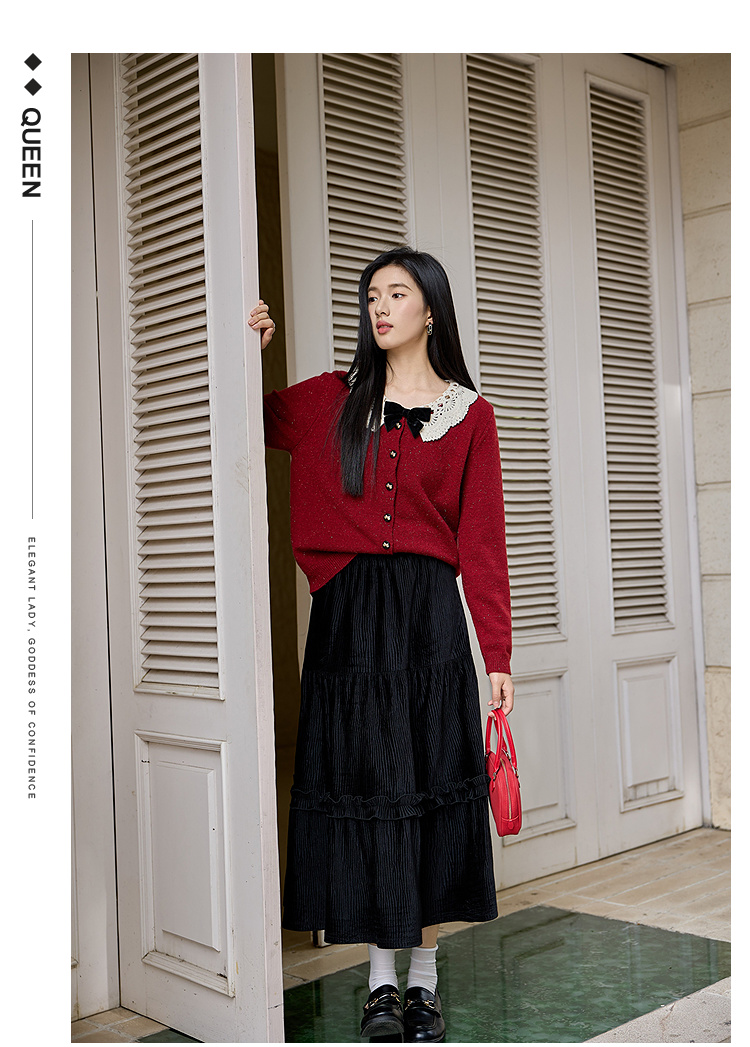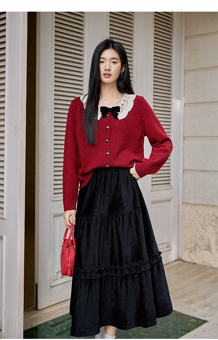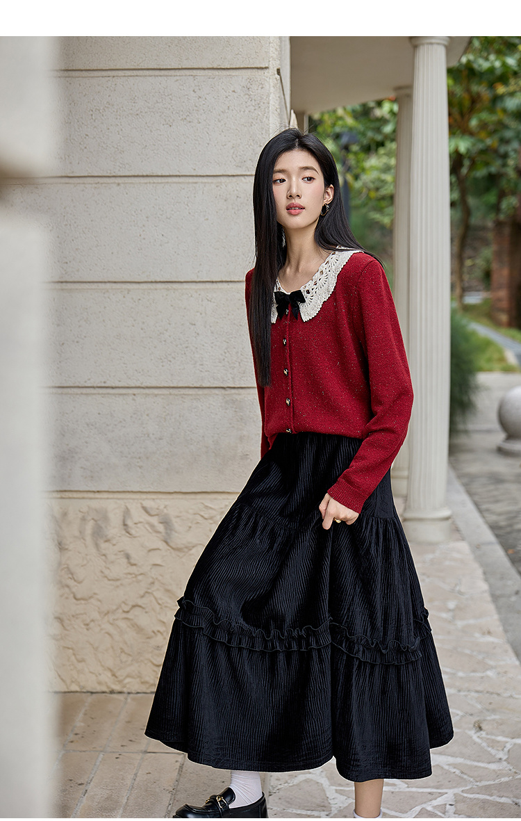 奢姿大码女装2025冬季时尚蕾丝娃娃领针织开衫胖妹妹气质减龄上衣9854691089