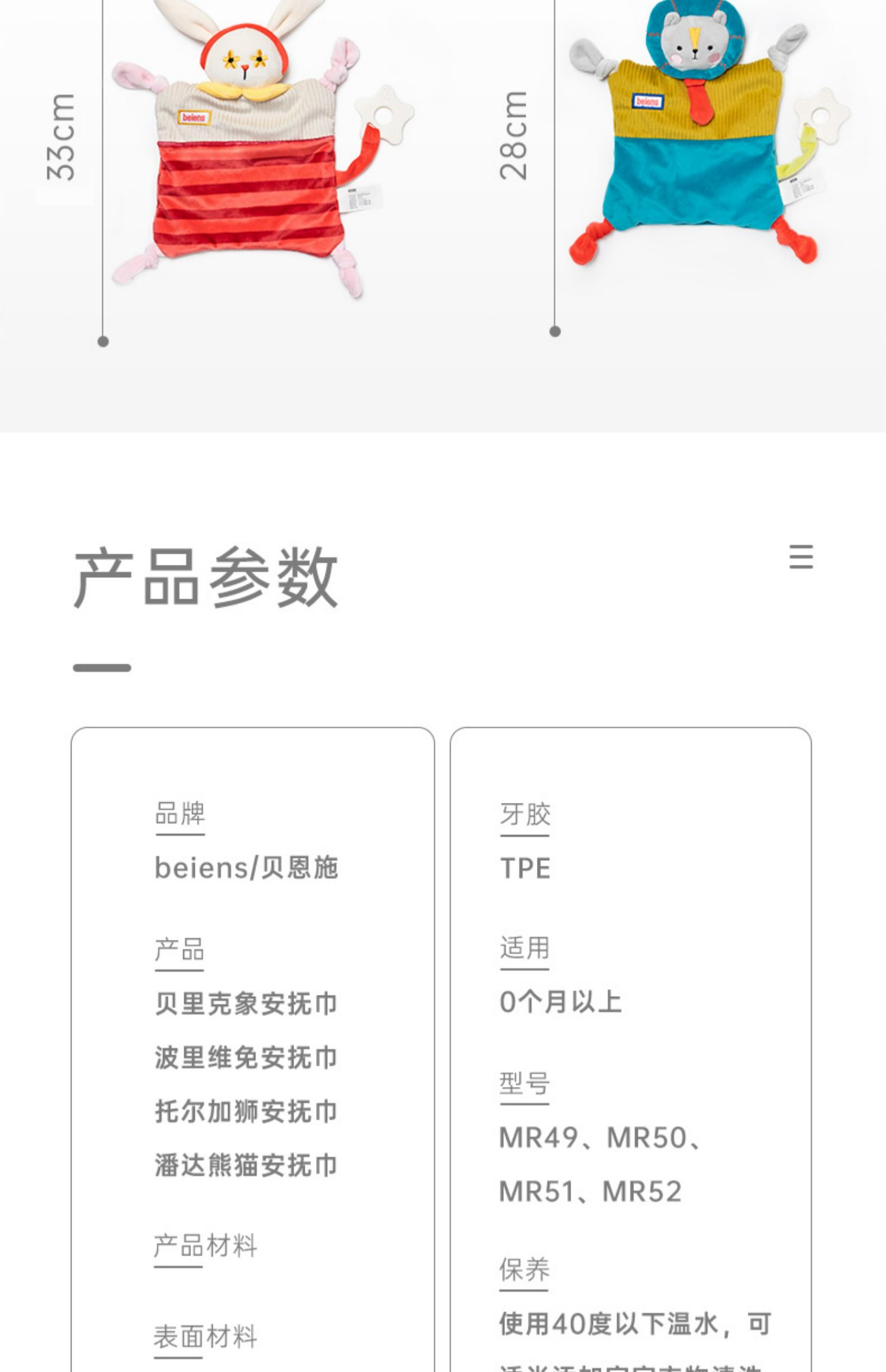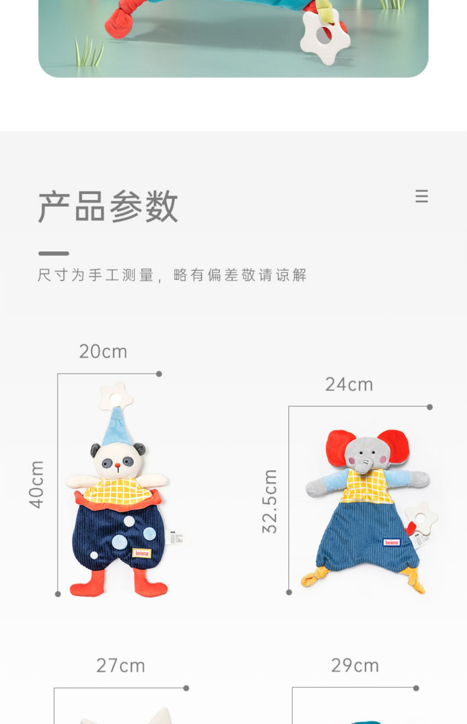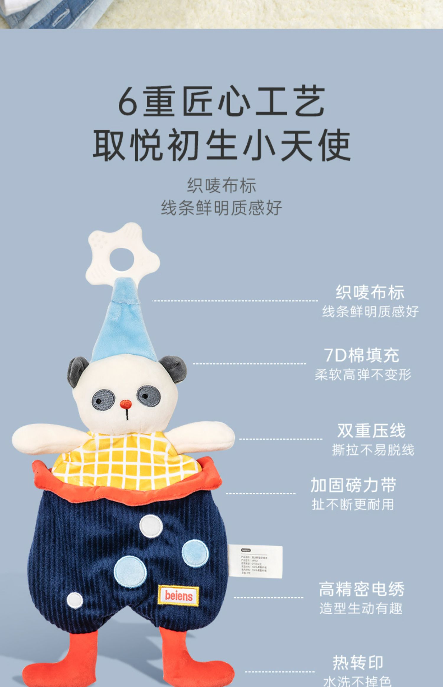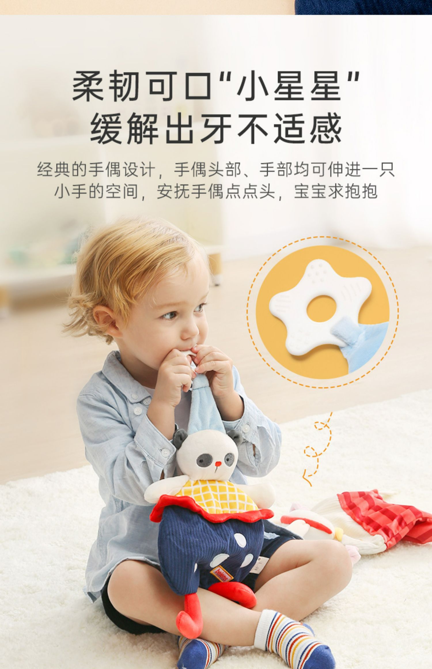 贝恩施婴儿安抚巾可入口可啃咬安抚玩偶宝宝睡眠手偶玩具睡觉神器