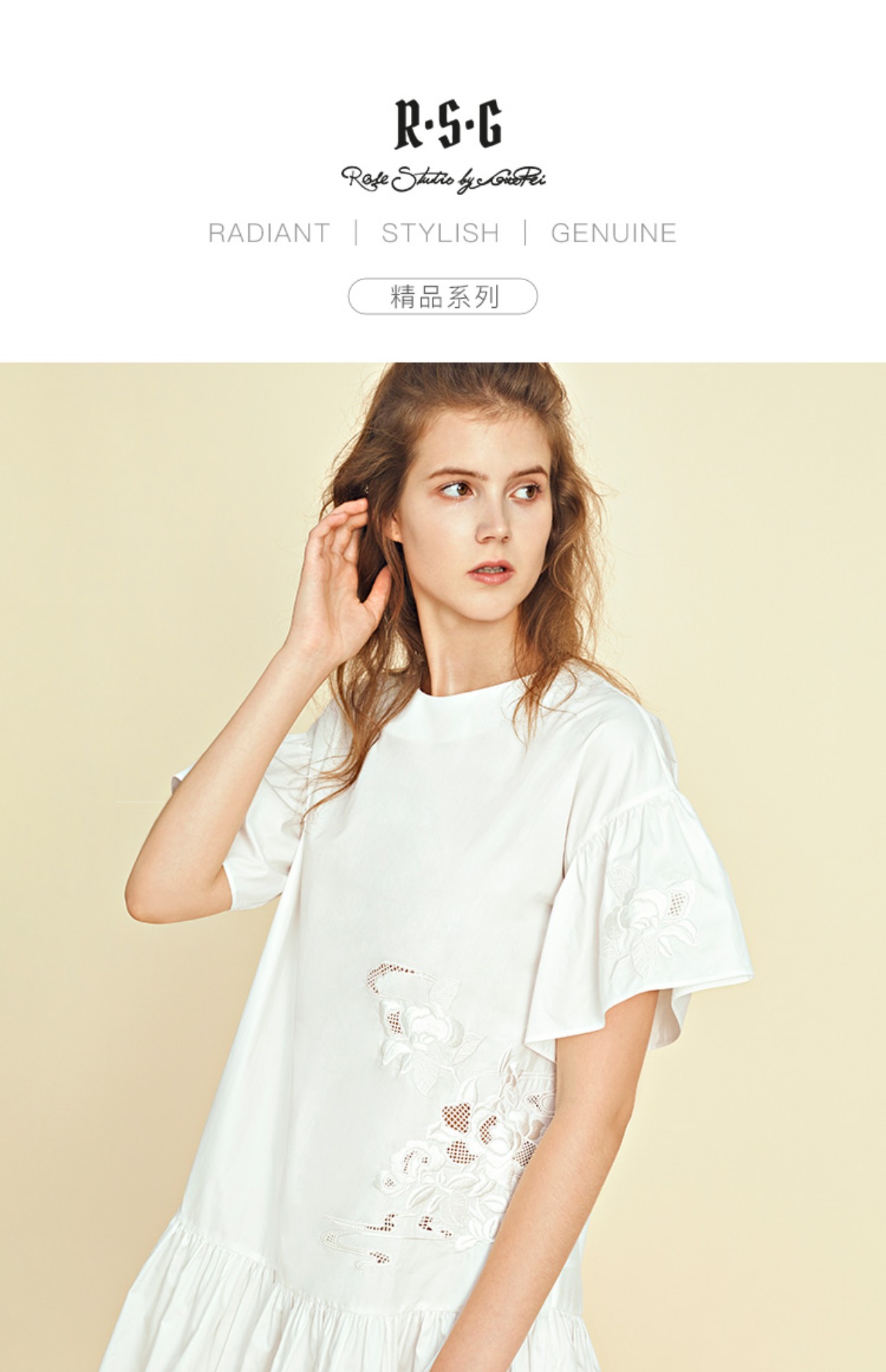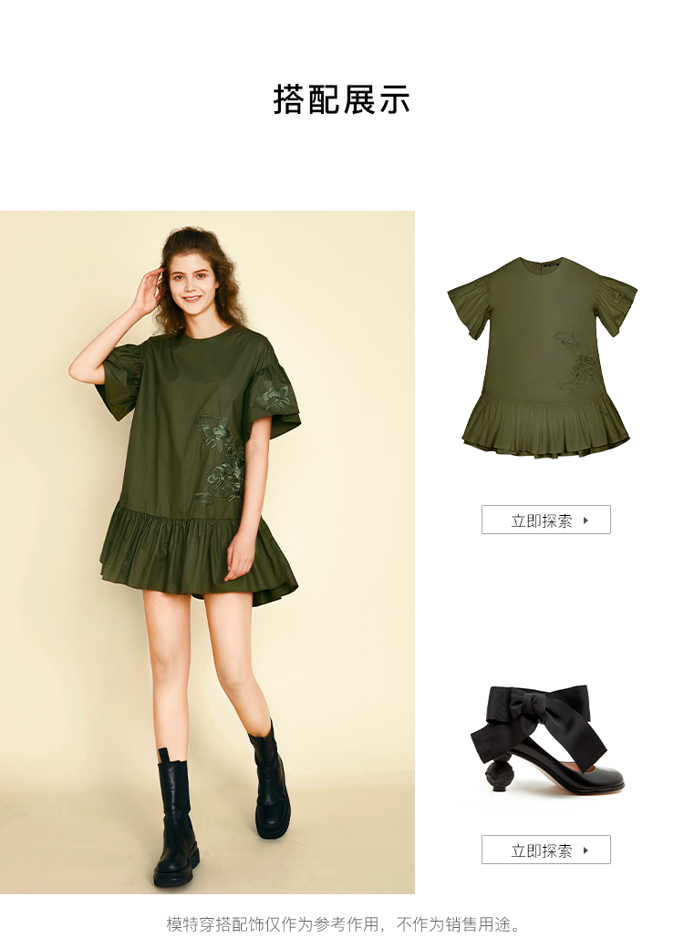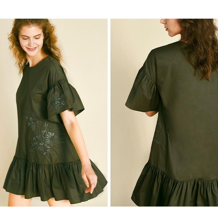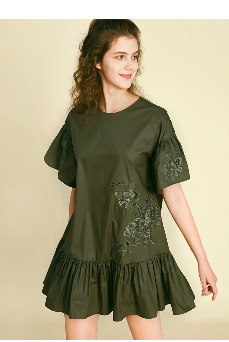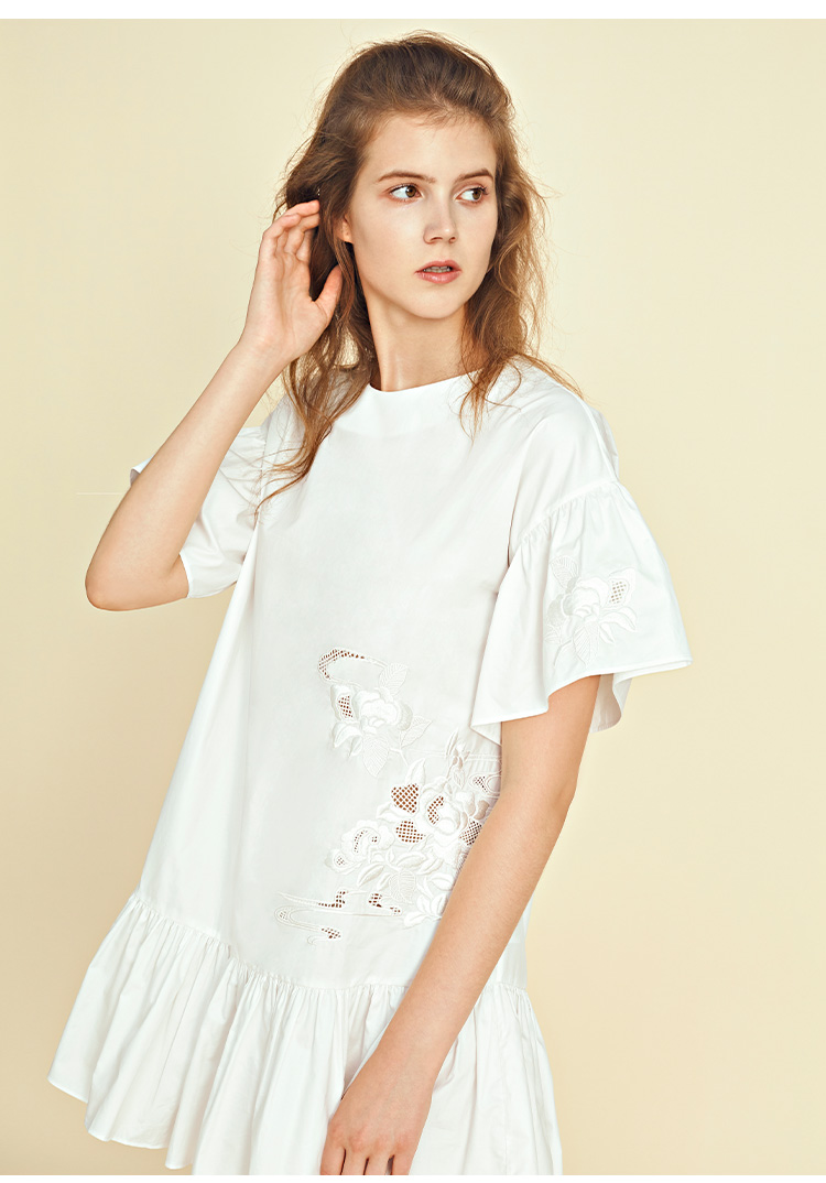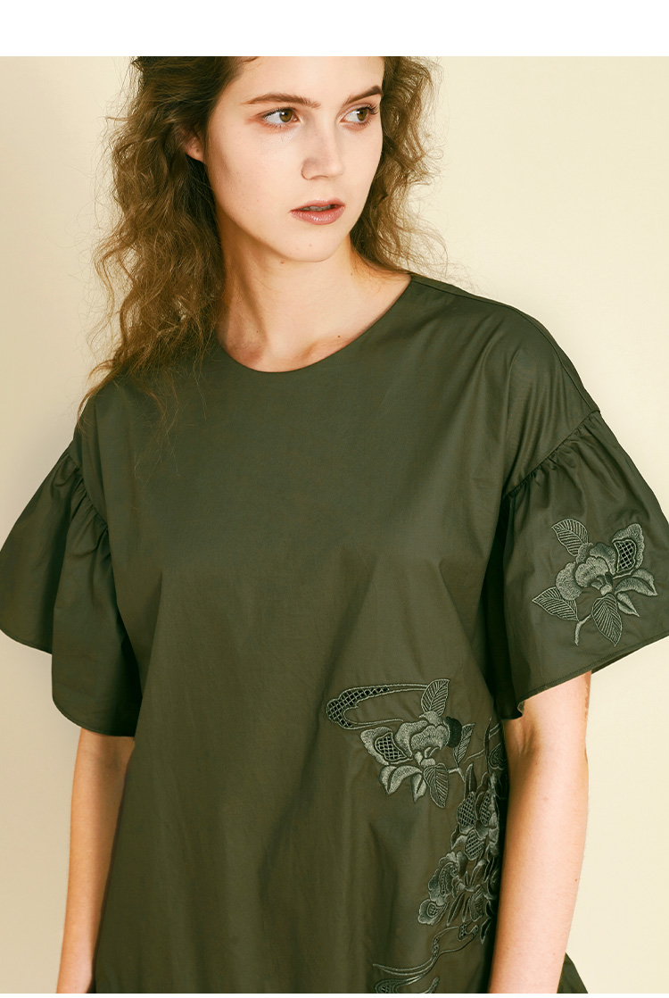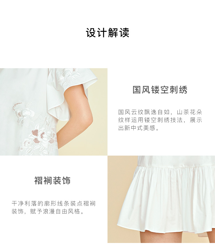 RSG郭培成衣品牌原创设计新中式国风花草刺绣纯棉短袖连衣裙