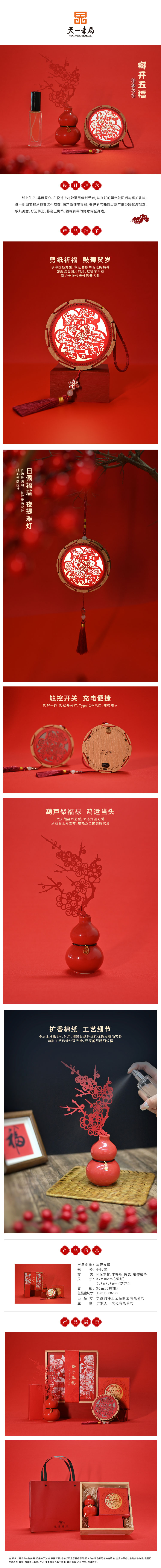 羽诗制造出品 梅开五福非遗剪纸夜灯梅花香插葫芦香熏礼盒套装