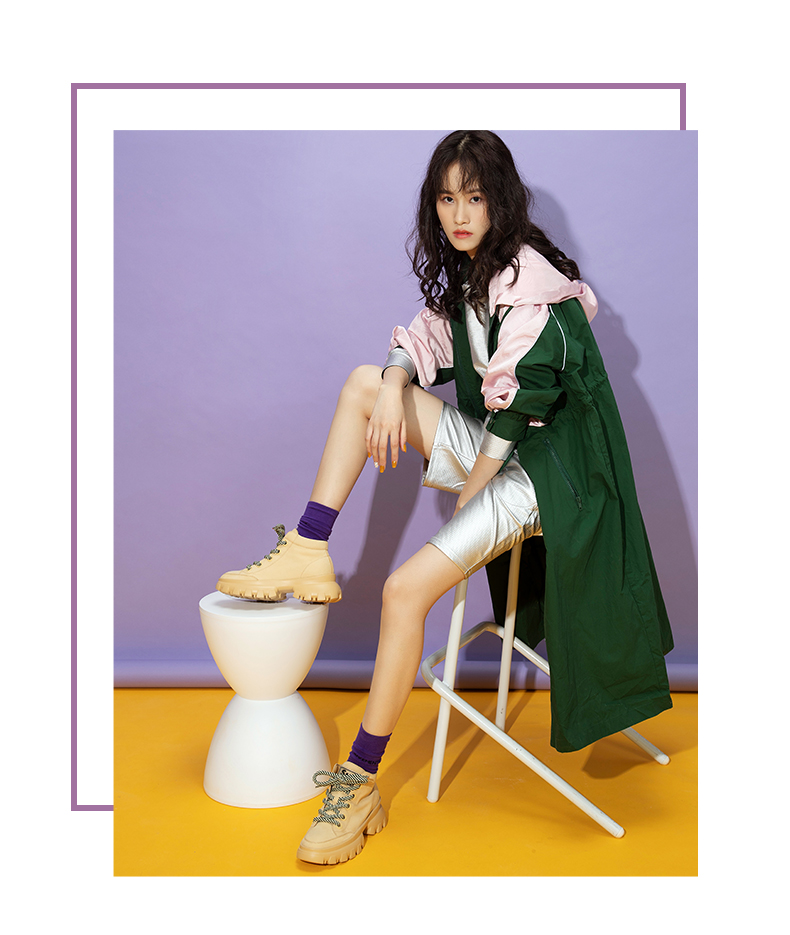 西村名物2019冬季新款马丁靴女厚底系带短靴高帮老爹鞋X29DS40261