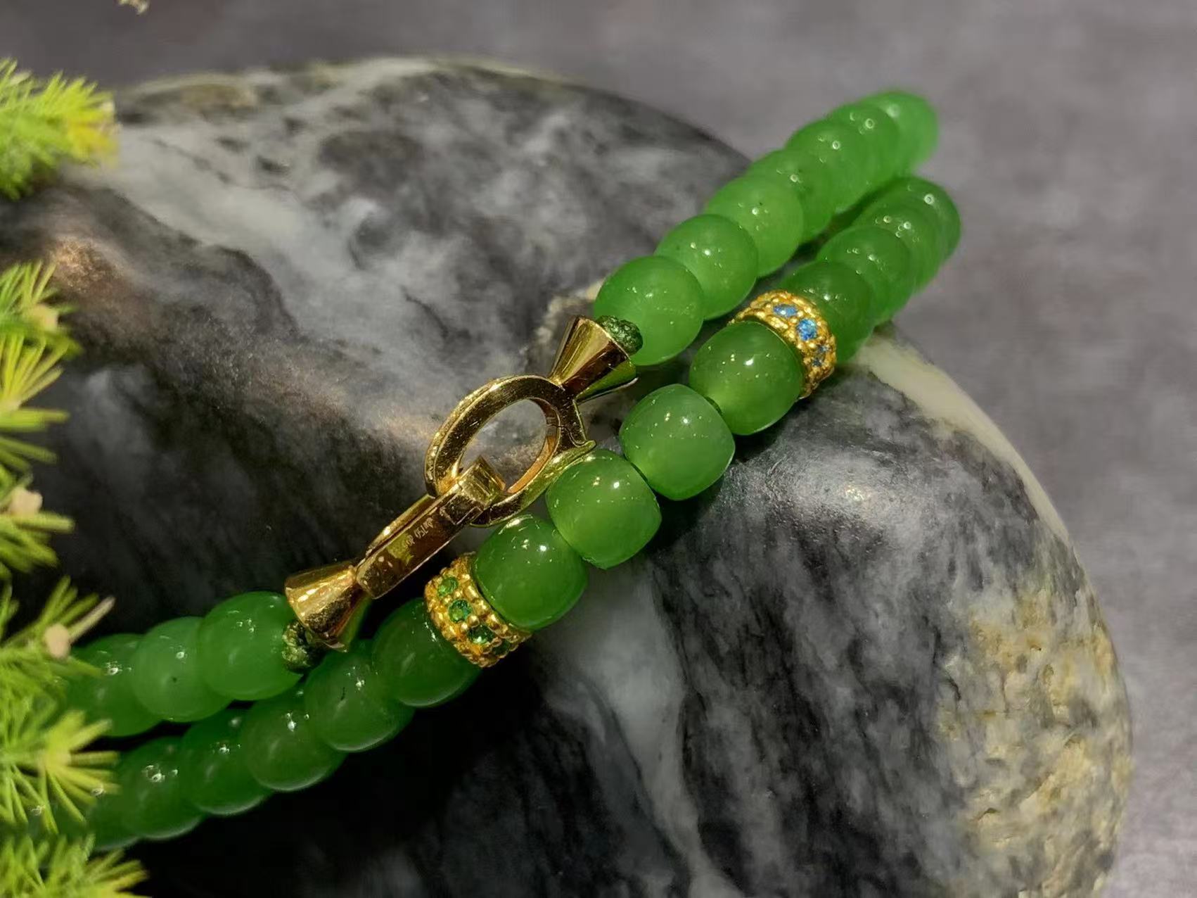 【御珠宫坊】新疆黑羊洞金镶碧玉手链