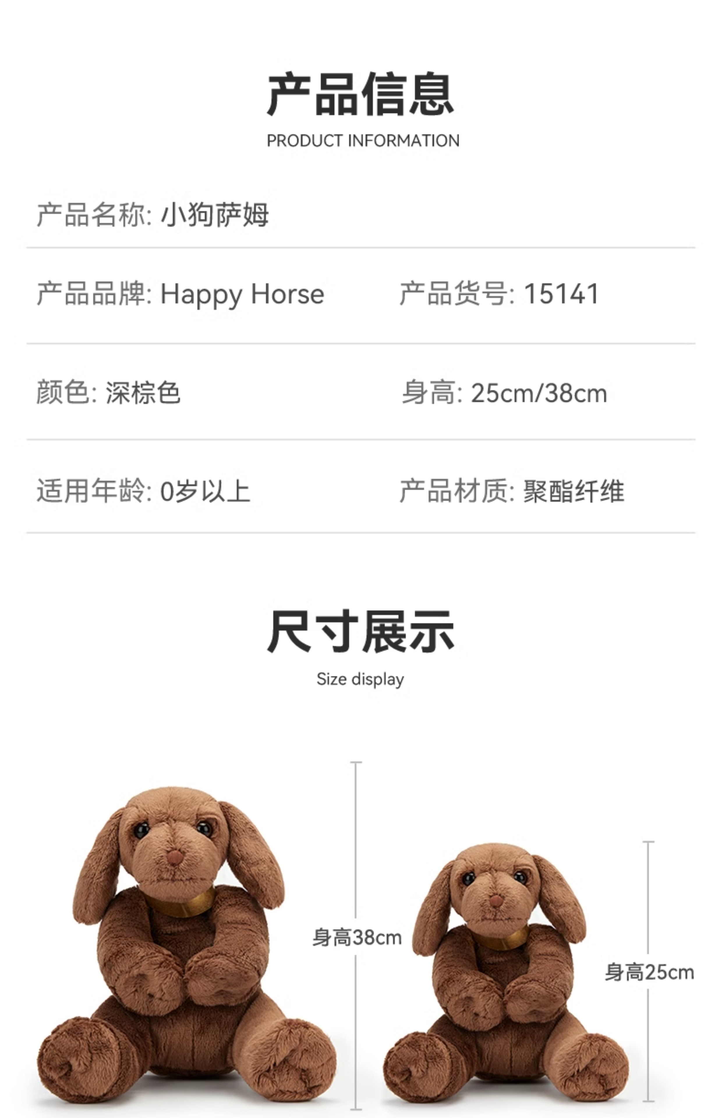 荷兰HappyHorse狗狗毛绒玩具玩偶布娃娃公仔可爱女孩抱睡生日礼物15142