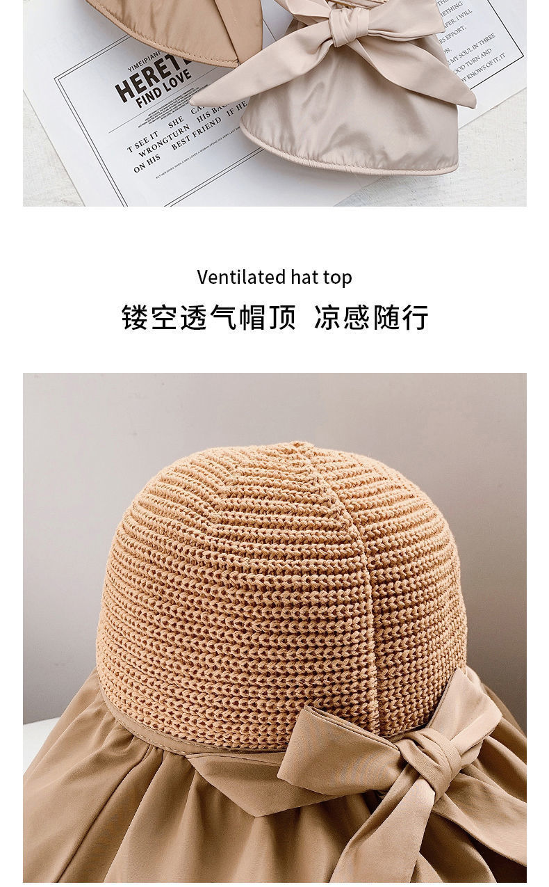 遮阳帽女夏季蝴蝶结镂空大檐遮脸帽太阳渔夫帽子sjmh38