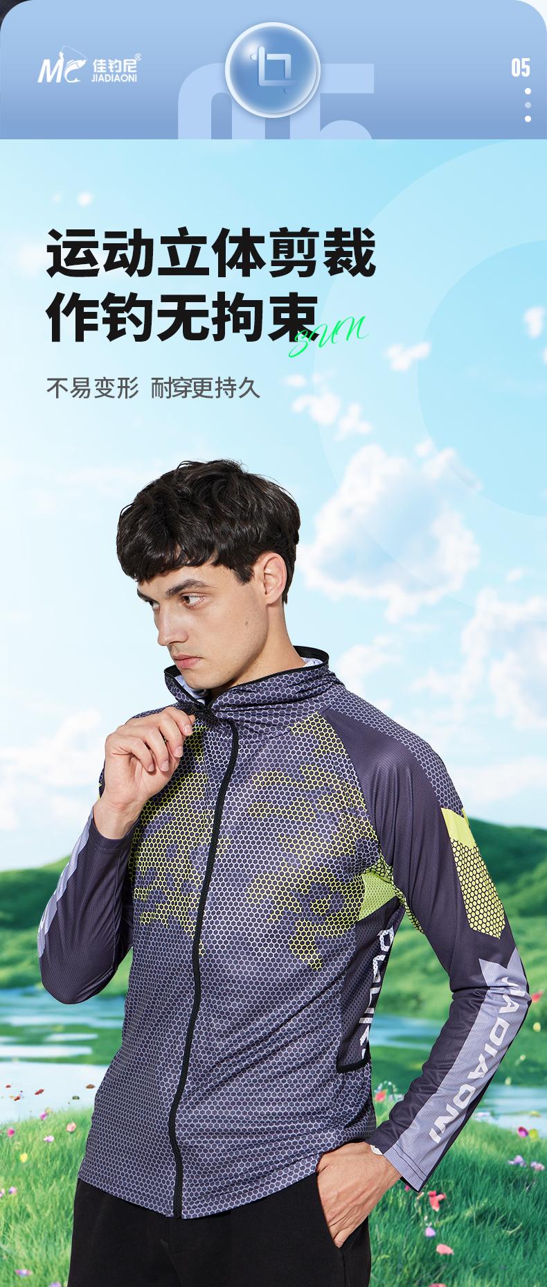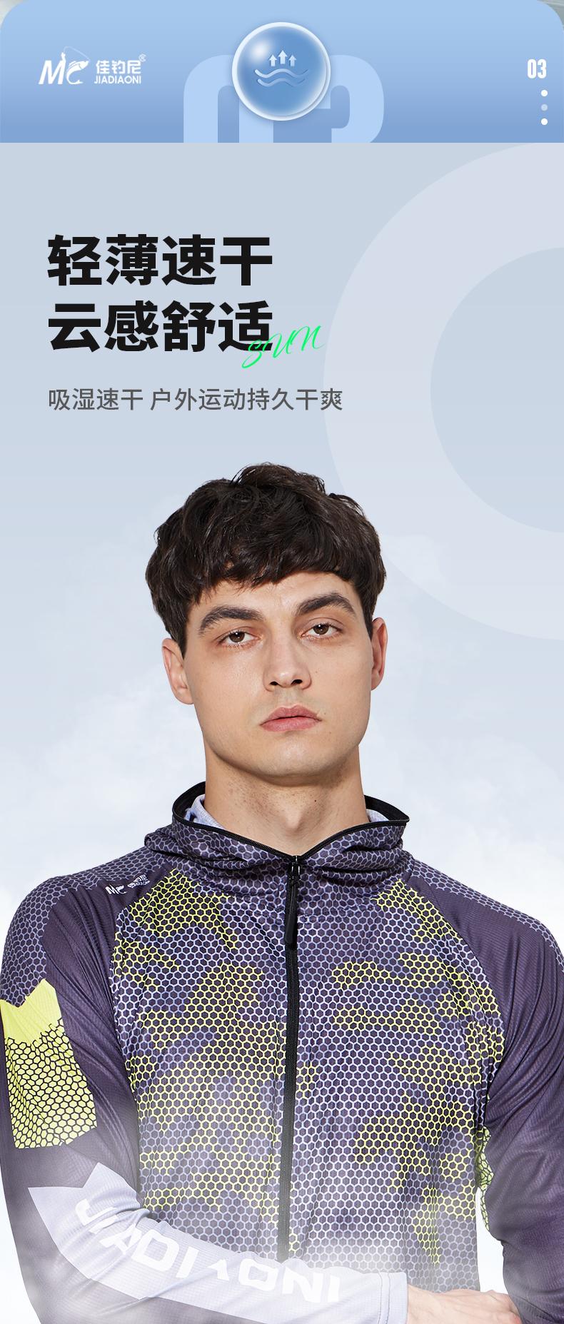 佳钓尼钓鱼服速干防晒服男连帽轻薄透气