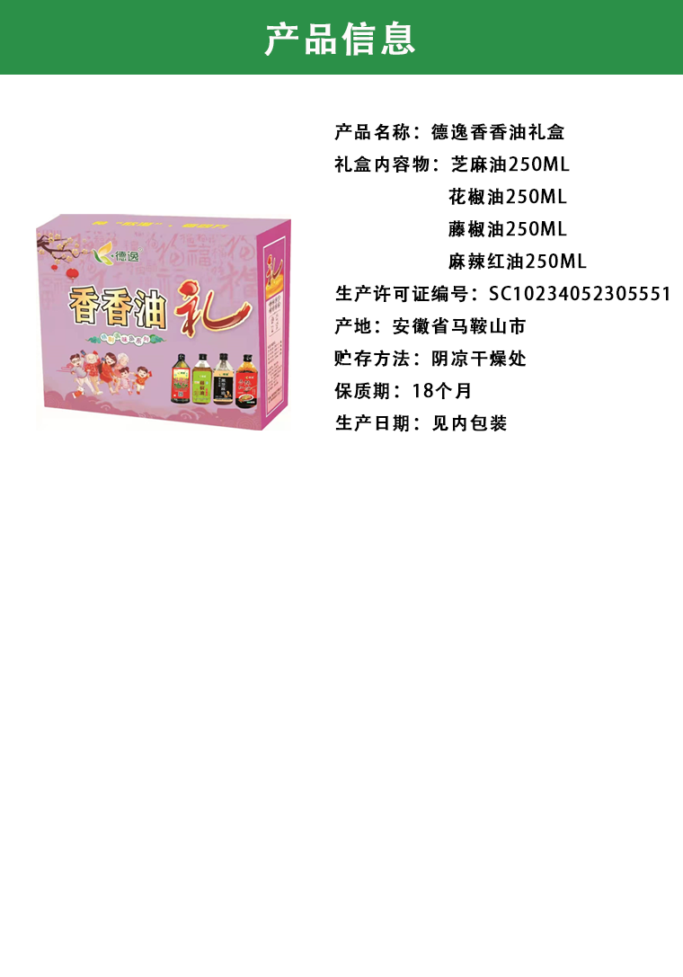 德逸香香油礼盒1000ml 【芝麻油250ml、花椒油250ml、藤椒油250ml、麻辣红油250ml】