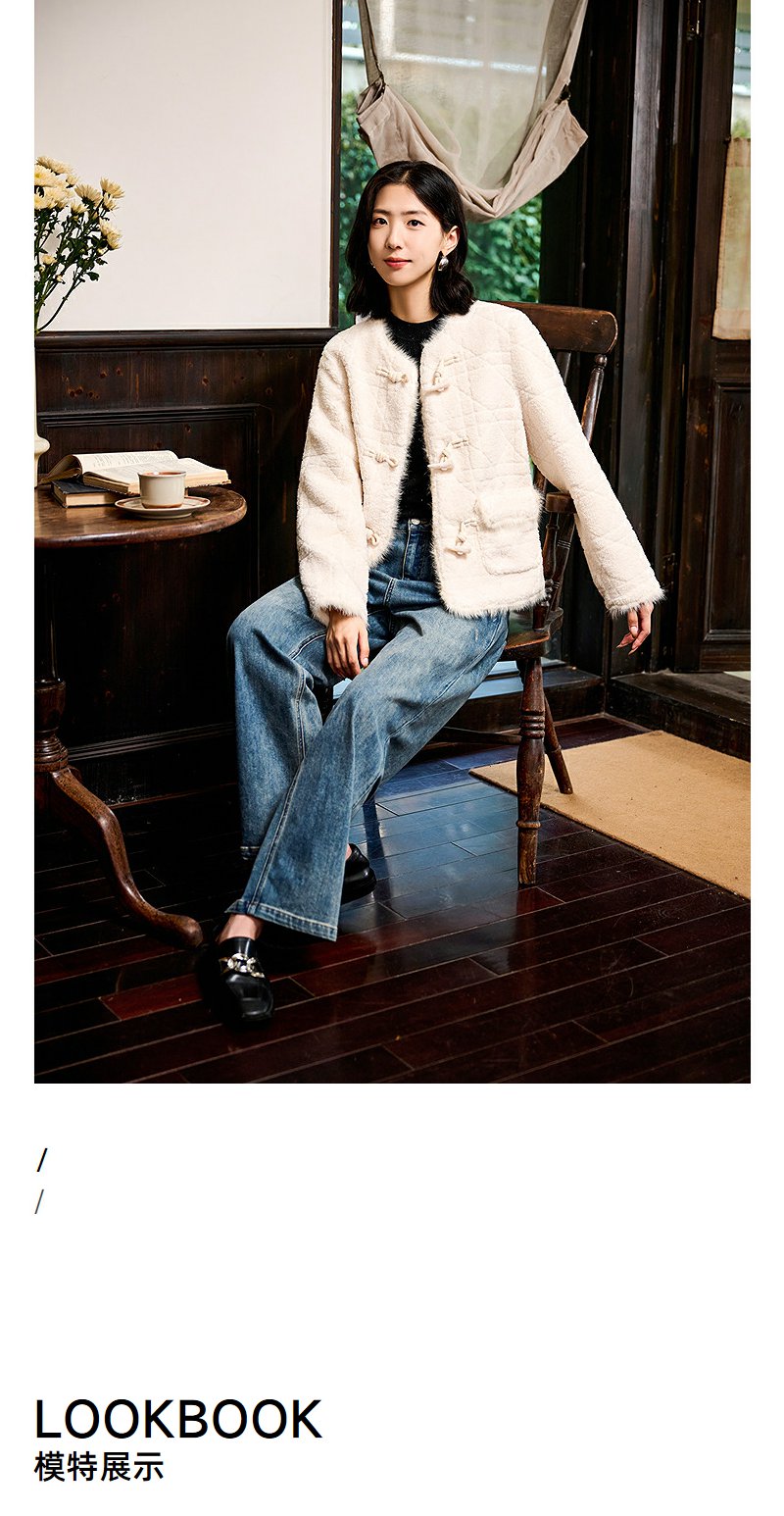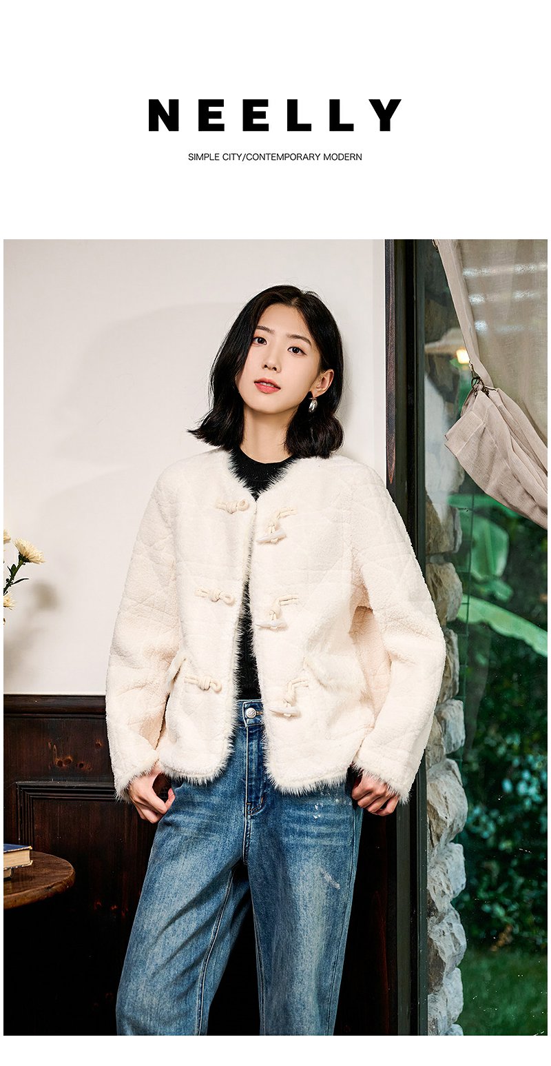 NEELLY纳俪商场同款冬季新款千金国风毛绒外套女柔软亲肤通勤上衣N24104C07744