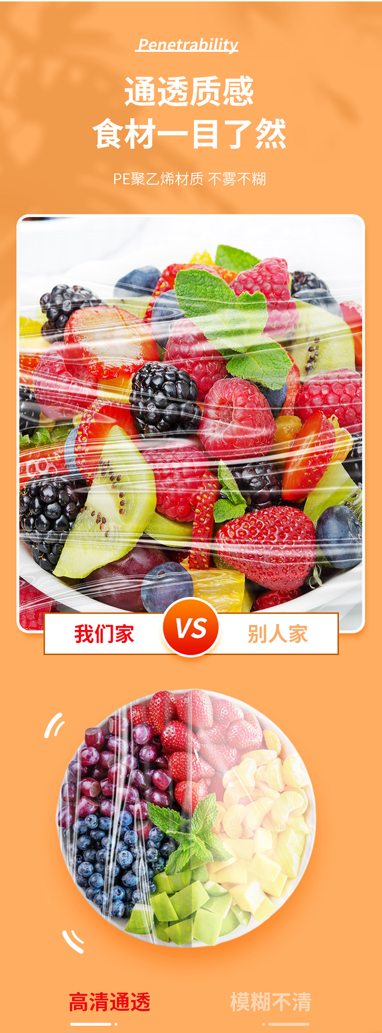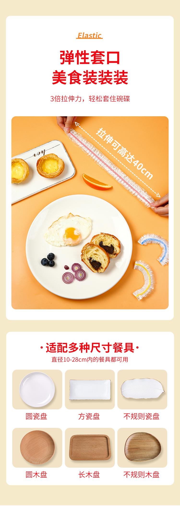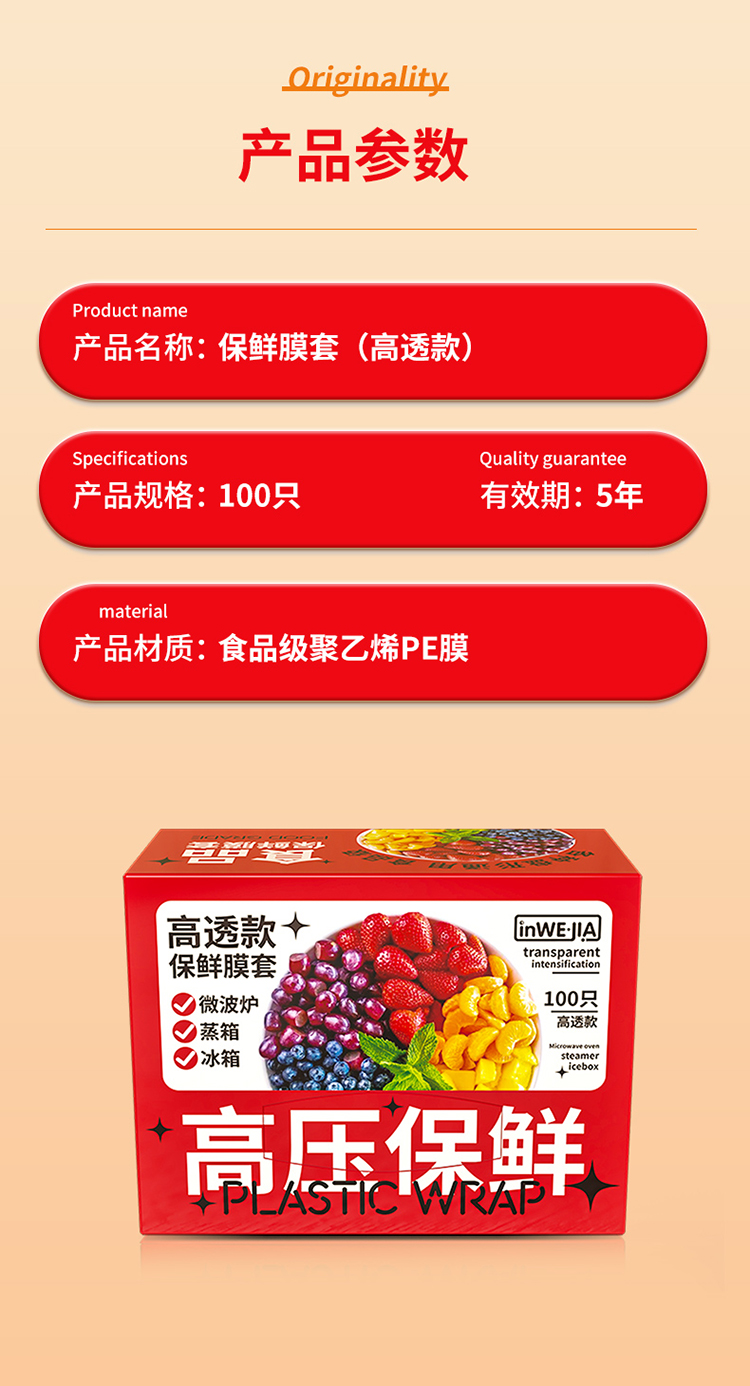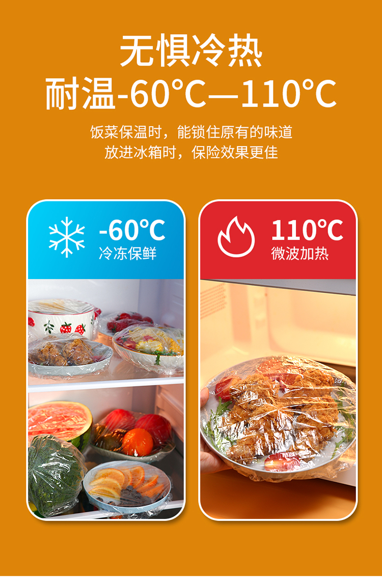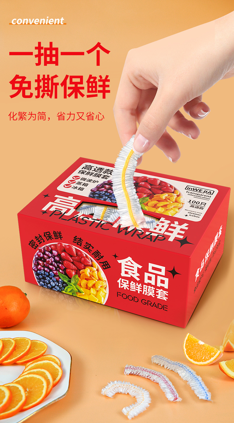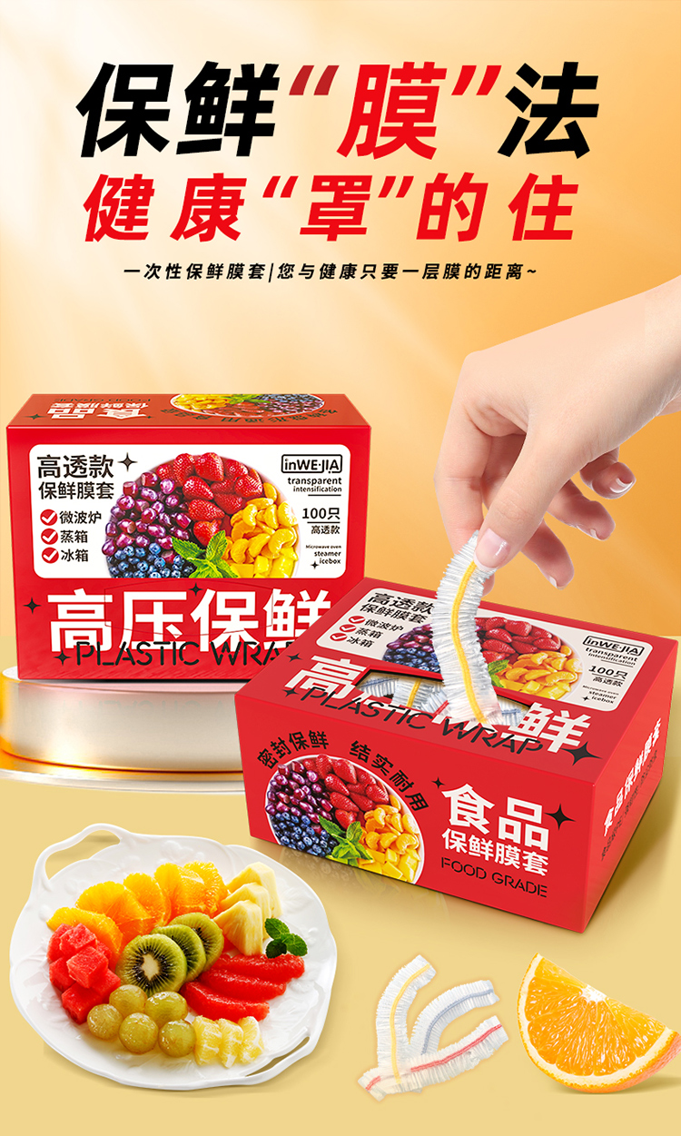 inwejia 一次性保鲜膜套100只/盒 食品级家用保鲜袋 无惧冷热 适配多种餐具