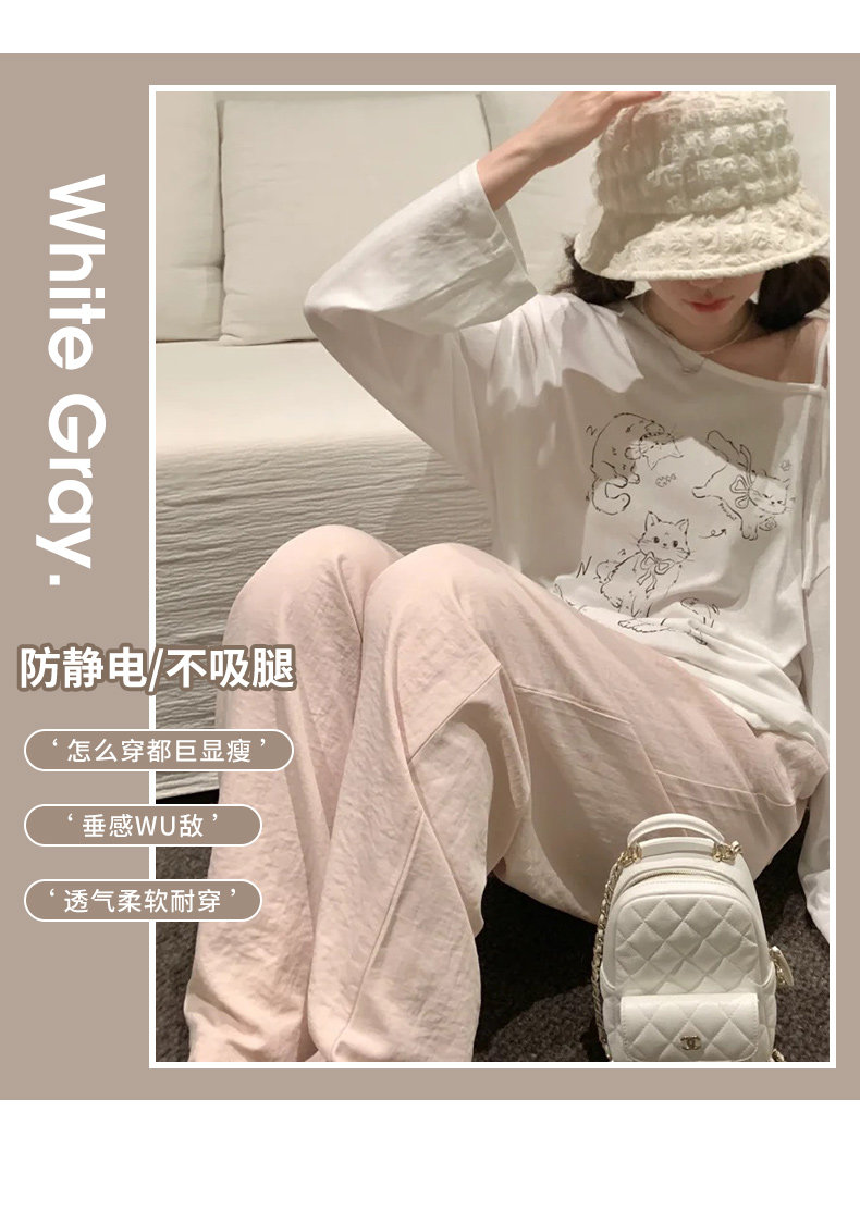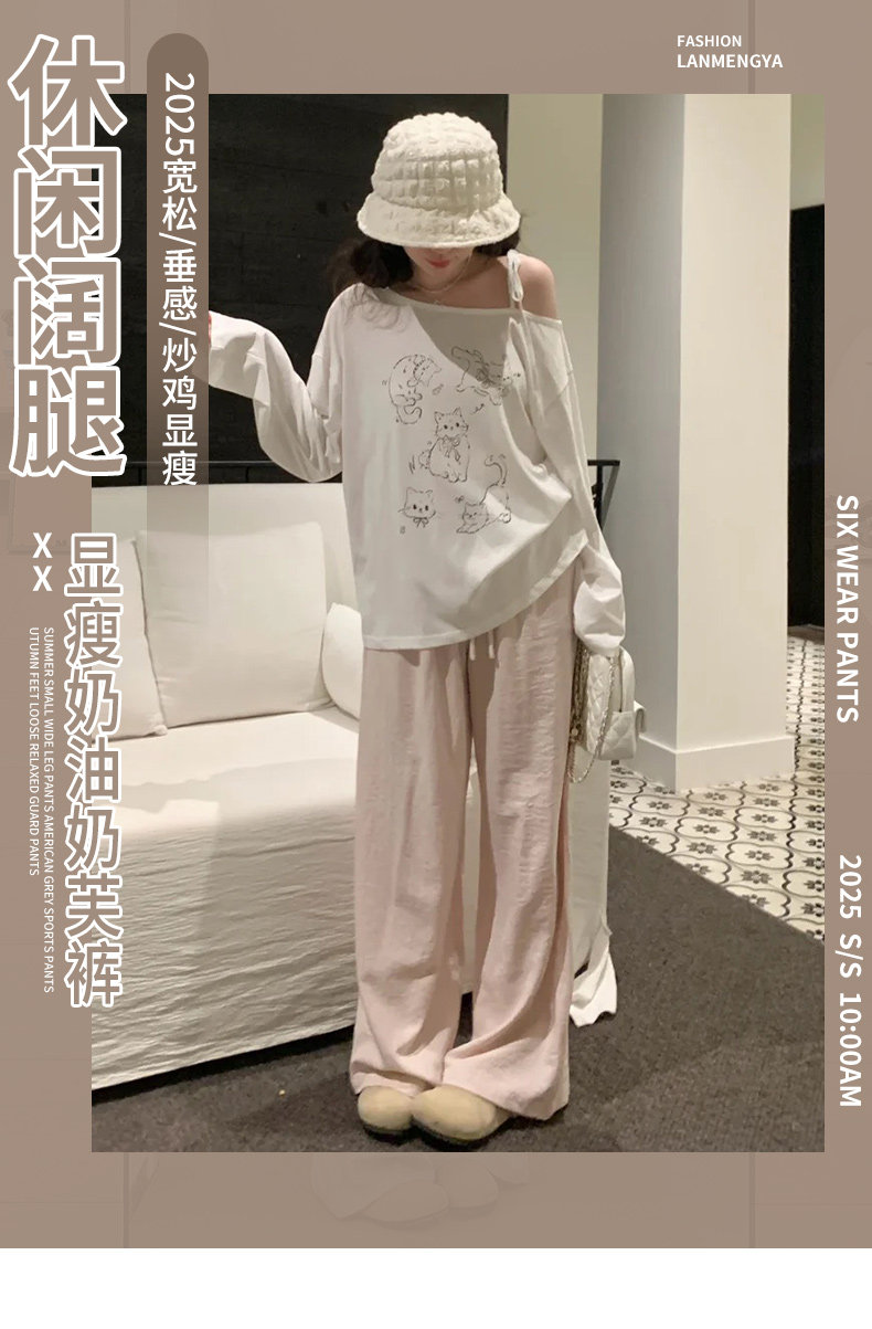 【🌱早春福利49.9/条】冰丝奶皮裤女春夏薄款高腰显瘦休闲直筒裤小个子垂感遛弯阔腿裤聚★为爱严选