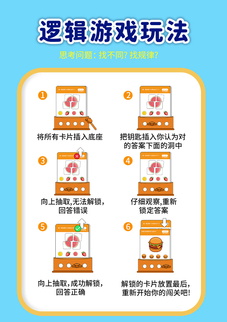 ⭕答题时将钥匙插入答案孔,如果答案正确,卡片就可以马上取出来,进入下一关