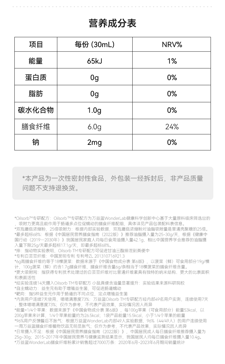 万益蓝WonderLab 液体膳食纤维解油饮3盒装