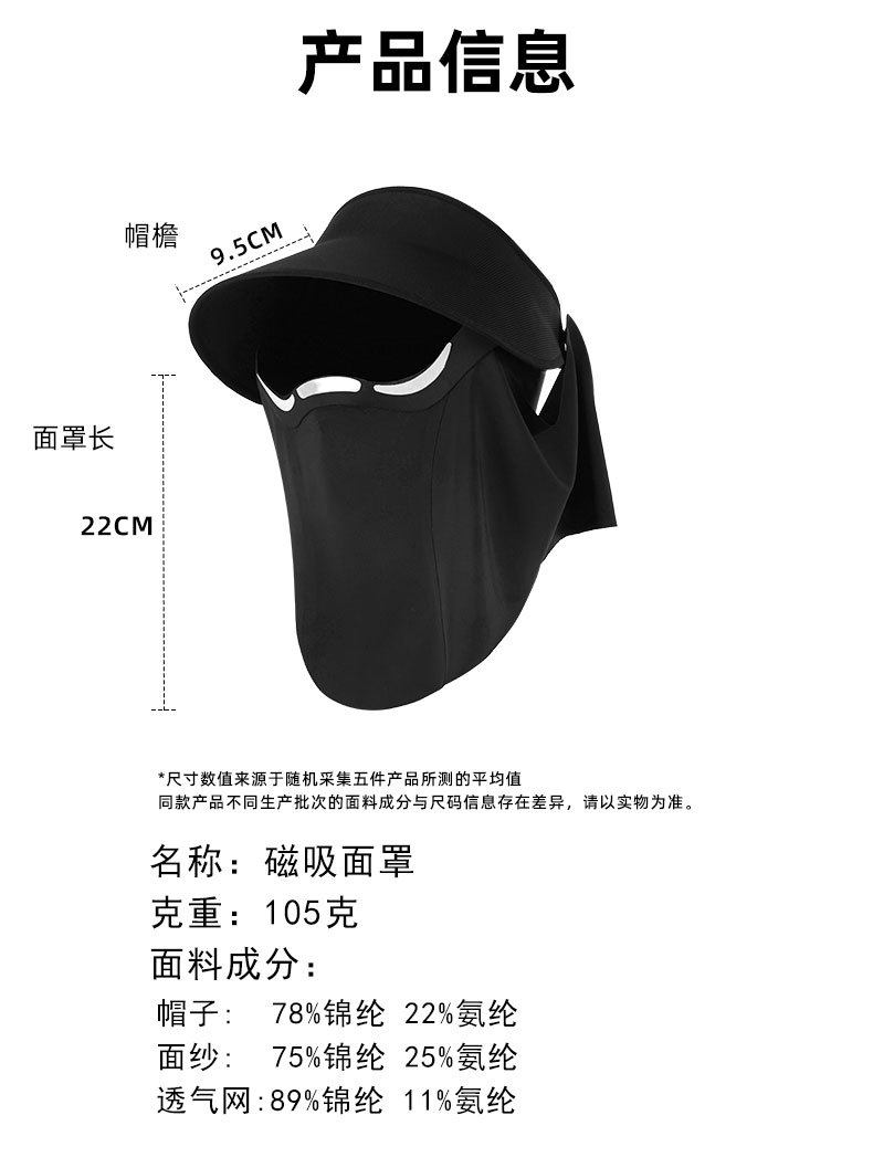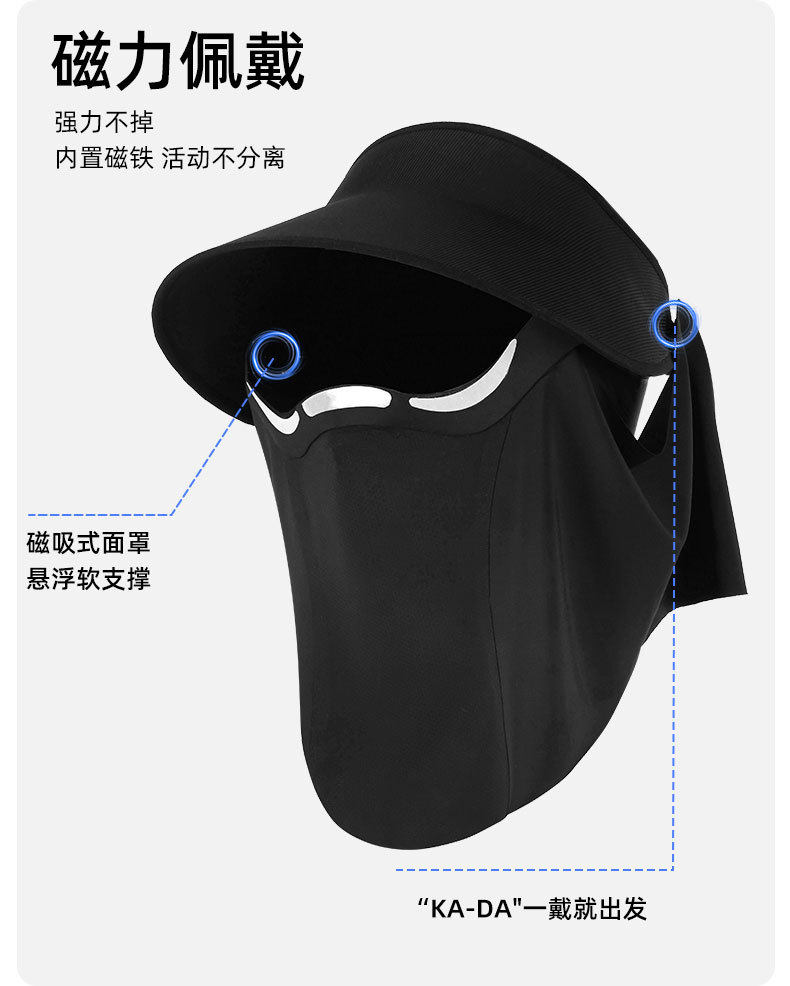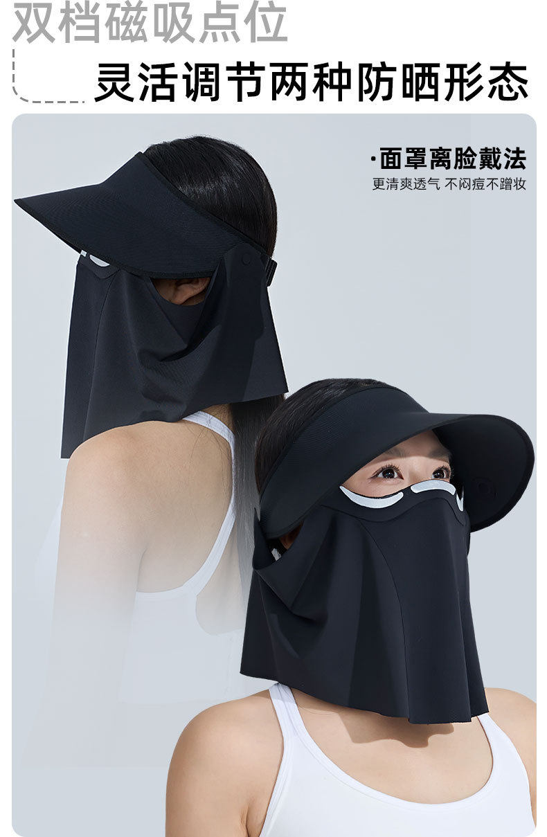 蕉下同款【磁吸面罩帽】夏季冰丝防晒磁吸面罩防晒帽防紫外线遮阳帽空顶帽太阳帽面纱女夏
