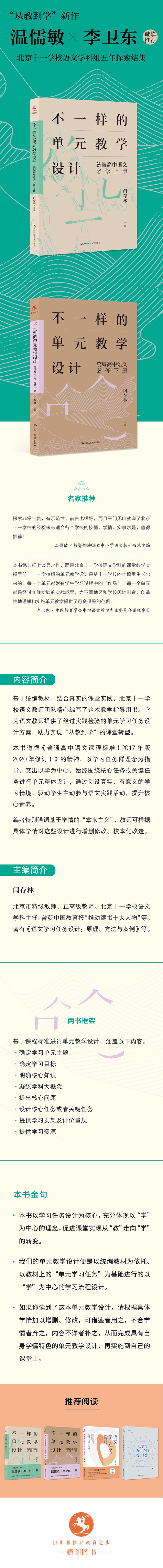 基于统编教材,结合真实的课堂实践,北京十一学校语文教师团队精心编写了这本教学指导用书。它为语文教师提供了经过实践检验的单元学习任务设计方案,助力实现“从教到学”的课堂转型。