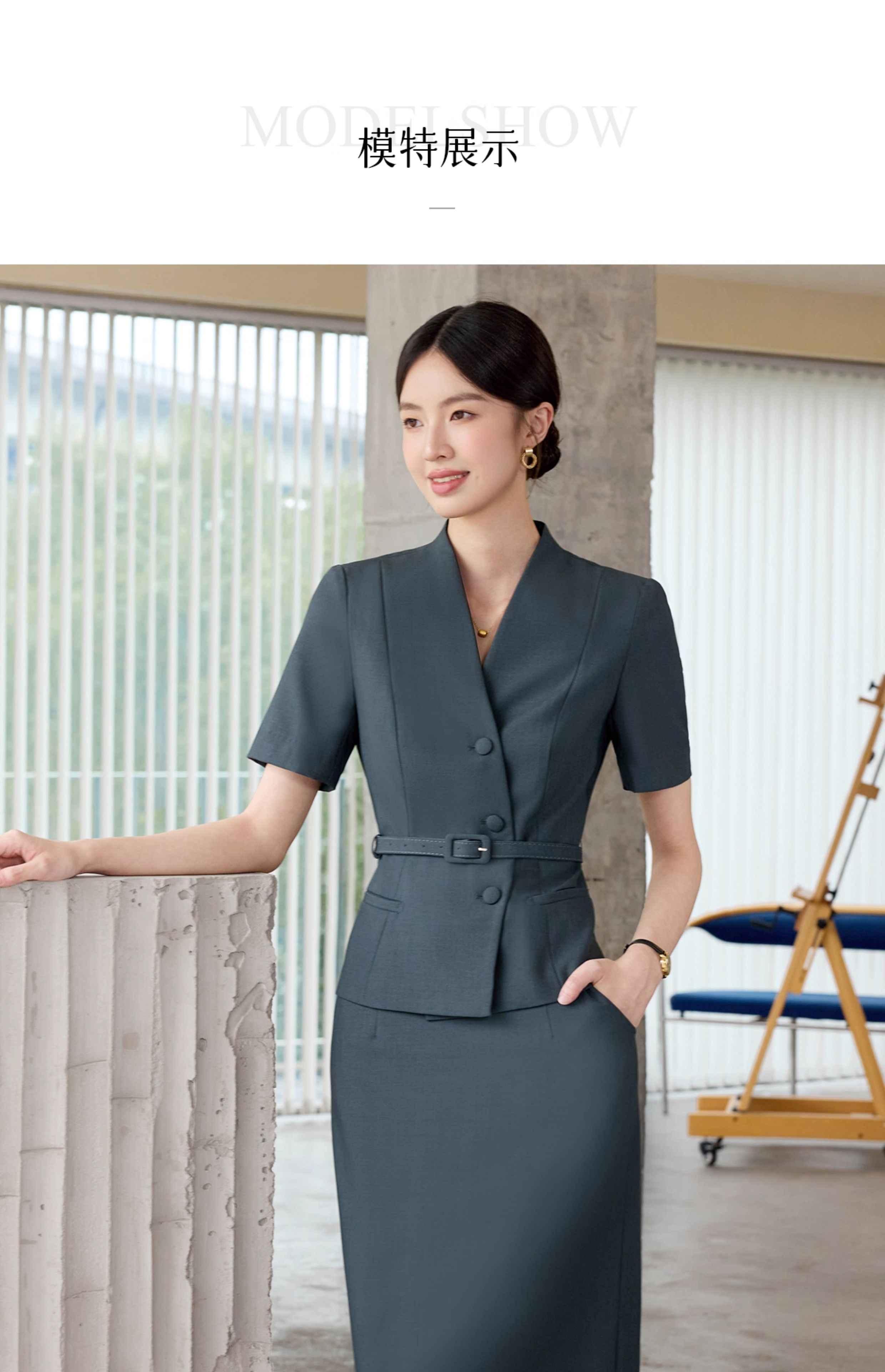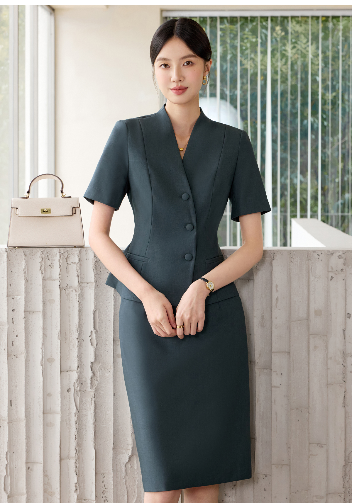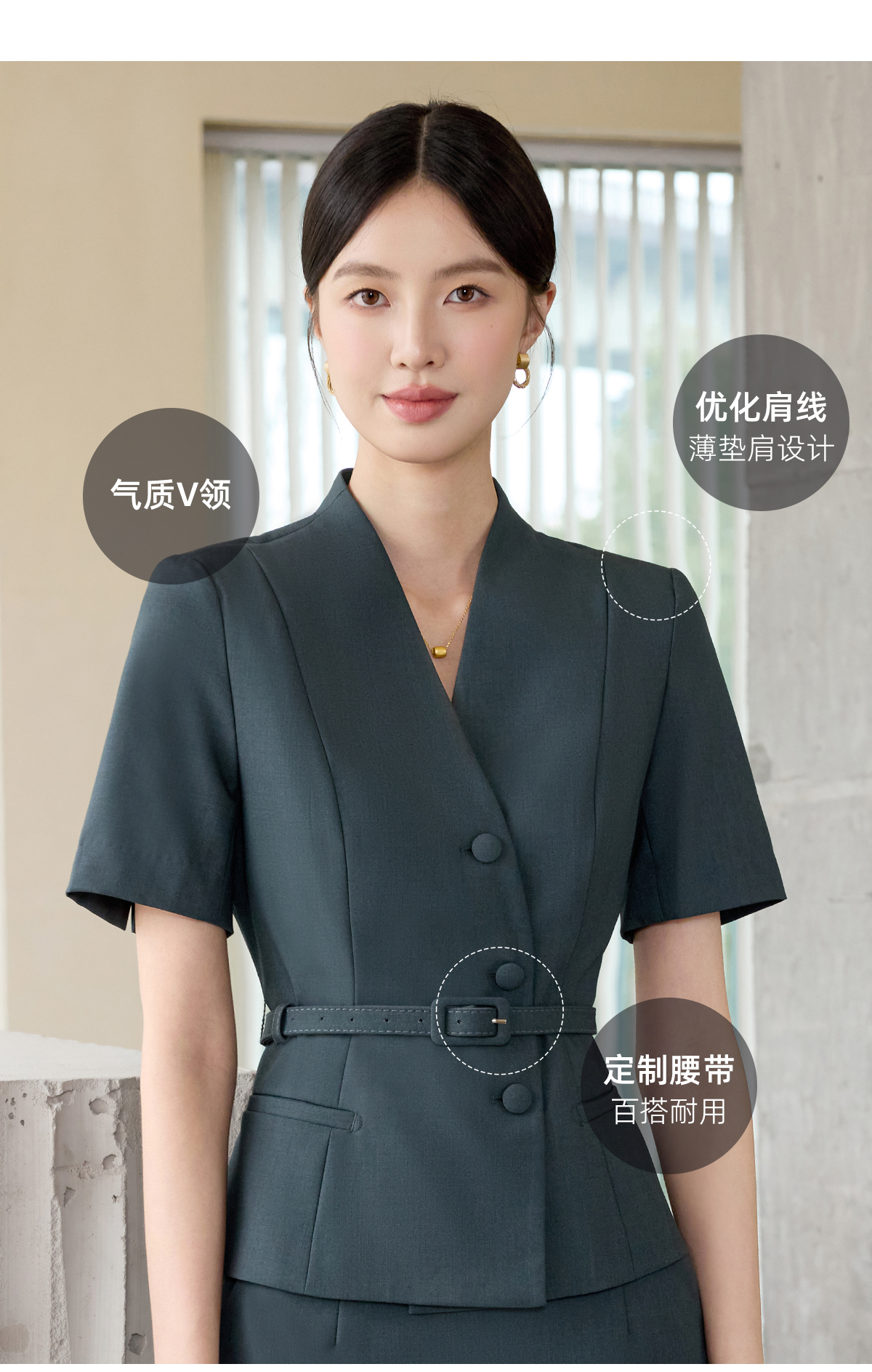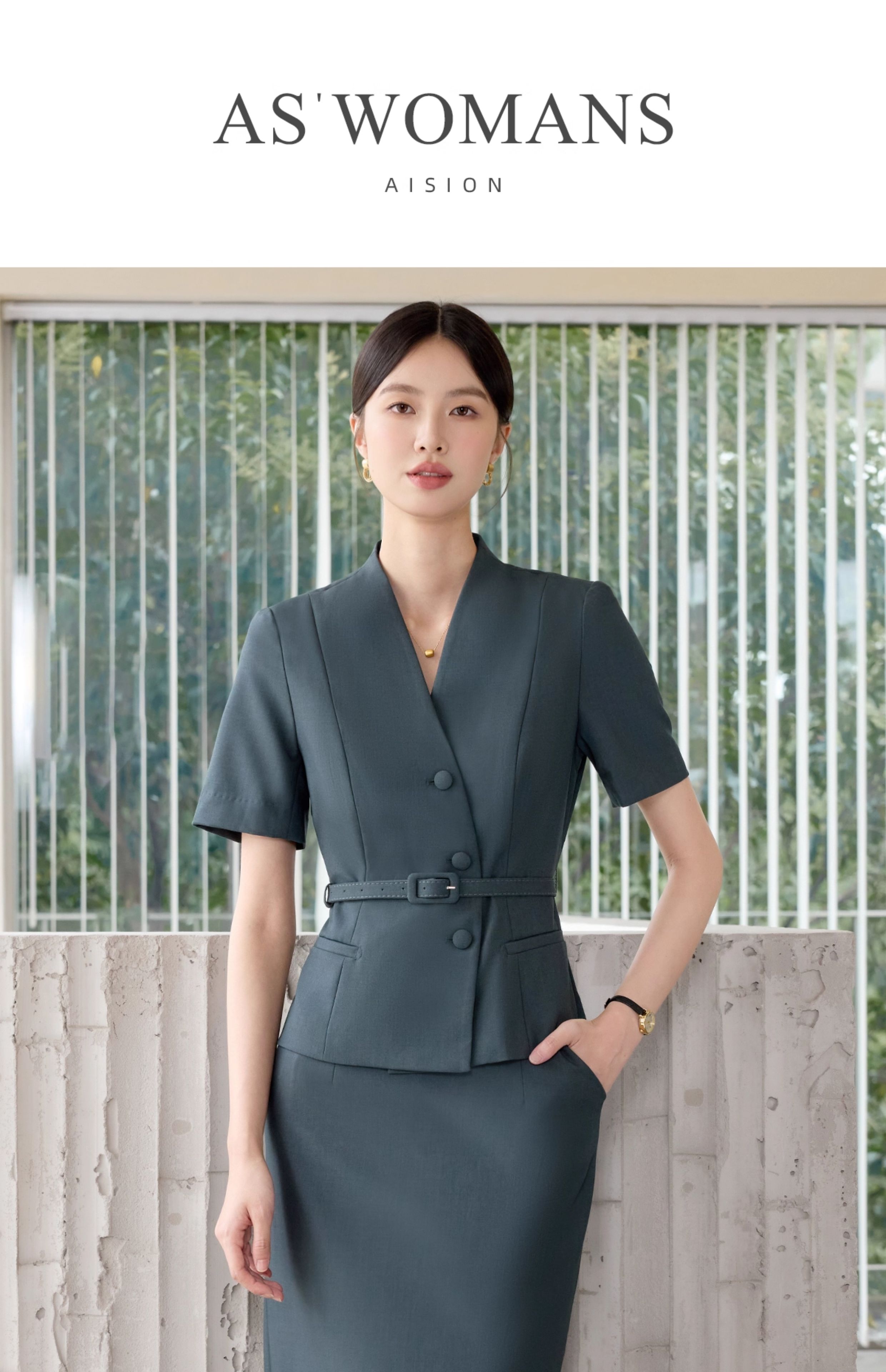 IWY/夏季短袖V领显瘦职业套裙女气质时尚正式场合接待西服正装25CS578