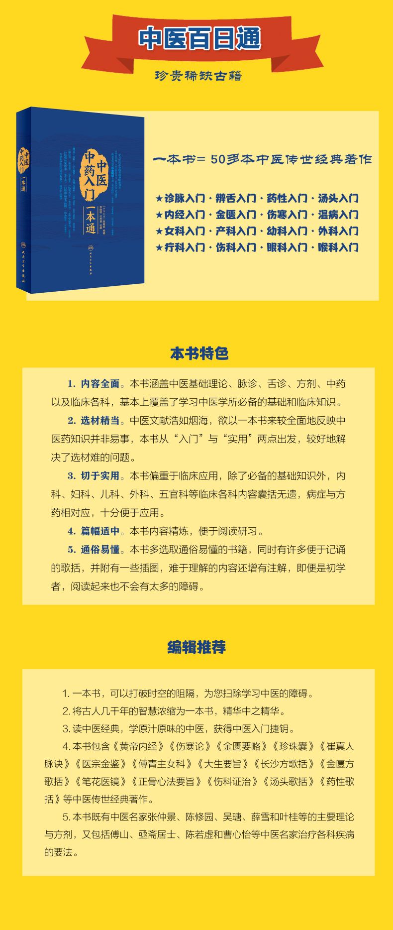 本书分为上、中、下三篇。上篇介绍了中医诊脉、辨舌、药性和汤头入门等基础理论知识,其中包括寒性、热性、温性与平性药物248种,汤头方剂200余首及各种舌苔插图120余幅。中篇介绍了《黄帝内经》《金匮要略》《伤寒论》《温病条辨》等中医经典理论知识,其中包括中医名家张仲景、陈修园、吴瑭、薛雪和叶桂等的主要理论与方剂,仅陈修园的《金匮方歌括》和《长沙方歌括》中的方剂就达300余首。下篇介绍了妇科、产科、外科、疗科、伤科、眼科和喉科等中医临床应用入门知识,包括傅山、亟斋居士、陈若虚和曹心怡等中医名家治疗各科疾病的主要理论与方剂。根据临床需要,作者对原书进行了部分修改,增加了《食鉴本草》《药症忌宜》等内容。本书内容丰富,深入浅出,可供中医师、中药师、中医院校学生及中医爱好者参考阅读。
