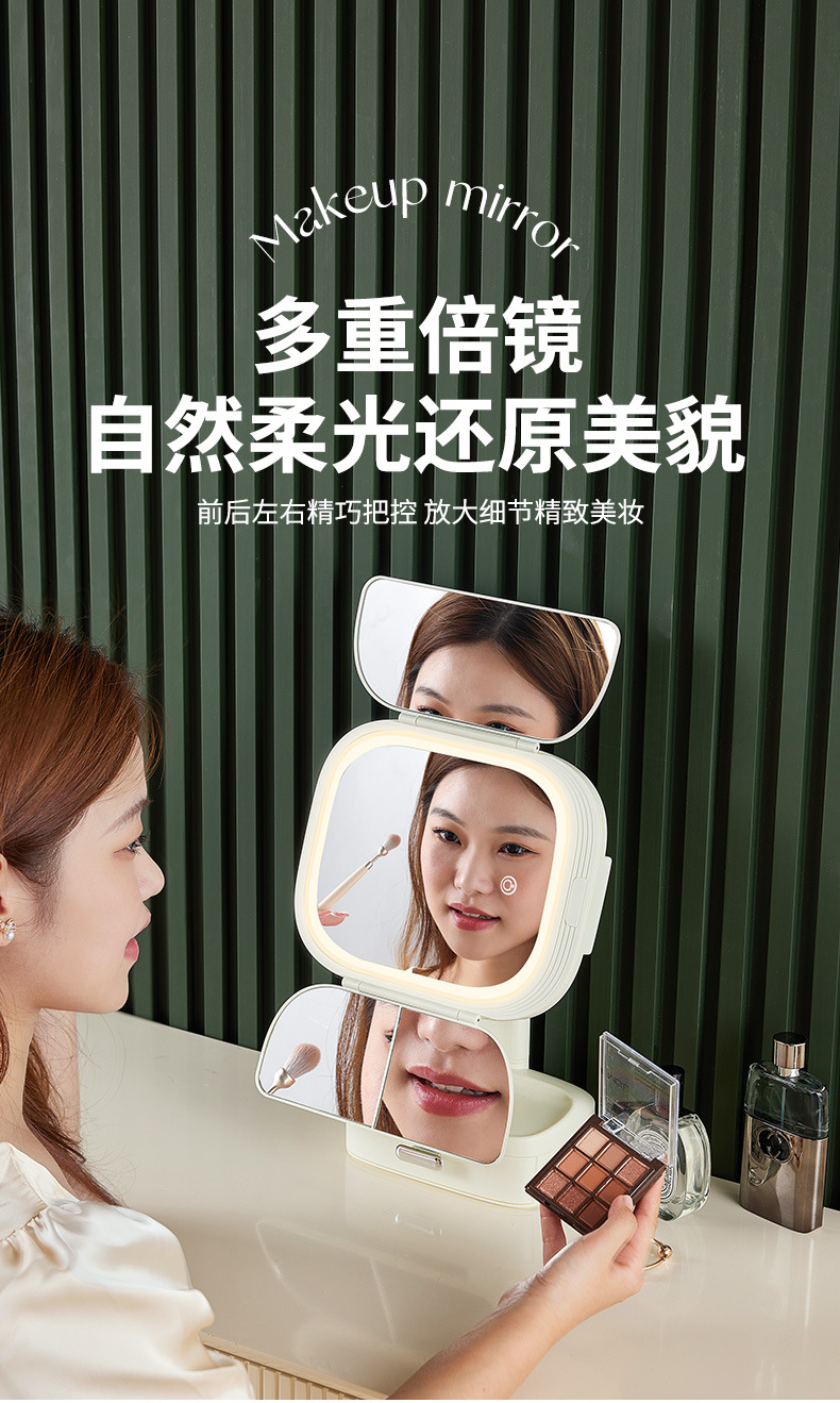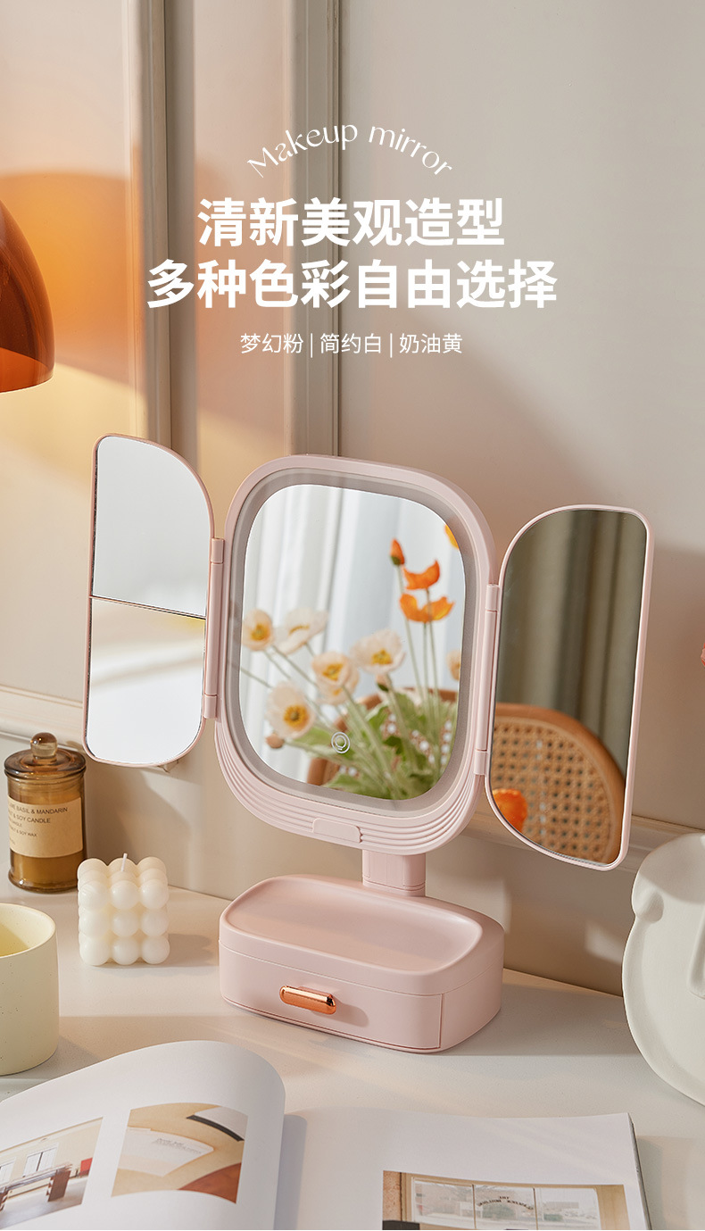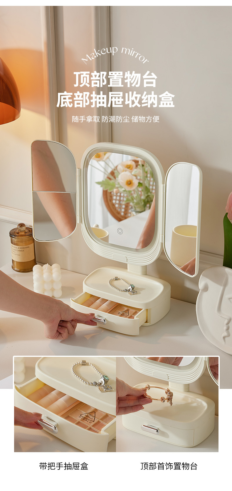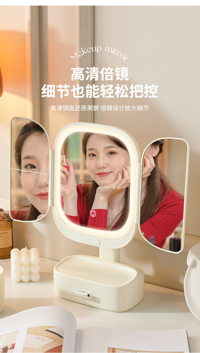 二合一【多功能桌面梳妆镜】led化妆镜带灯 台式可旋转 多功能卧室美妆镜子 化妆品首饰收纳盒