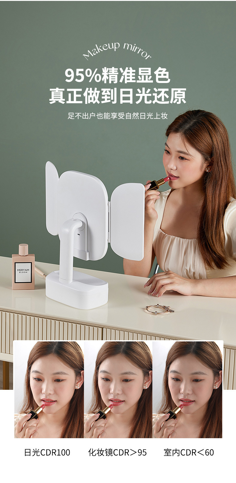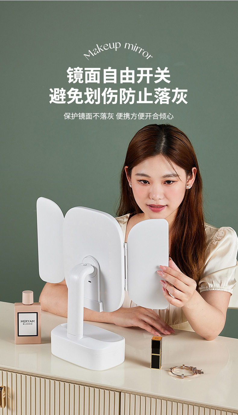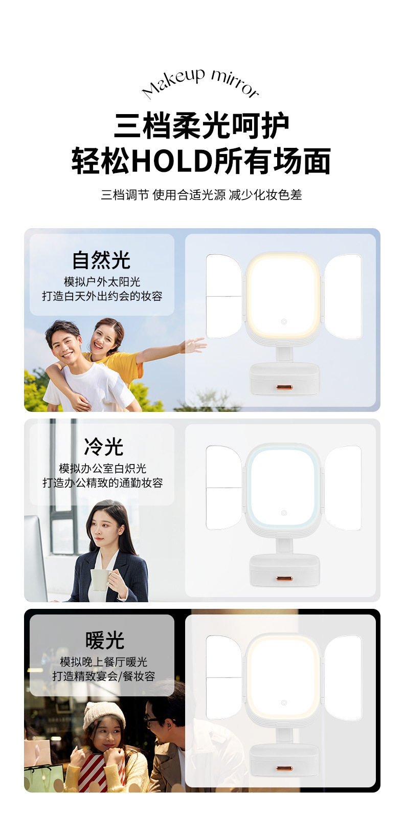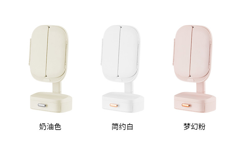 二合一【多功能桌面梳妆镜】led化妆镜带灯 台式可旋转 多功能卧室美妆镜子 化妆品首饰收纳盒
