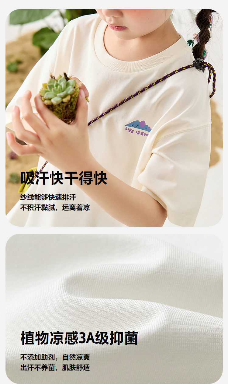迷你巴拉男女童T恤儿童凉感抑菌不闷汗萌趣短袖T