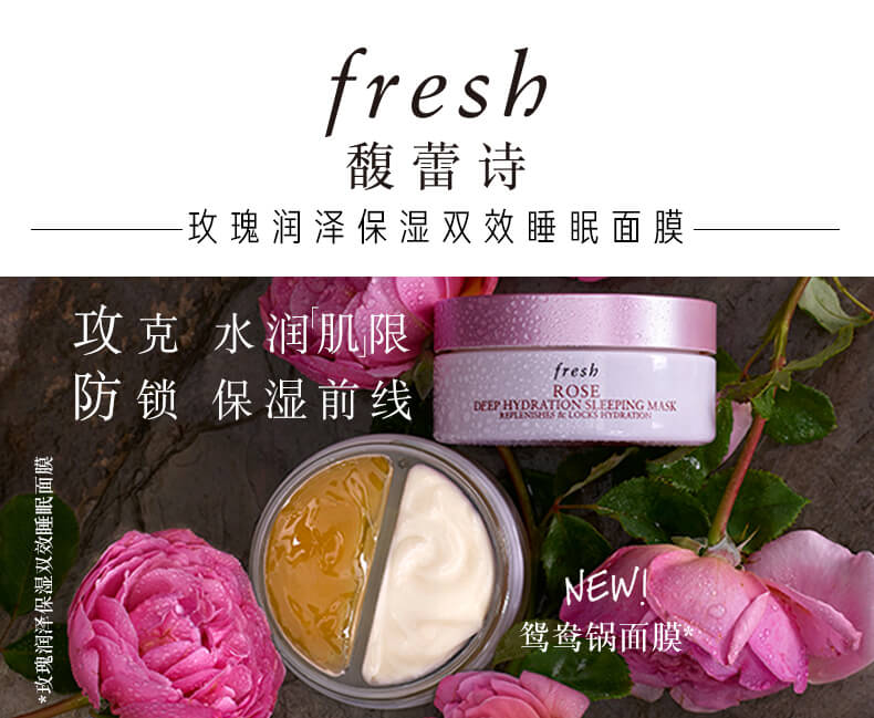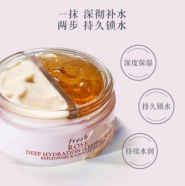 专柜 Fresh/馥蕾诗玫瑰润泽保湿双效睡眠面膜70ml 鸳鸯锅涂抹式 持续补水保湿 缓解干燥肌 舒缓肌肤