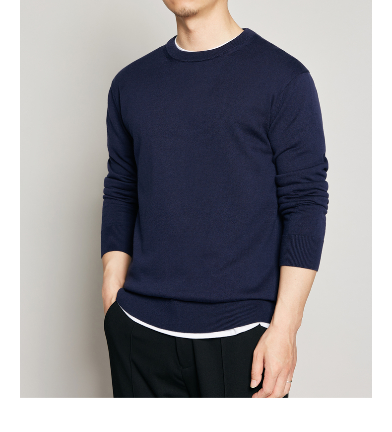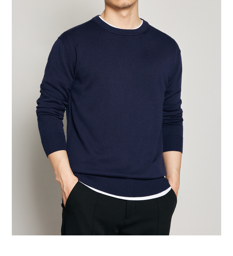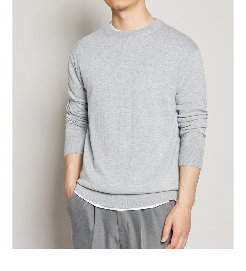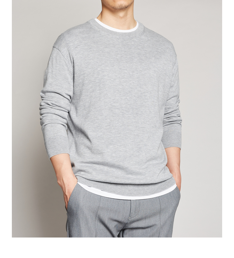 墨麦客男装2020秋季新款圆领纯色套头毛衣男士宽松针织衫外套2338