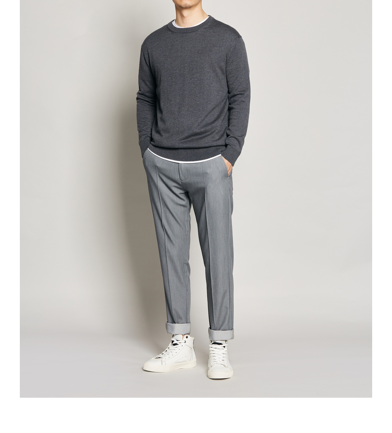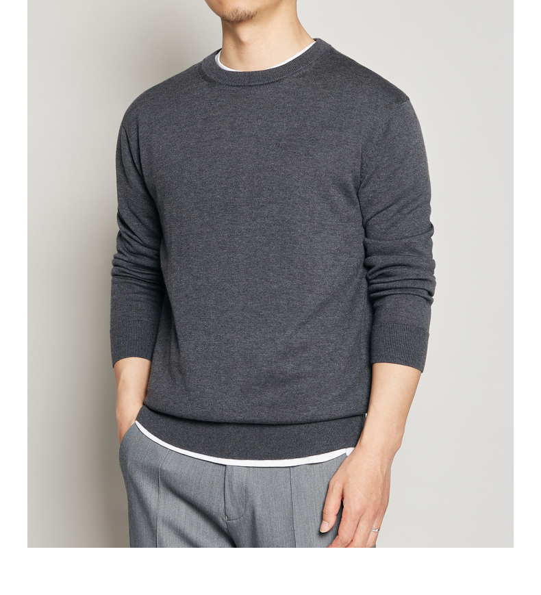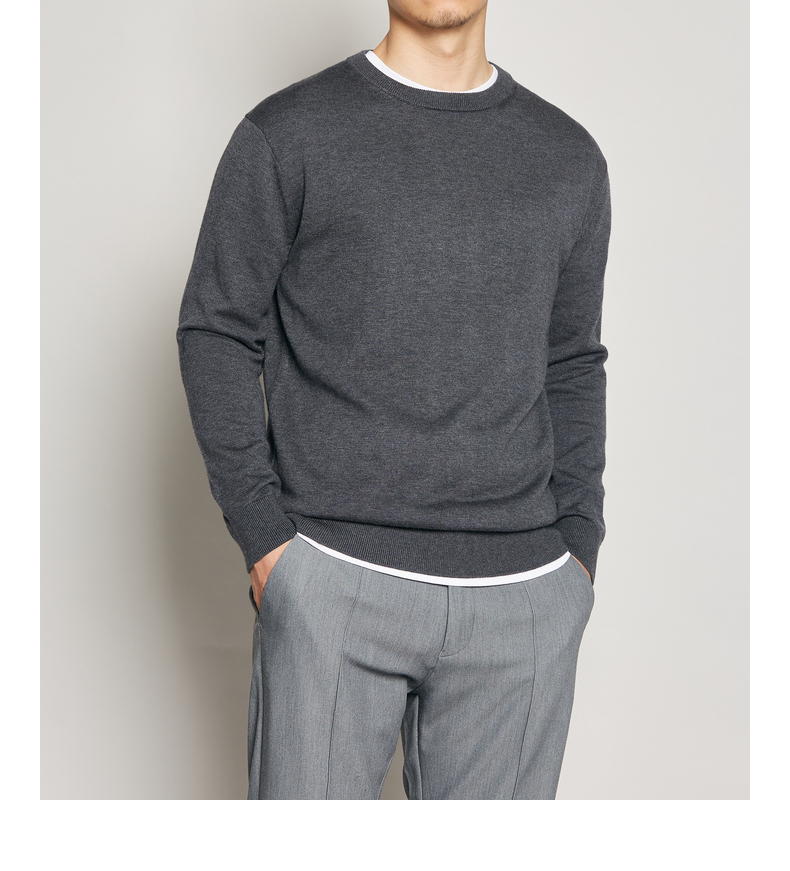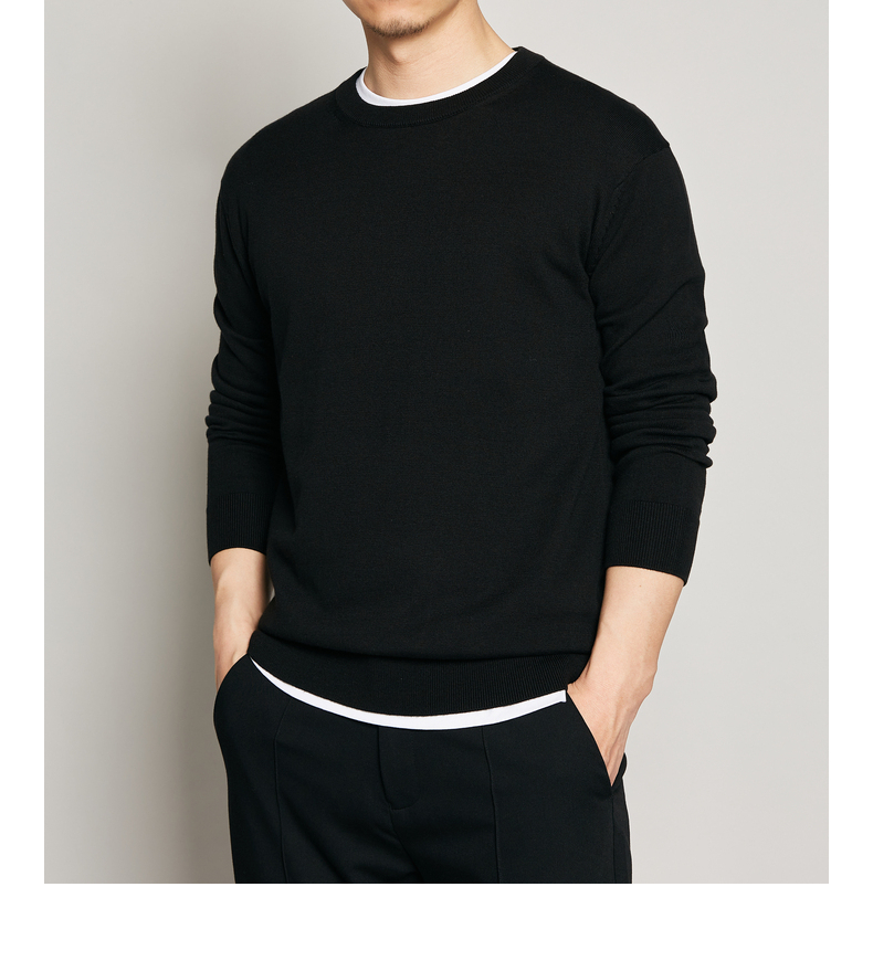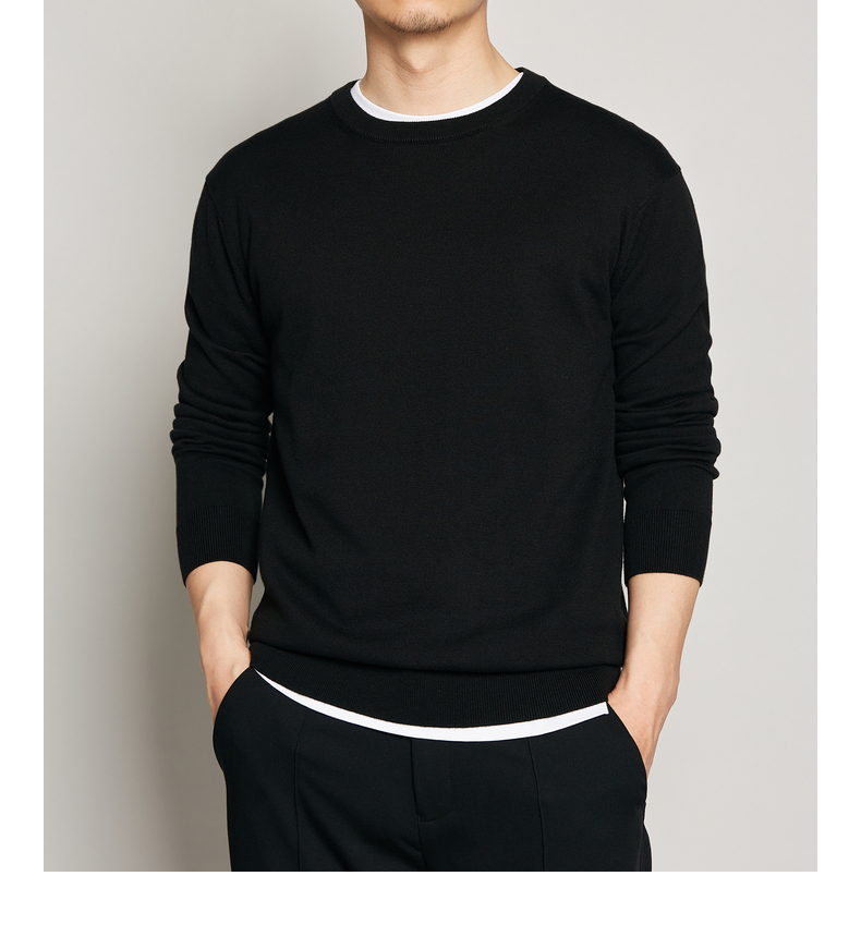 墨麦客男装2020秋季新款圆领纯色套头毛衣男士宽松针织衫外套2338