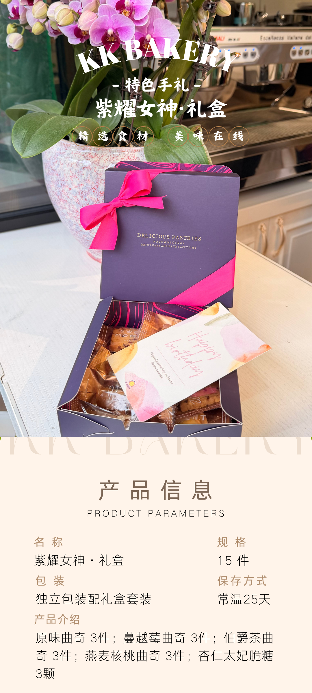 自2014年开业以来,[KK] 一直以精致的蛋糕卷闻名,成为无数甜品爱好者心中的下午茶圣地。我们用心打造各式蛋糕、面包、饮品,更贴心提供到会服务与精美手礼,让每一个特别的时刻都更加甜蜜。