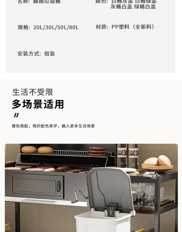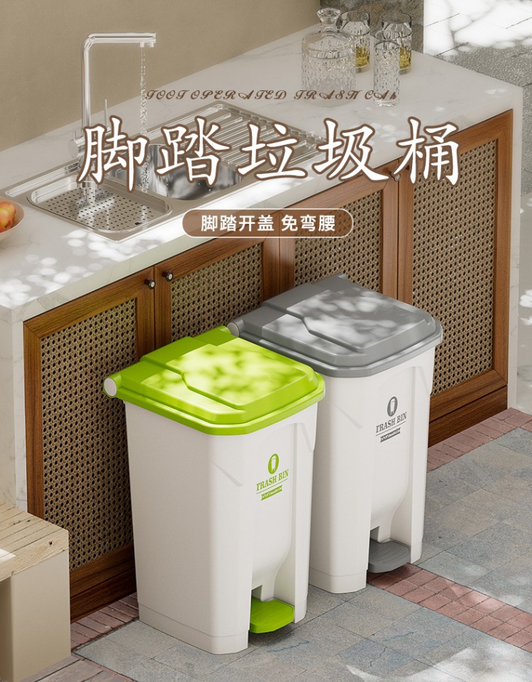 【脚踏式大垃圾桶】带盖脚踩 户外厨房家用商用室外庭院大容量垃圾桶